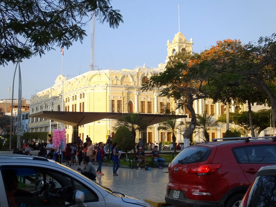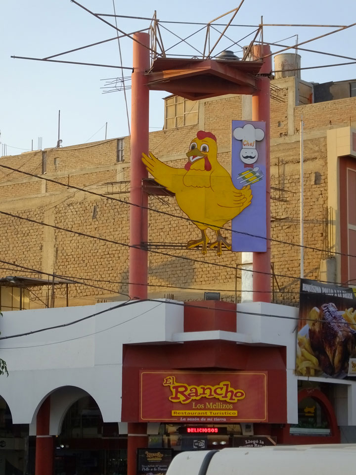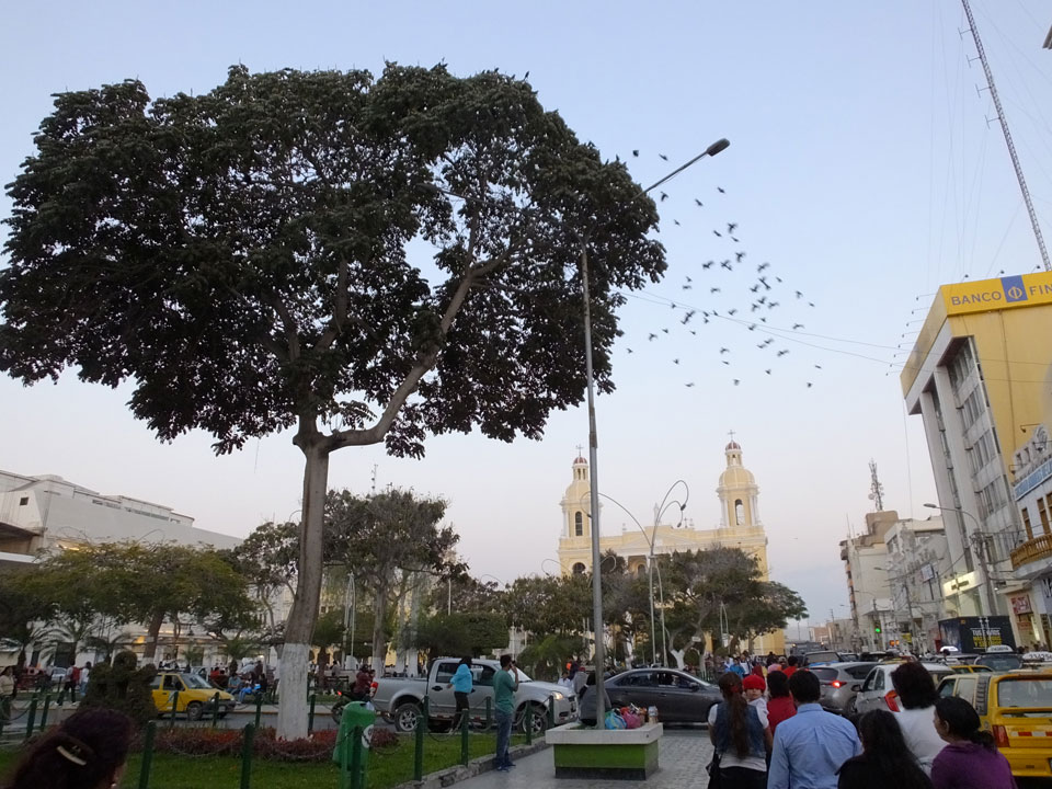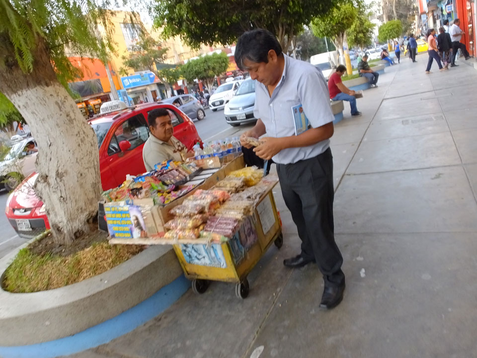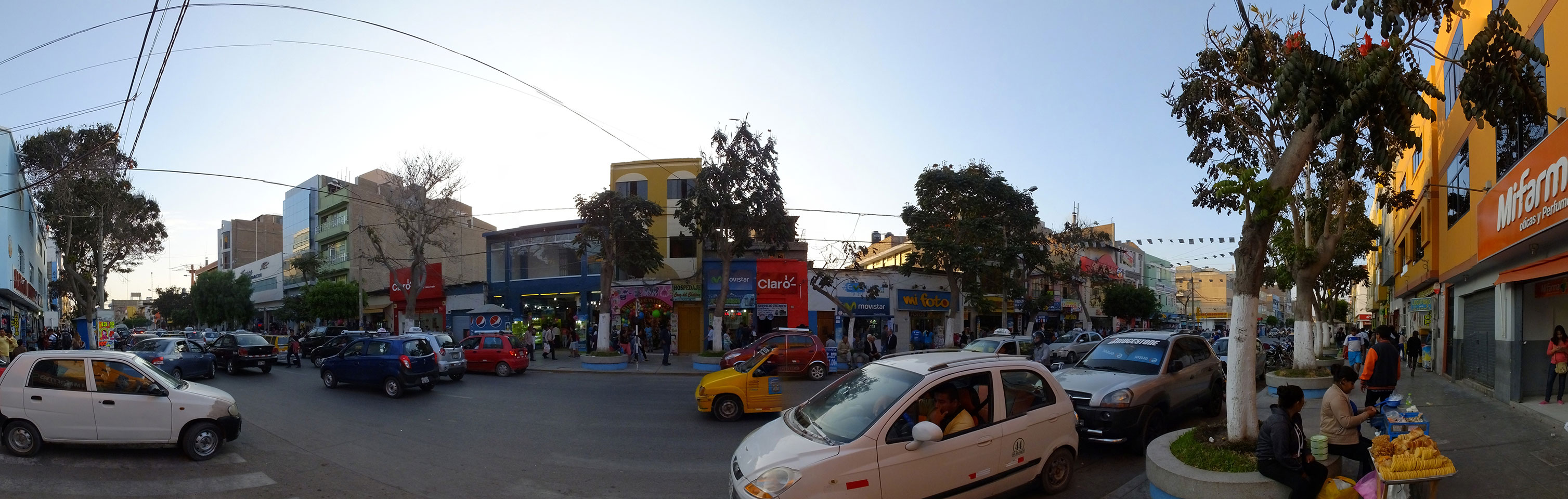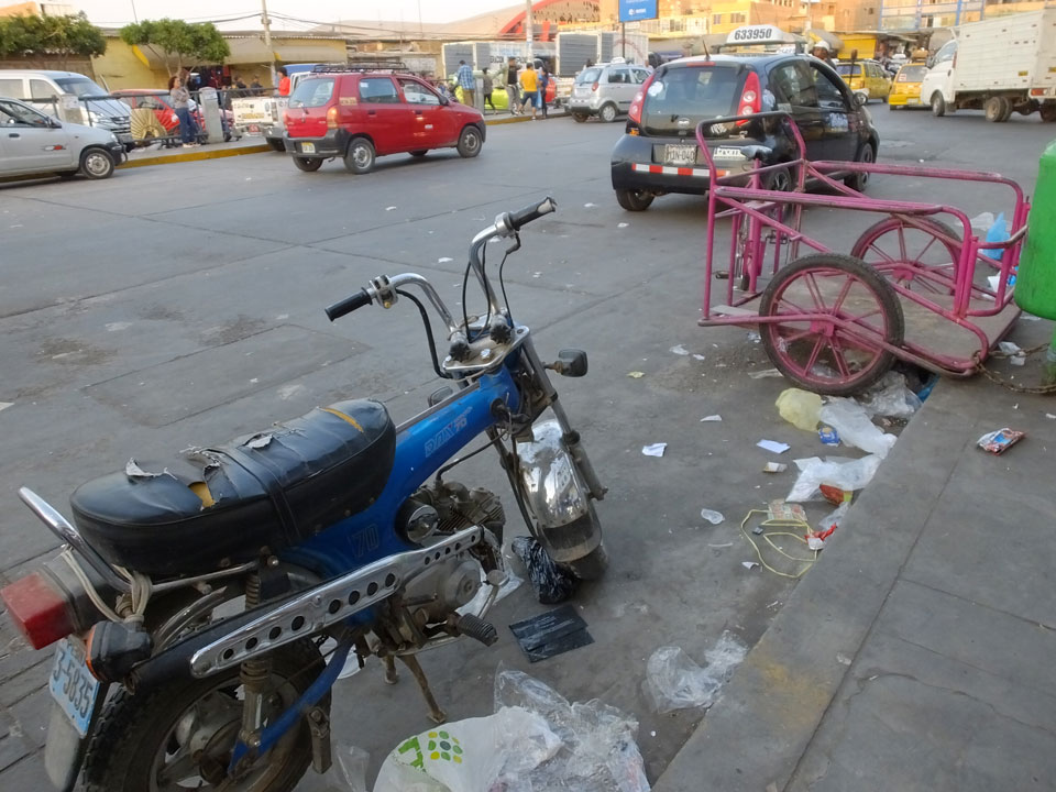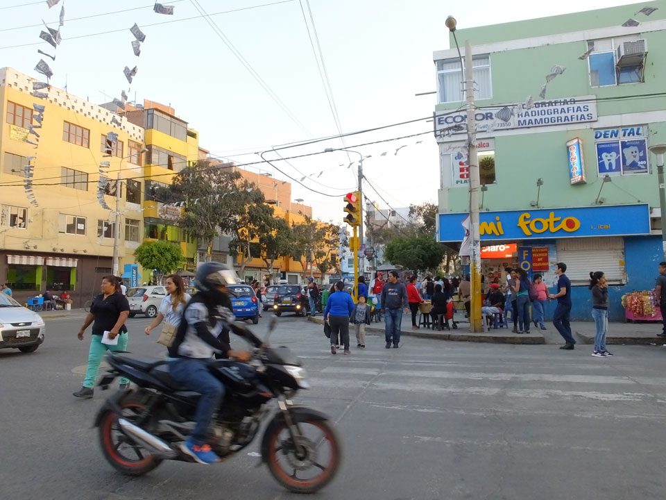 Um 17:00 dann ließ ich meine Sachen im Amigos zurück und drehte eine Runde durch Chiclayo. Die Stadt ist lebendig. Überall laufen Leute herum, werden Sachen verkauft, Autos hupen. Ich sah weit und breit keinen Ausländer. Mit meiner Fuji wurde ich etwas beäugt. Ganz so angenehm war mir die Sache nicht, da mein Ziel der Markt war. Ein paar Blöcke nördlich vom Plaza sammelten sich dort auch viele Stände mit allerlei. Wenn ich nur Platz hätte und die Sachen nicht schleppen müsste, würde ich schon ein paar Sachen finden. So aber blieb es bei hastigem Schritt durch die Gegend und einem langen Abendessen.