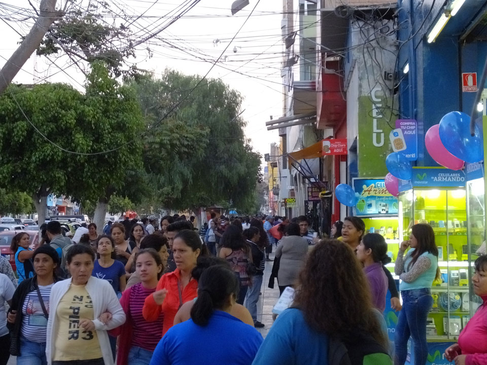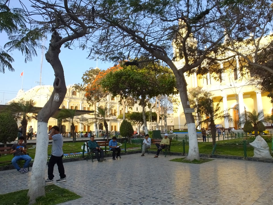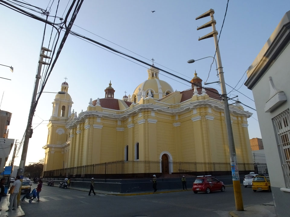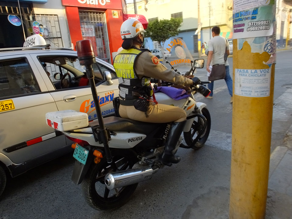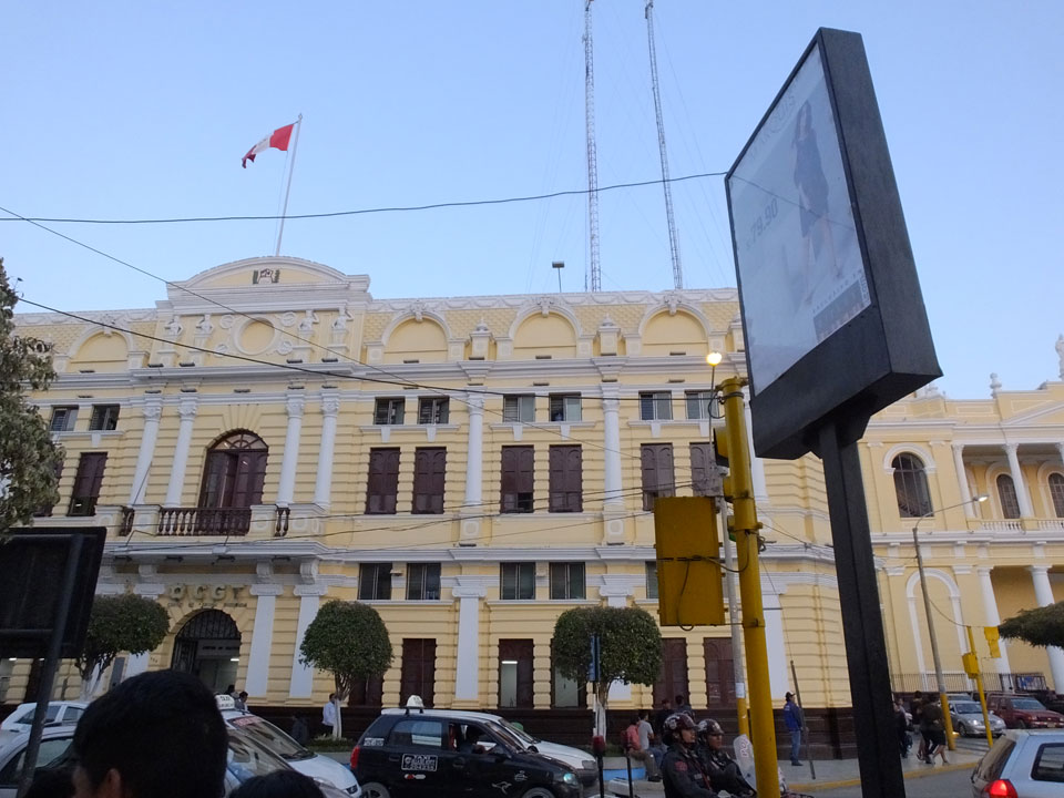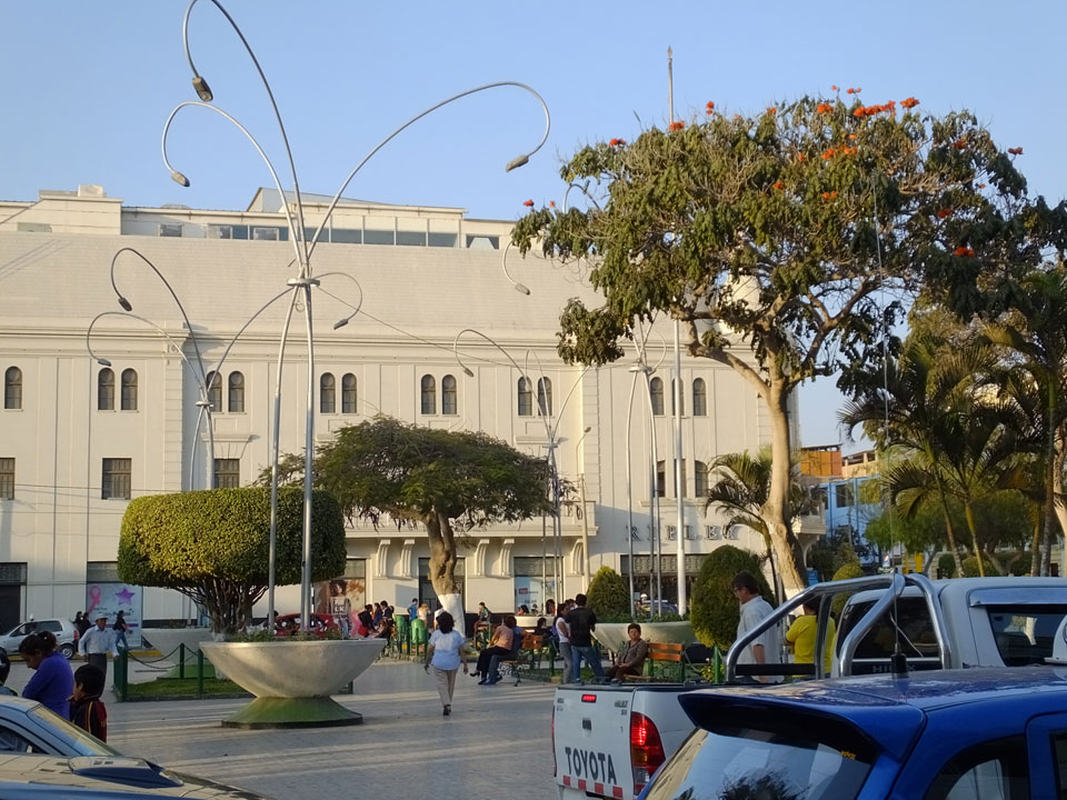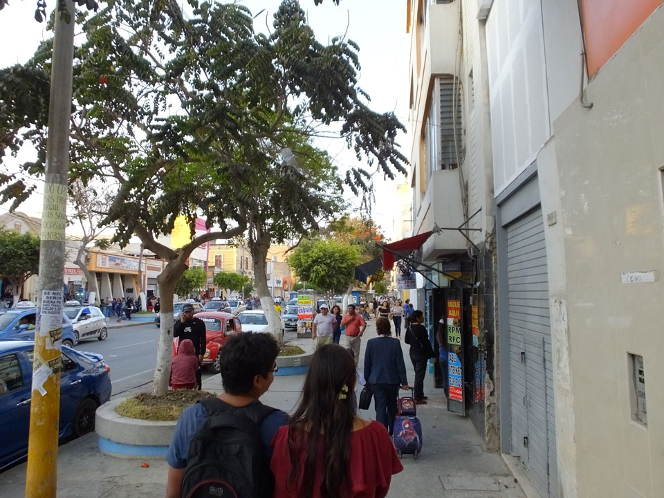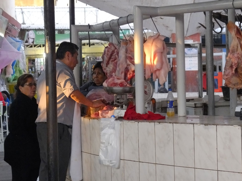 Um 17:00 dann ließ ich meine Sachen im Amigos zurück und drehte eine Runde durch Chiclayo. Die Stadt ist lebendig. Überall laufen Leute herum, werden Sachen verkauft, Autos hupen. Ich sah weit und breit keinen Ausländer. Mit meiner Fuji wurde ich etwas beäugt. Ganz so angenehm war mir die Sache nicht, da mein Ziel der Markt war. Ein paar Blöcke nördlich vom Plaza sammelten sich dort auch viele Stände mit allerlei. Wenn ich nur Platz hätte und die Sachen nicht schleppen müsste, würde ich schon ein paar Sachen finden. So aber blieb es bei hastigem Schritt durch die Gegend und einem langen Abendessen.