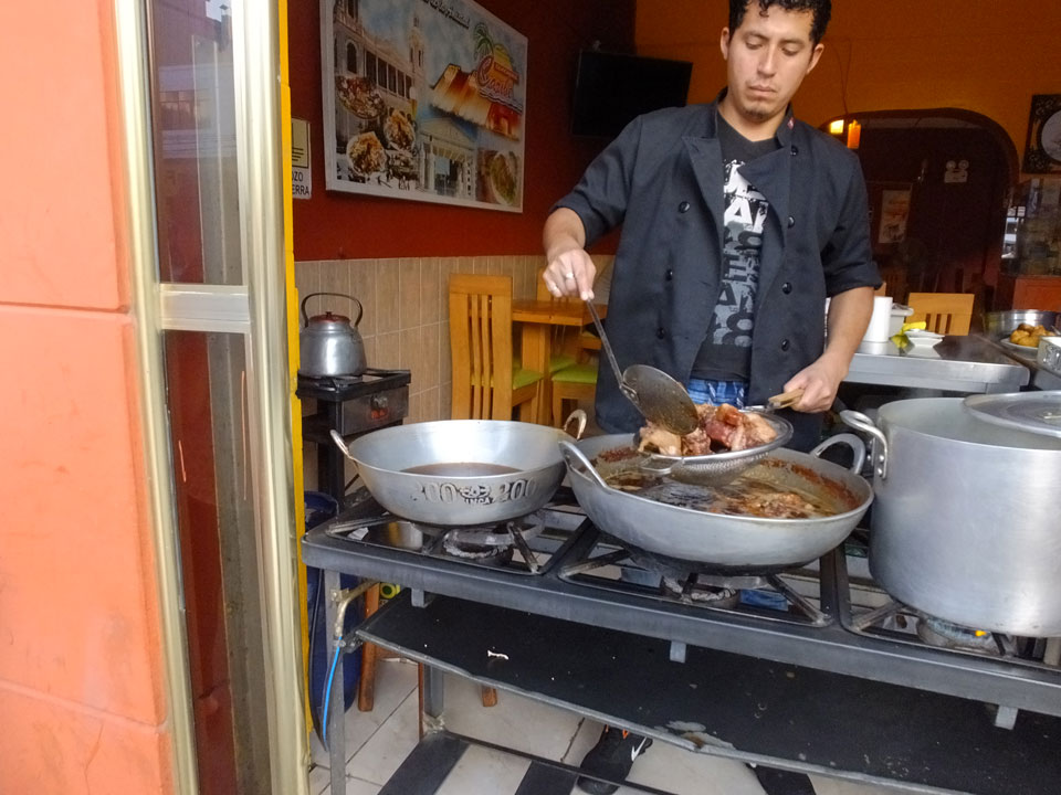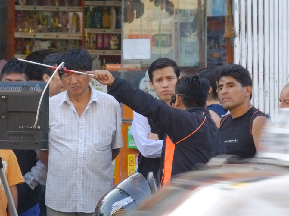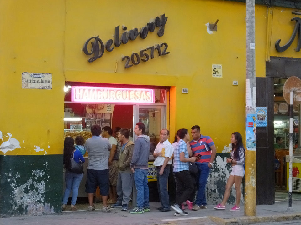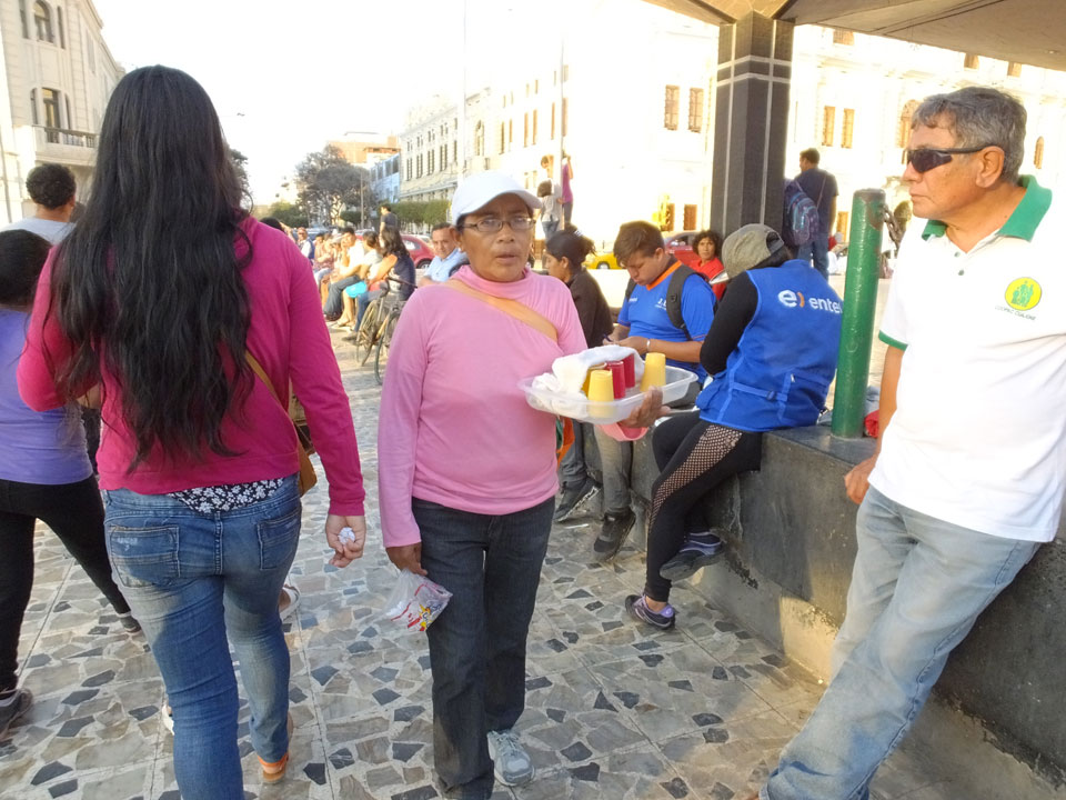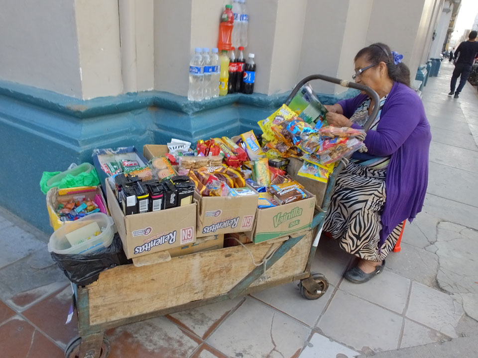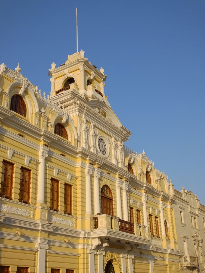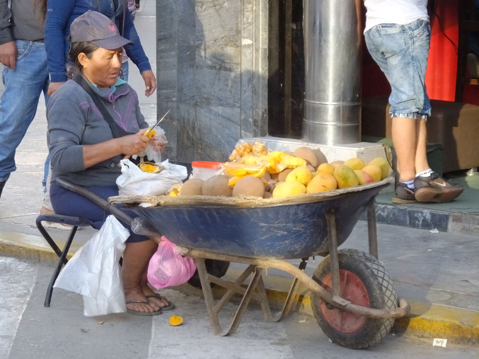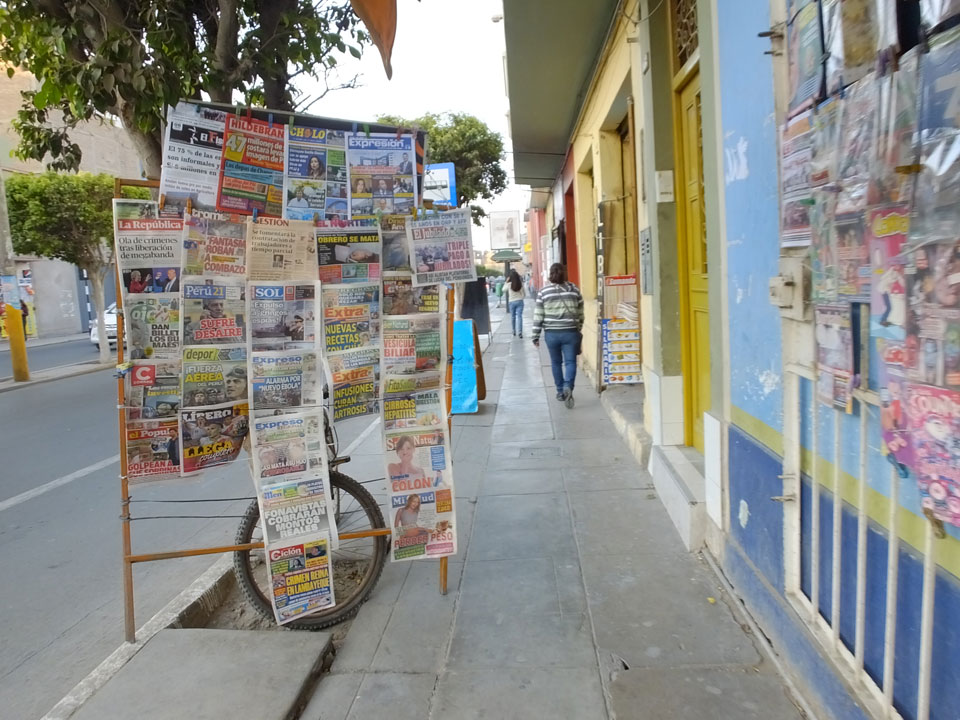 Um 17:00 dann ließ ich meine Sachen im Amigos zurück und drehte eine Runde durch Chiclayo. Die Stadt ist lebendig. Überall laufen Leute herum, werden Sachen verkauft, Autos hupen. Ich sah weit und breit keinen Ausländer. Mit meiner Fuji wurde ich etwas beäugt. Ganz so angenehm war mir die Sache nicht, da mein Ziel der Markt war. Ein paar Blöcke nördlich vom Plaza sammelten sich dort auch viele Stände mit allerlei. Wenn ich nur Platz hätte und die Sachen nicht schleppen müsste, würde ich schon ein paar Sachen finden. So aber blieb es bei hastigem Schritt durch die Gegend und einem langen Abendessen.