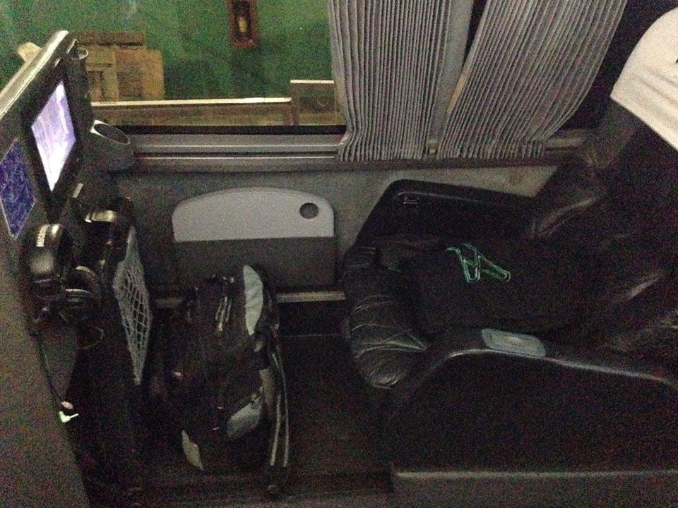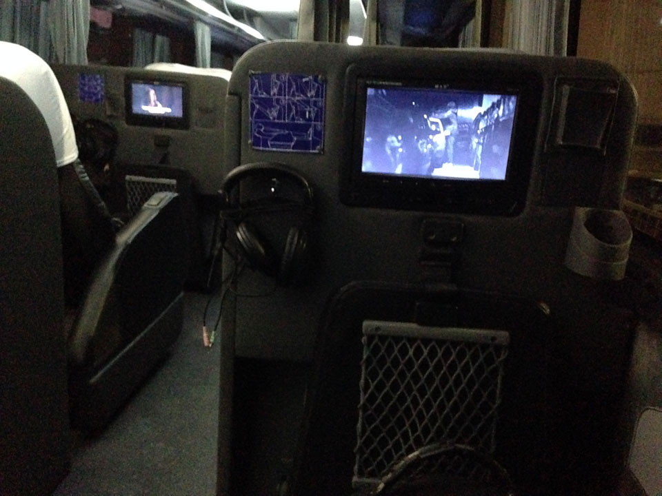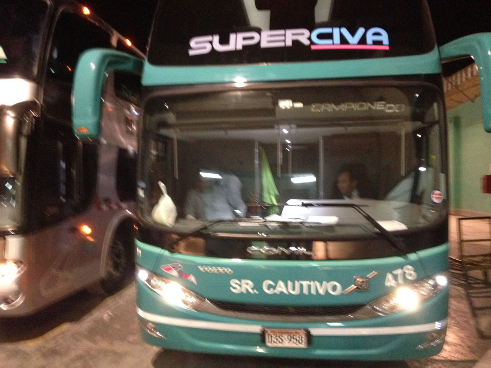Im Hostal dann bekam ich noch einen Schlüsselanhänger als Abschiedgeschenk. Mit dem Taxi ging’s zur Civa mit Exclusiva – dem sicher komfortabelsten Bus. Es gab sogar ein kleines Abendessen auf wackeligen Straßen. Dann mit meiner 180° Liege versuchte ich ein wenig zu schlafen. Ich musste dazu einige Bildschirme ausschalten. Der Bus war nur wenig gefüllt, doch überall liefen Filme in der Nacht.