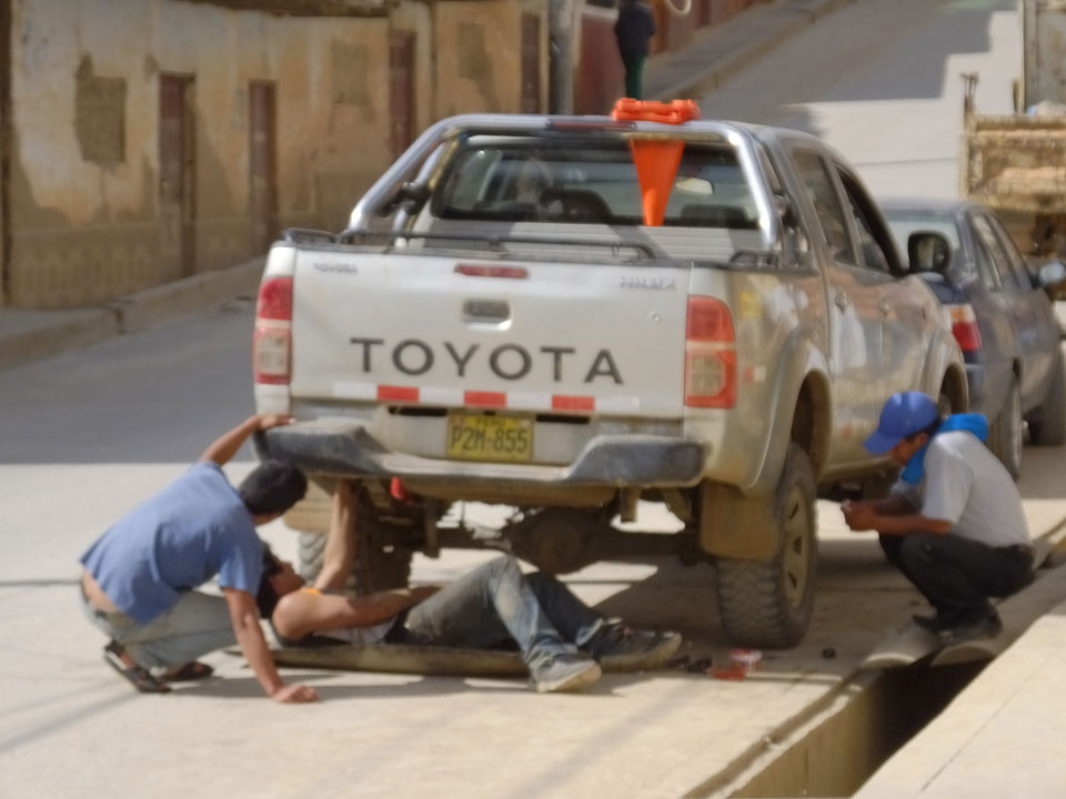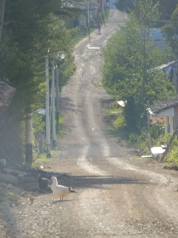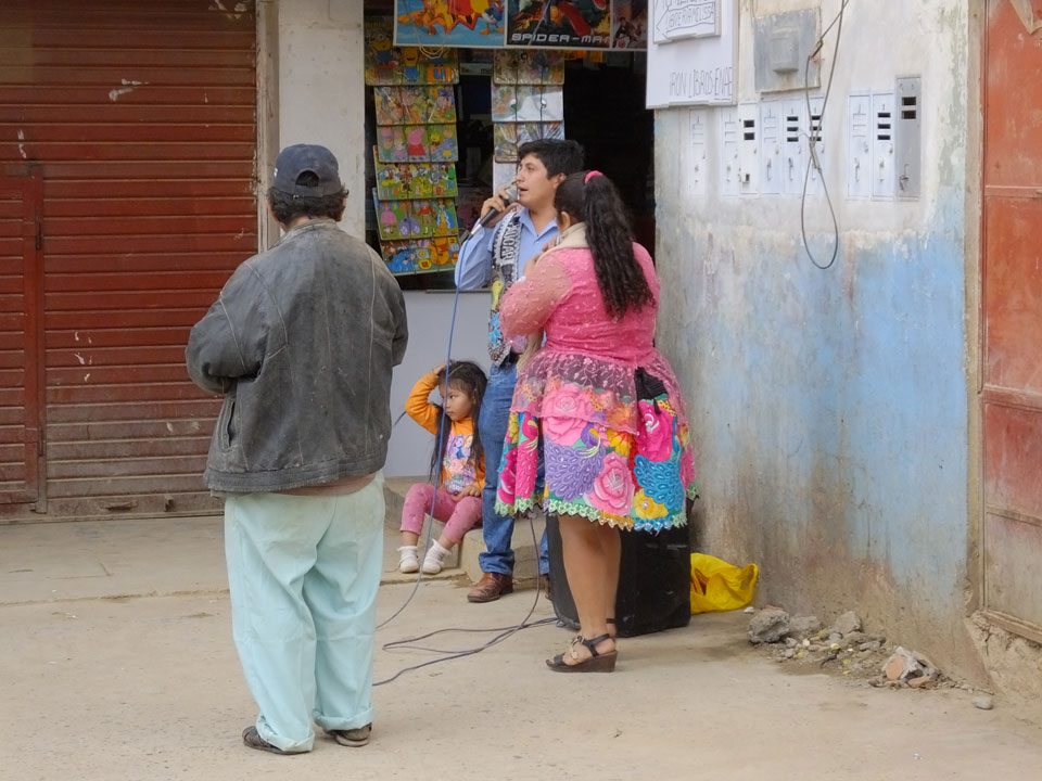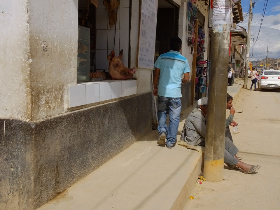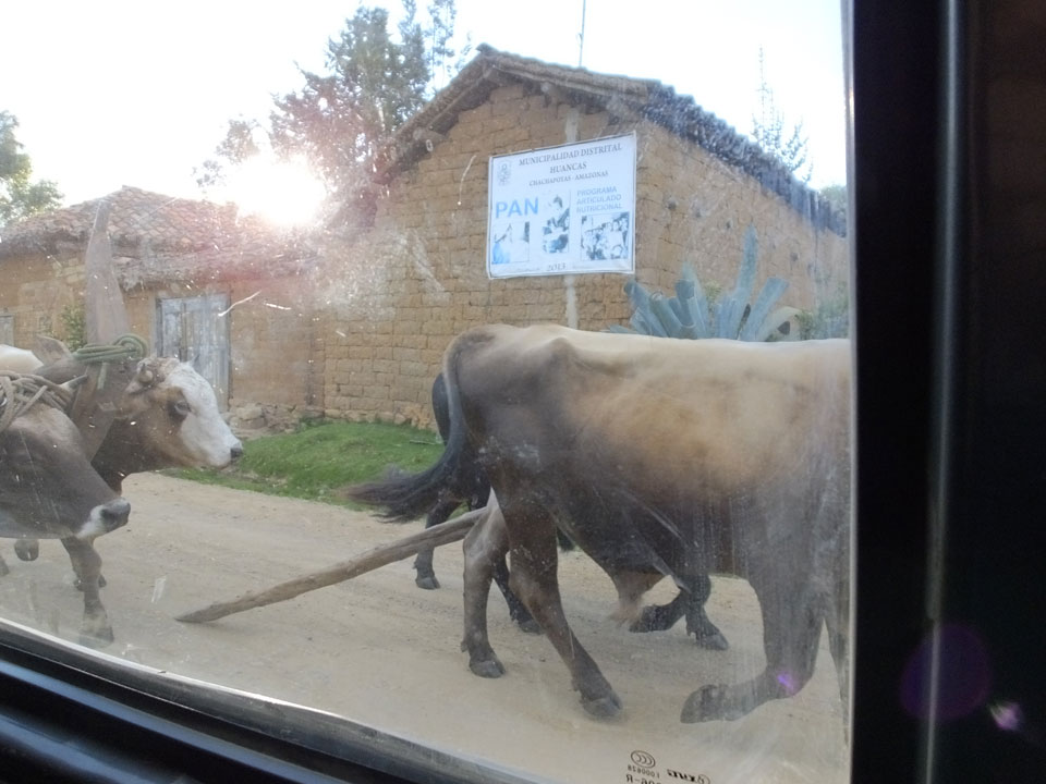 Es stellte sich heraus, das der Van gleich da in einer Garage parkte und schon einige Leute auf die Abfahrt warteten. Auf einer Schotterpiste ging es in ca. 20′ nach Huancas, einem kleinen Dorf. Jetzt war ich mal gefühlt richtig weit weg.