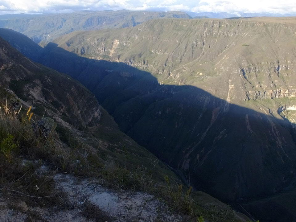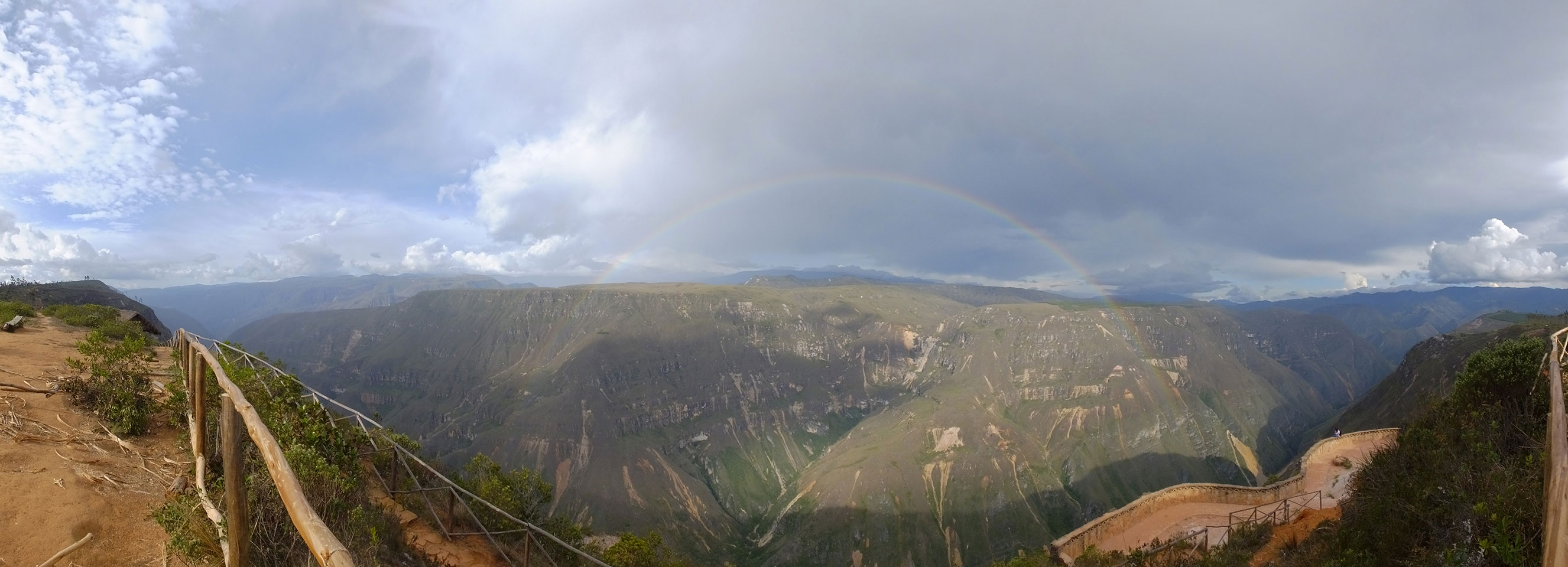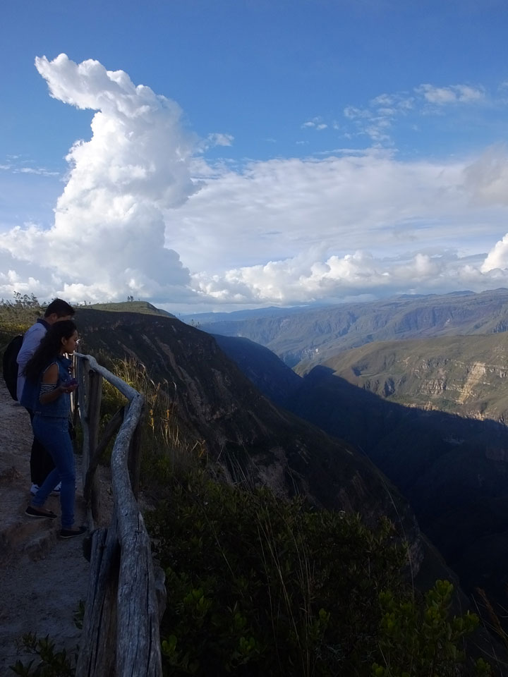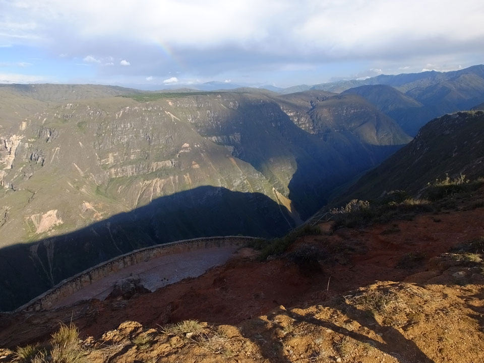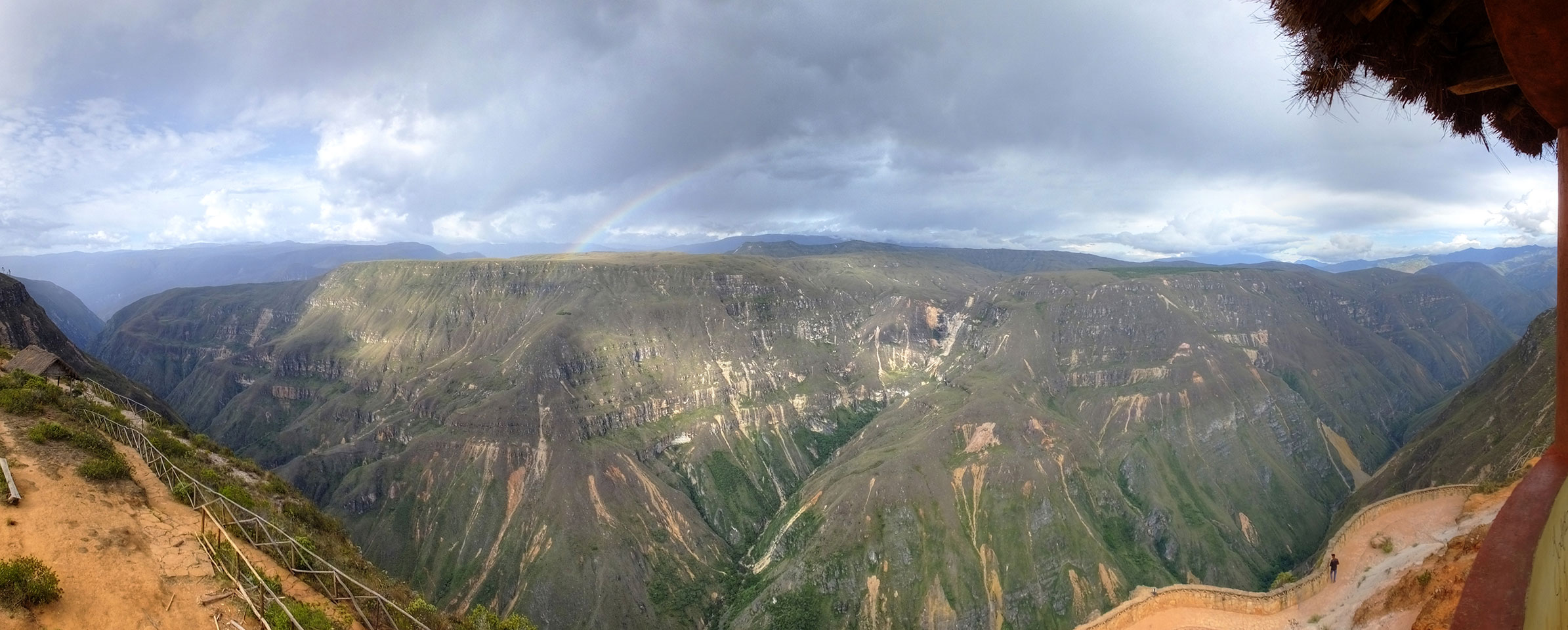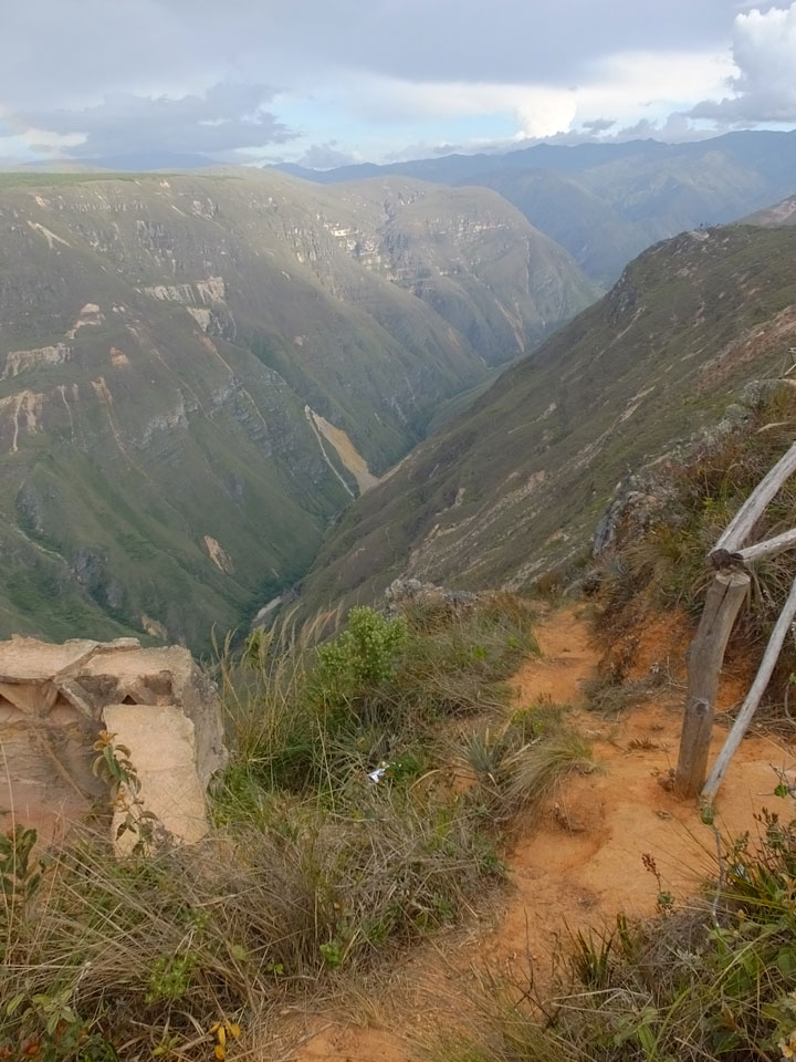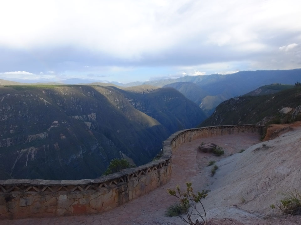 Ich wurde am Plaza rausgelassen, zahlte die 3 Soles und fand schnell den Weg zum Aussichtspunkt. Es zogen sich in der Ferne ein paar Wolken zusammen, Donner grollte. Am Mirador, der ca 1,5km weiter war, zahlte ich wieder 3 Soles und war erst mal alleine dort. Ein echt schöner Aussichtspunkt mit Sicht nach links und rechts in die Schlucht, die von einem kleinen Fluss gegraben wurde. So ein Canyon dauert.