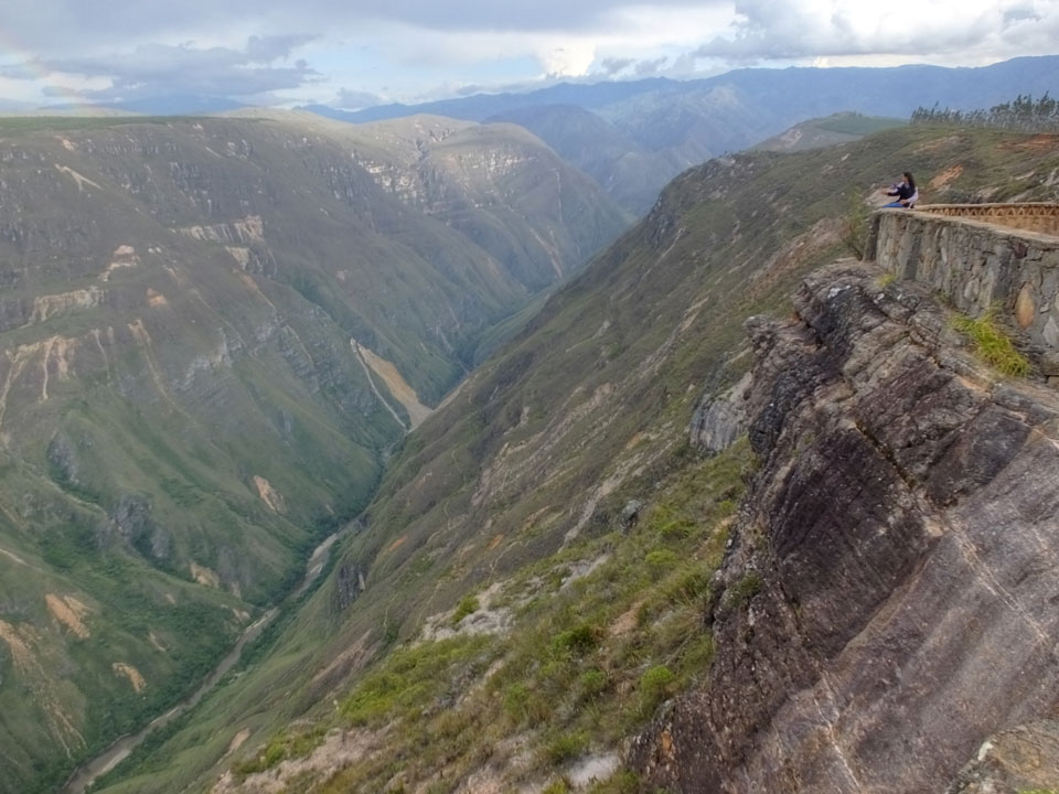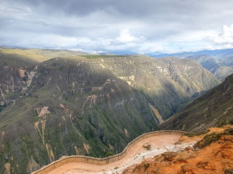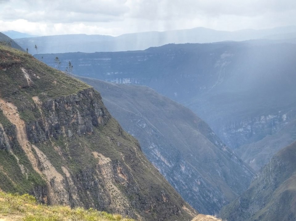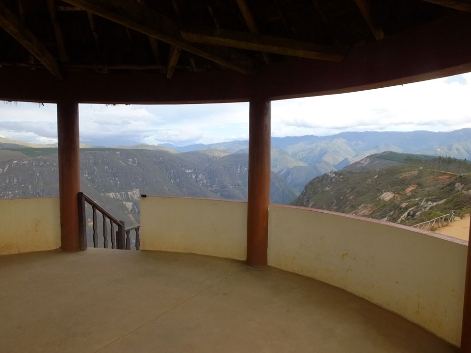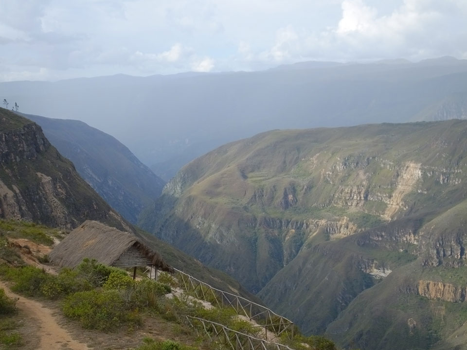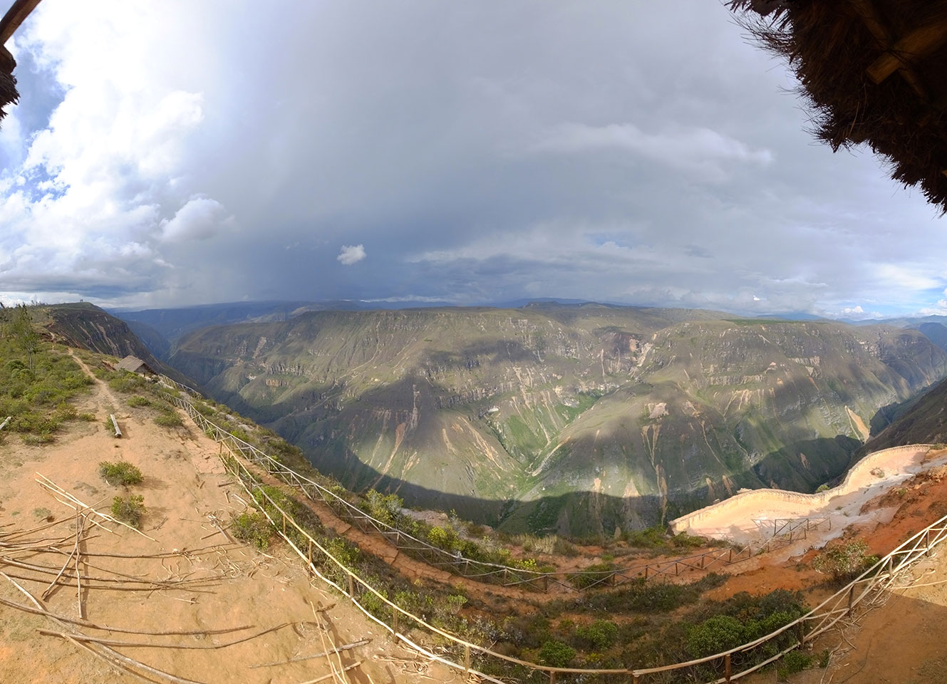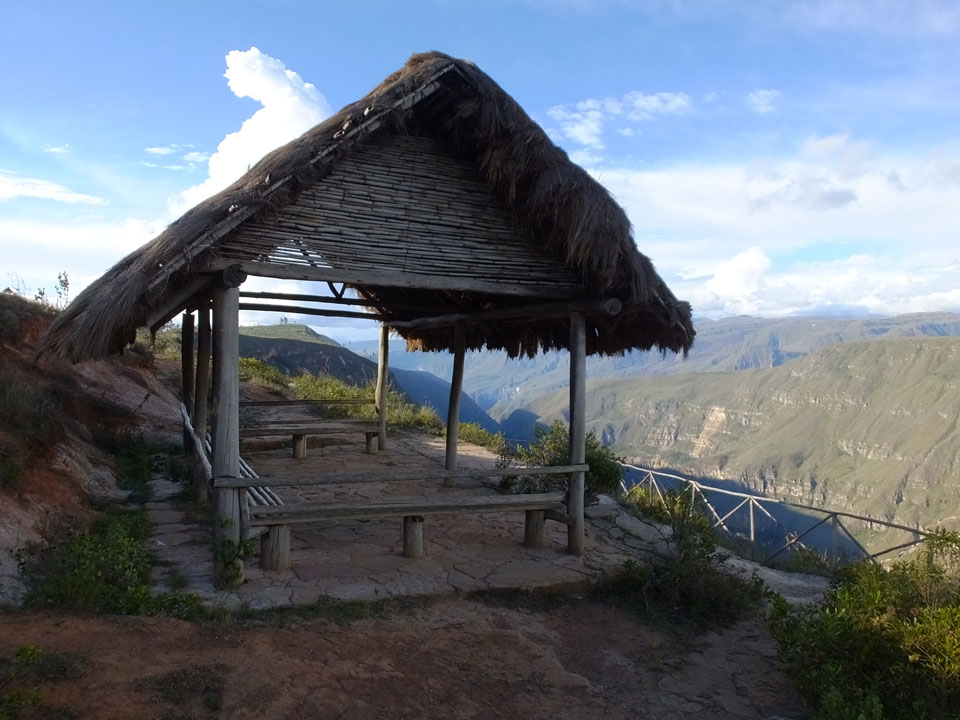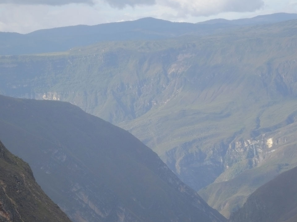 Ich wurde am Plaza rausgelassen, zahlte die 3 Soles und fand schnell den Weg zum Aussichtspunkt. Es zogen sich in der Ferne ein paar Wolken zusammen, Donner grollte. Am Mirador, der ca 1,5km weiter war, zahlte ich wieder 3 Soles und war erst mal alleine dort. Ein echt schöner Aussichtspunkt mit Sicht nach links und rechts in die Schlucht, die von einem kleinen Fluss gegraben wurde. So ein Canyon dauert.