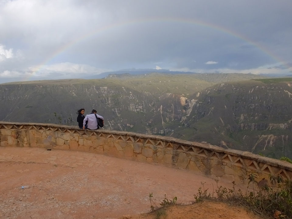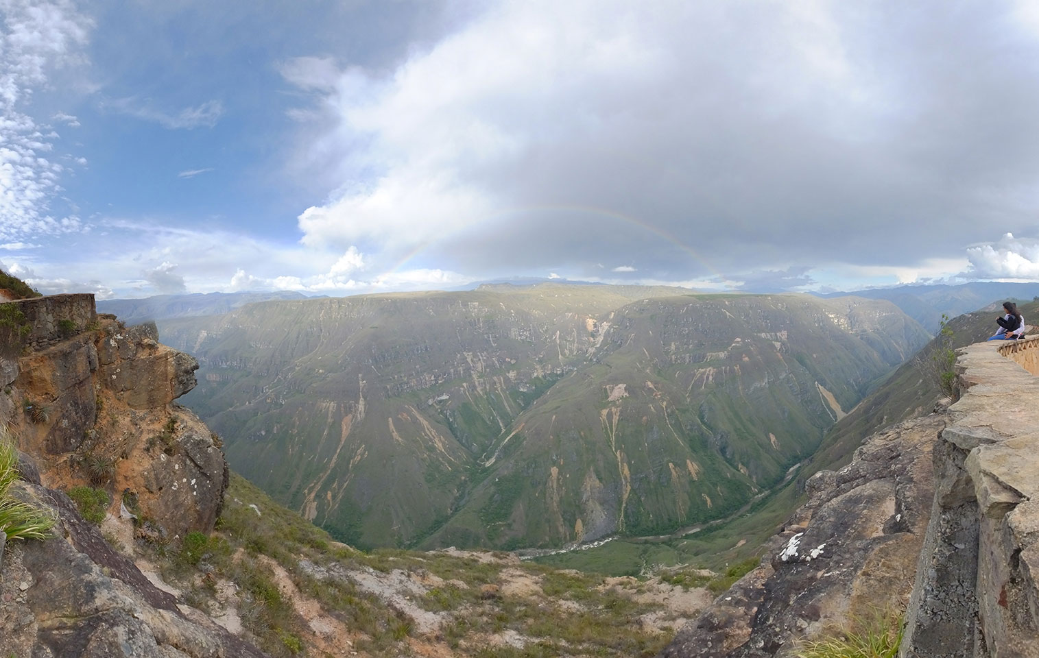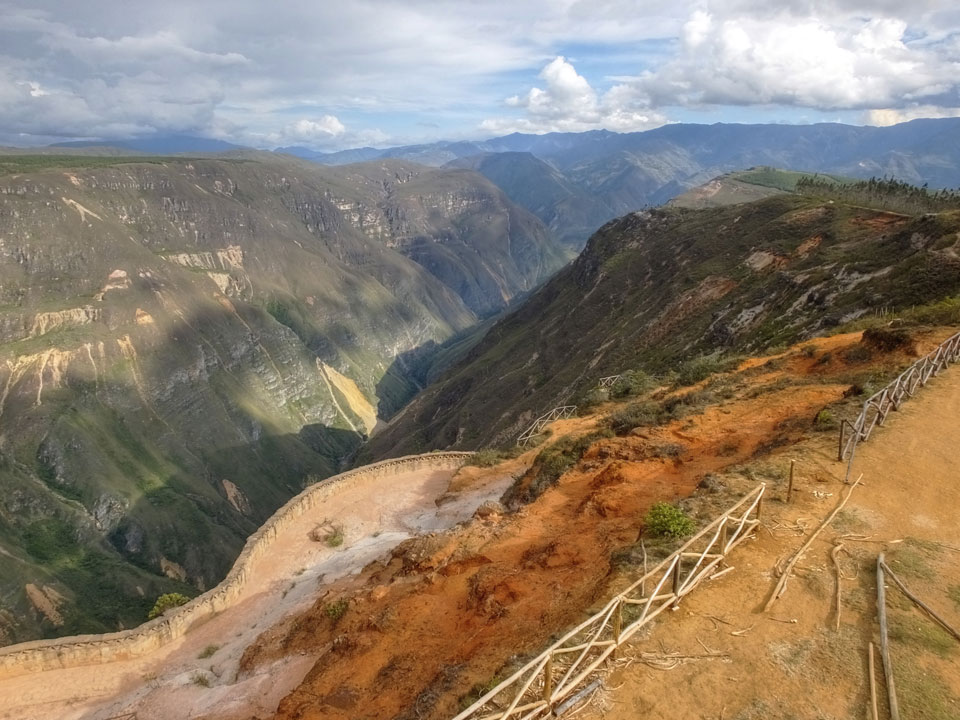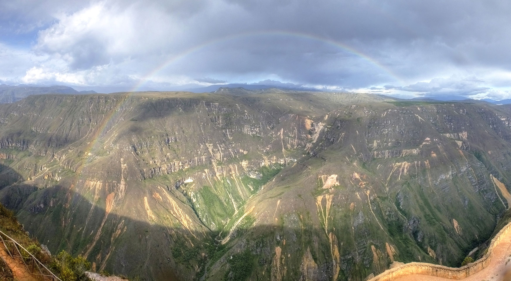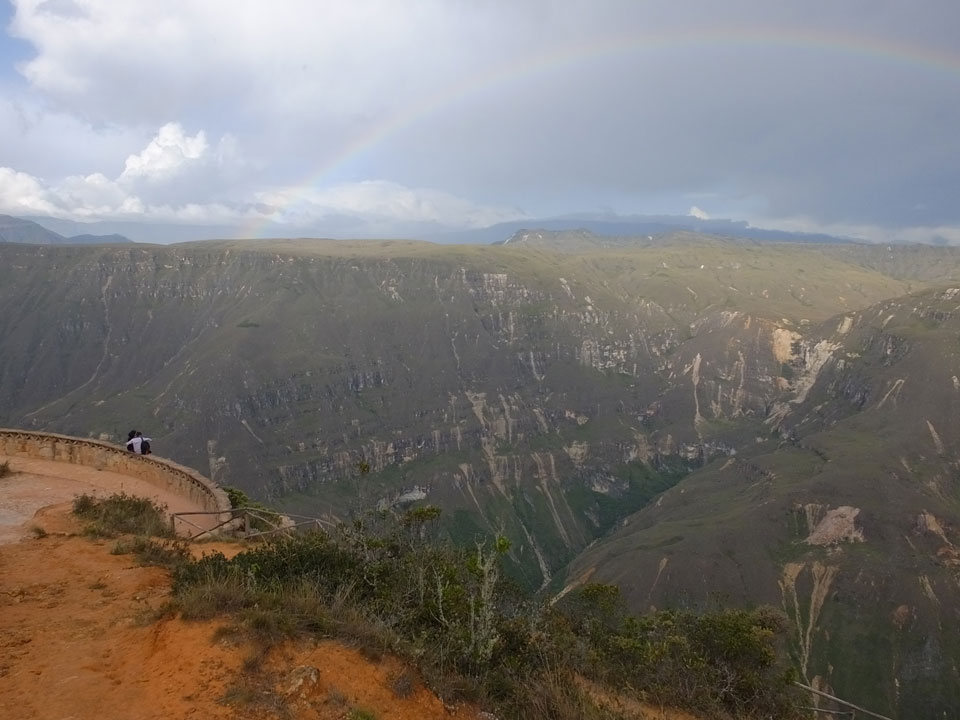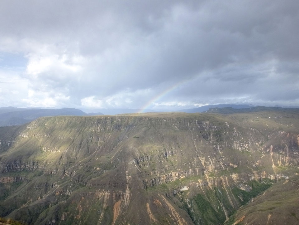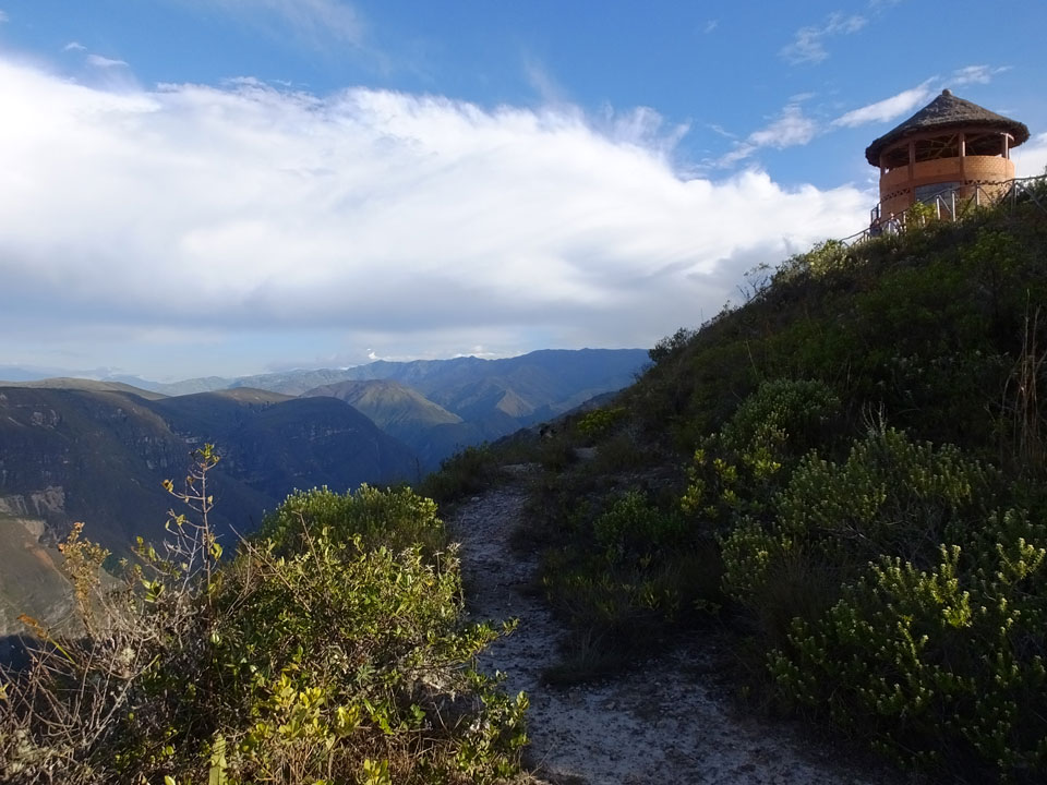 Ich wurde am Plaza rausgelassen, zahlte die 3 Soles und fand schnell den Weg zum Aussichtspunkt. Es zogen sich in der Ferne ein paar Wolken zusammen, Donner grollte. Am Mirador, der ca 1,5km weiter war, zahlte ich wieder 3 Soles und war erst mal alleine dort. Ein echt schöner Aussichtspunkt mit Sicht nach links und rechts in die Schlucht, die von einem kleinen Fluss gegraben wurde. So ein Canyon dauert.