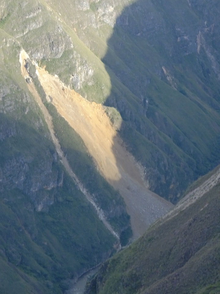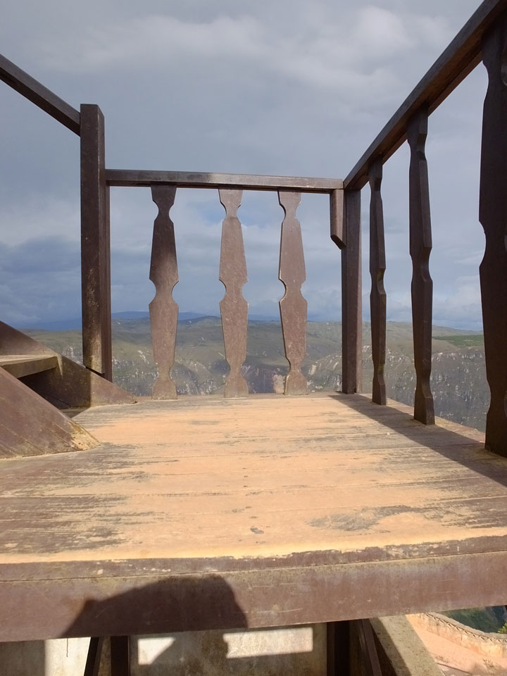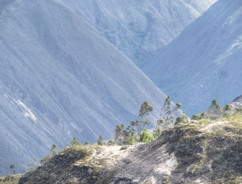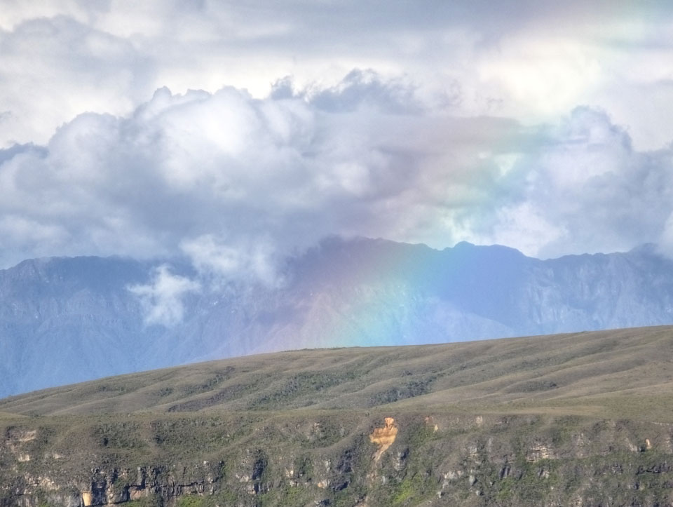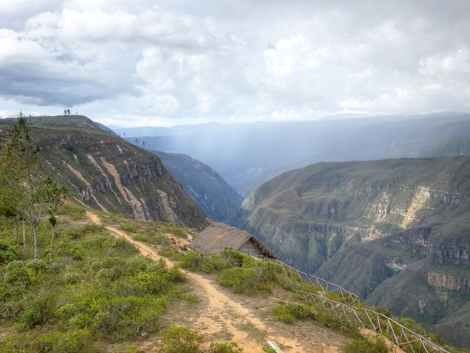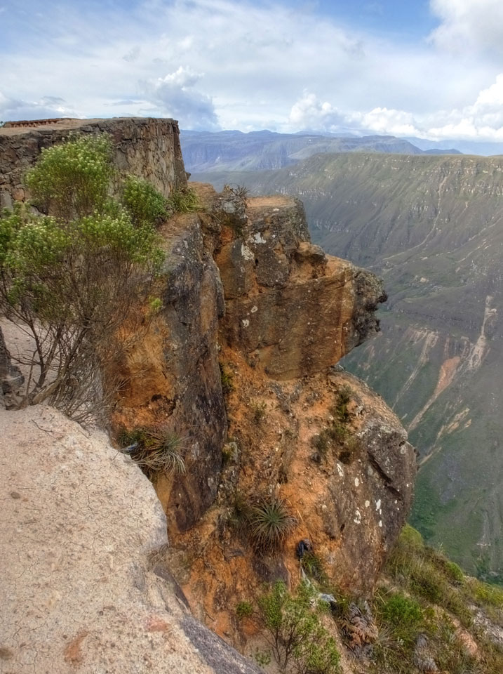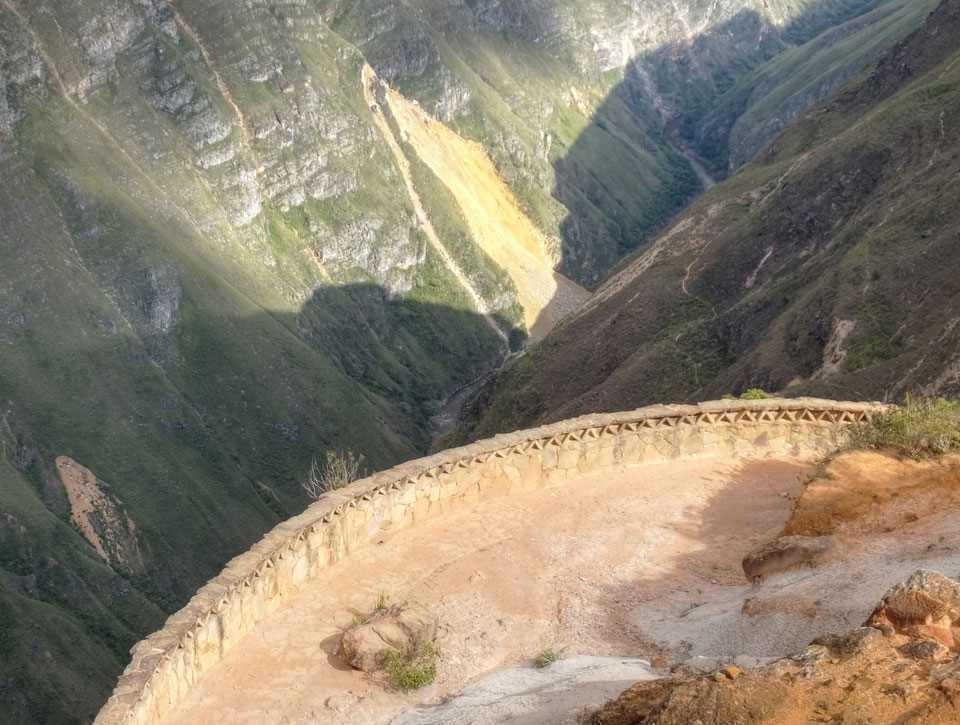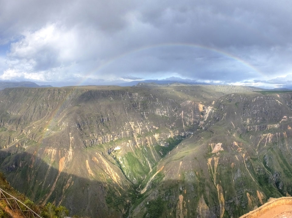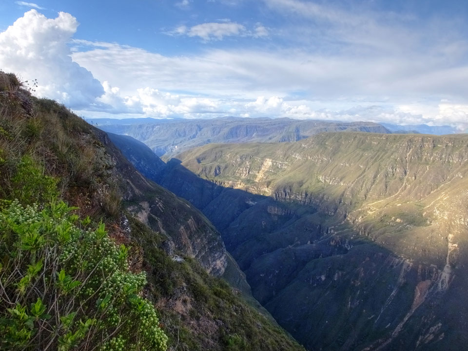 Ich wurde am Plaza rausgelassen, zahlte die 3 Soles und fand schnell den Weg zum Aussichtspunkt. Es zogen sich in der Ferne ein paar Wolken zusammen, Donner grollte. Am Mirador, der ca 1,5km weiter war, zahlte ich wieder 3 Soles und war erst mal alleine dort. Ein echt schöner Aussichtspunkt mit Sicht nach links und rechts in die Schlucht, die von einem kleinen Fluss gegraben wurde. So ein Canyon dauert.