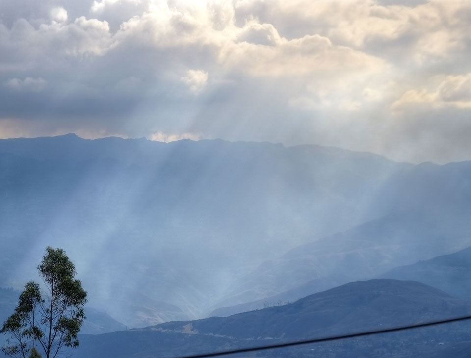 Viele Photos und Panos später ging ich wieder zurück. Auf dem Weg zurück zum Plaza in Huancas kam ein Minibus entgegen. Der Fahrer fragte ob ich nach „Chacha“ wolle – „Si“ – und er fuhr zurück zum Mirador, in der Hoffnug auf weitere Fahrgäste. Dort war doch niemand mehr abfahrtbereit und so fuhr ich alleine mit zurück nach Chachapoyas.