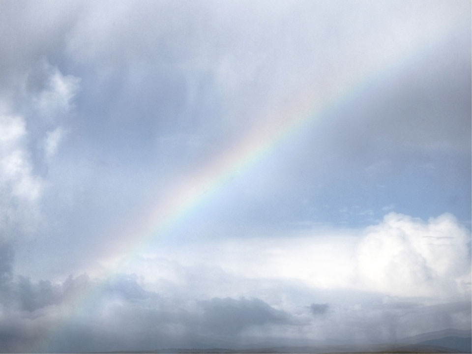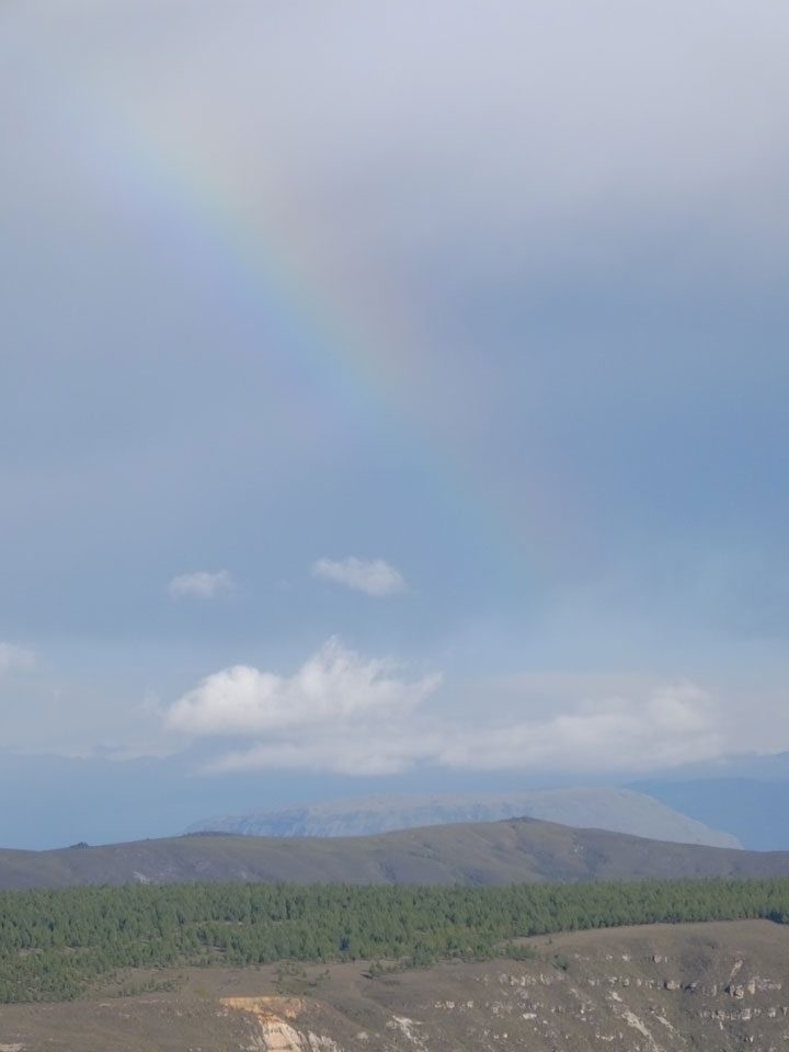 Eine Handvoll Leute kam später und dann ging auch etwas Nieselregen los. Mit der Sonne im Rücken zeigte sich ein Regenbogen. Einfach super sah das aus, weil ich in der Höhe fast einen Dreiviertel Kreis sah.