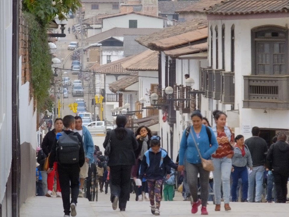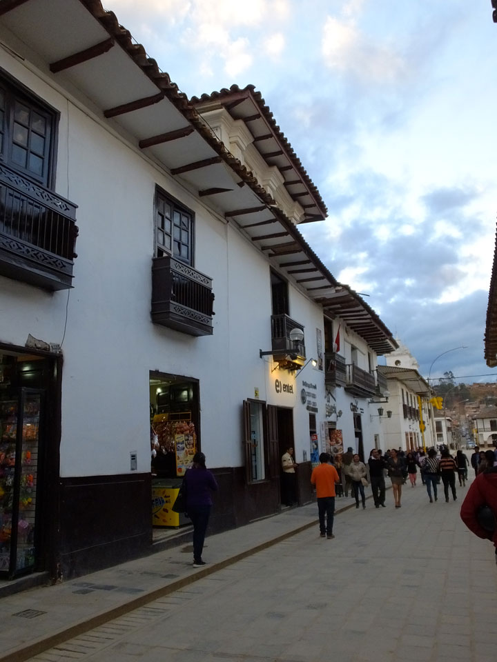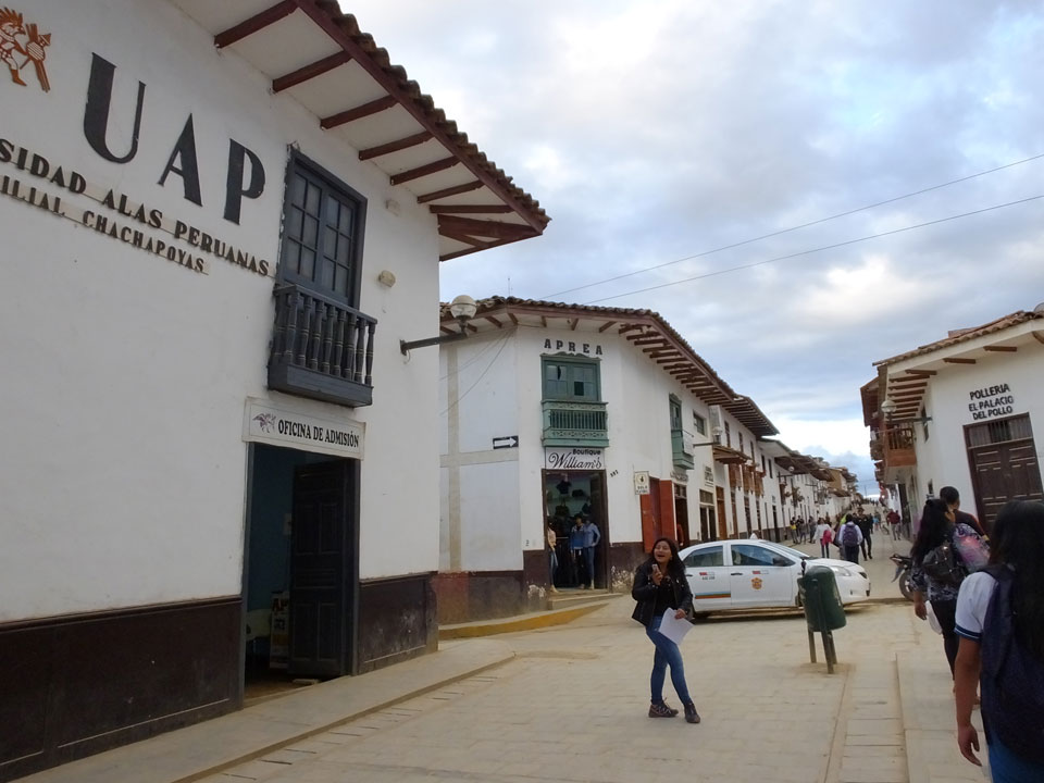 Meine Linsenkappe der Fuji vergaß ich wohl im Van. Ein kleiner Verlust aber OK, weil ich noch Ersatz habe. Am Plaza kaufte ich eine Tour nach Kuelap für morgen für 80 Soles. Ein Start um 8:30 bringt mich dann zur Hauptattraktion hier in der Nähe. Chachapoyas ist aber auch ganz nett. Die alten Straßen aus der Kolonialzeit sind voller Leute.