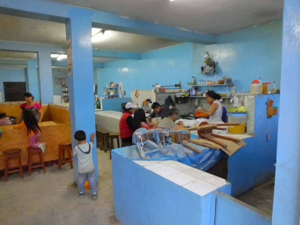 Ich ging also mit zum Haus, was gleich in der Nähe war. Sehr gut, mit dem vielen Gepäck. Es gab zwei Zimmer zur Auswahl – ein’s hne privates Bad und eins mit, aber weniger Aussicht. Ich nahm das erste billigere Zimmer für 40 PEN die Nacht (€12,70) und dann auch noch ein Frühstück (7 PEN). Mehr Sonnenlicht und Platz für meinen Computer da.