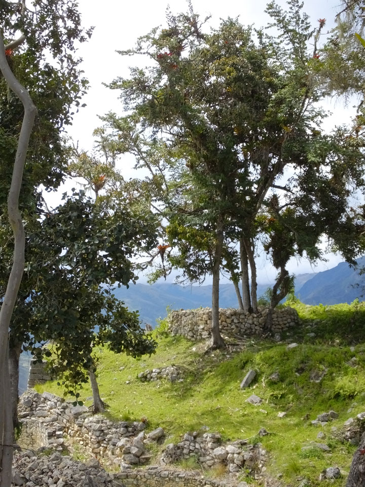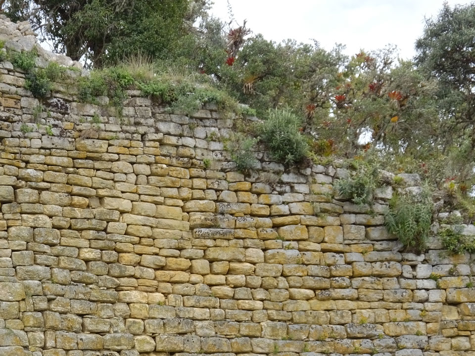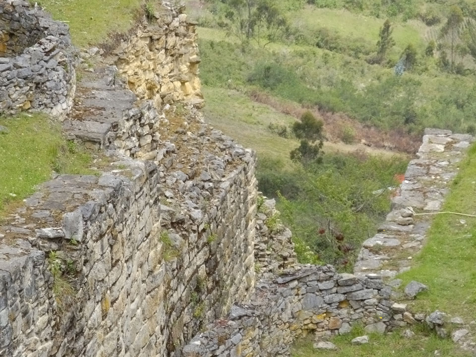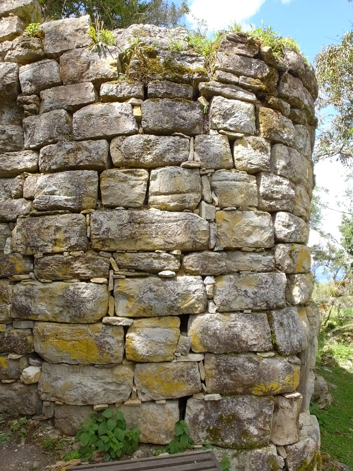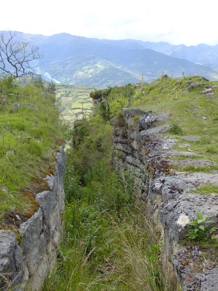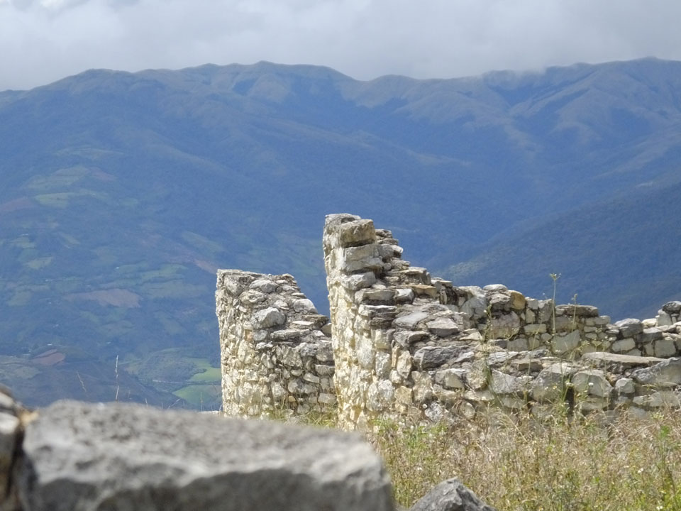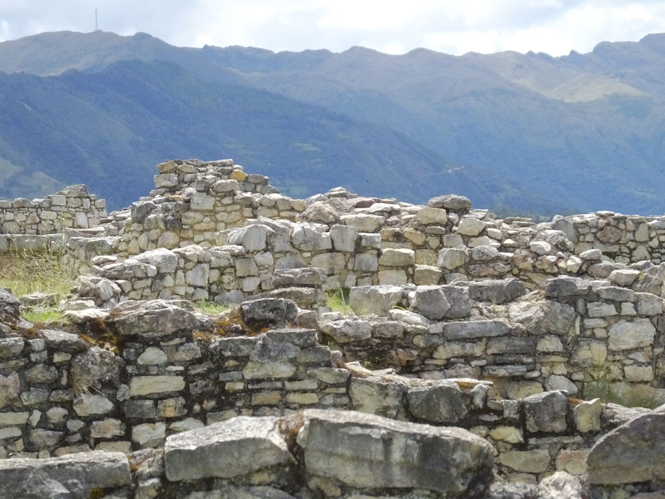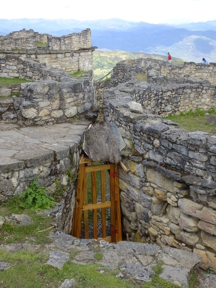 Imposante Mauern umgeben diese alte Stadt. Die Kultur die Chachapoya Leute reicht ca. 400 BC zurück, gebaut wurde Kuelap wohl von 400 AD für 1000 Jahre. So genau weiß man das nicht, weil um 1500 ein Spanier das Ding entdeckte, whl niederbrennen ließ und danach 300 Jahre lang sich niemand drum kümmerte.
