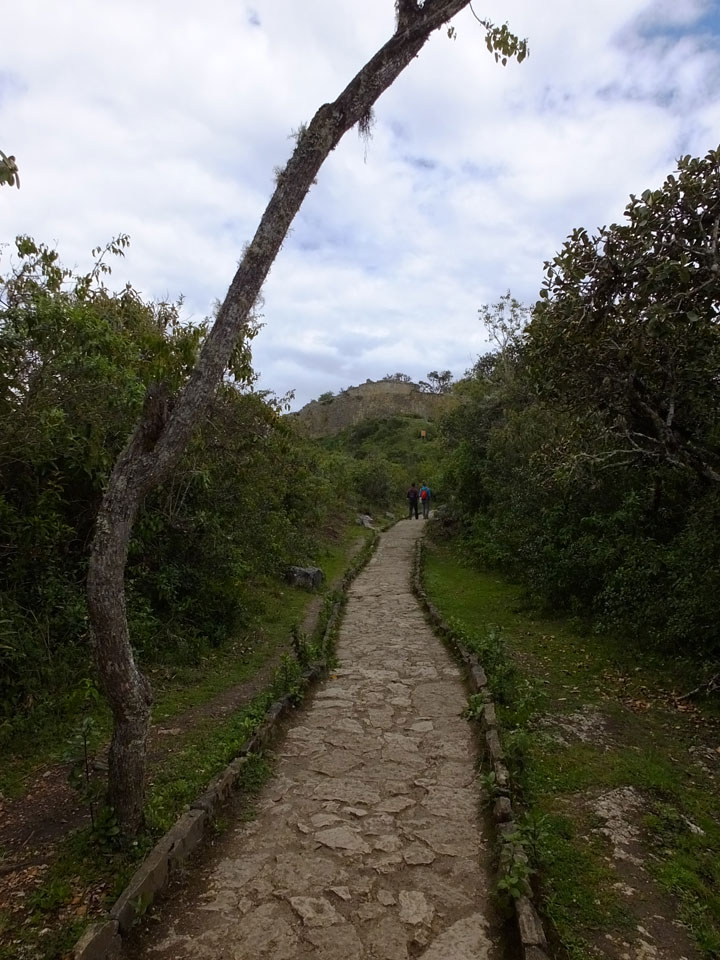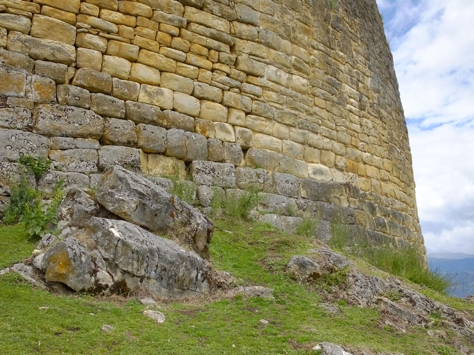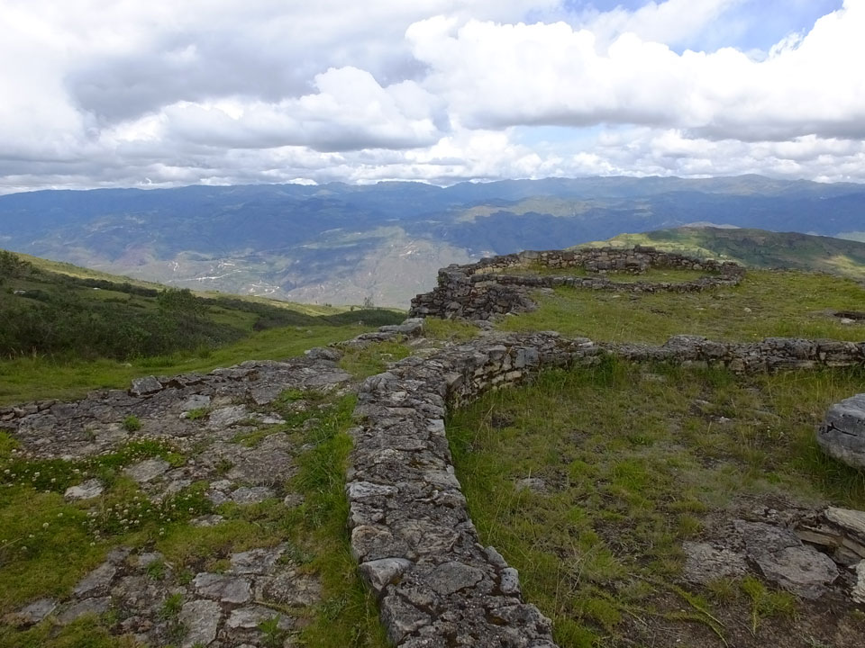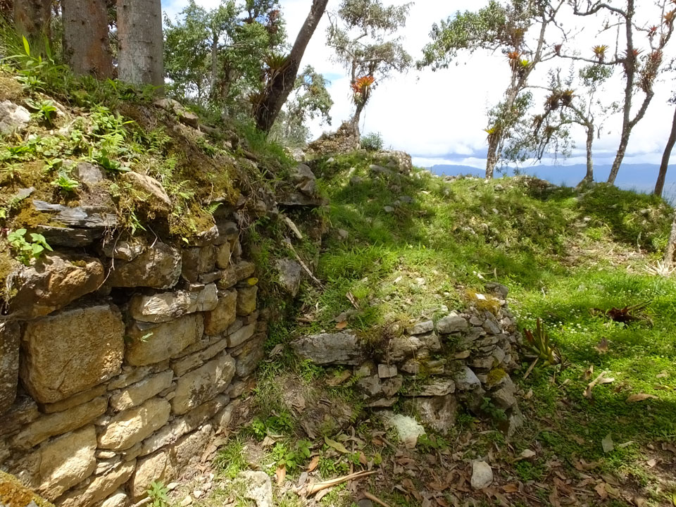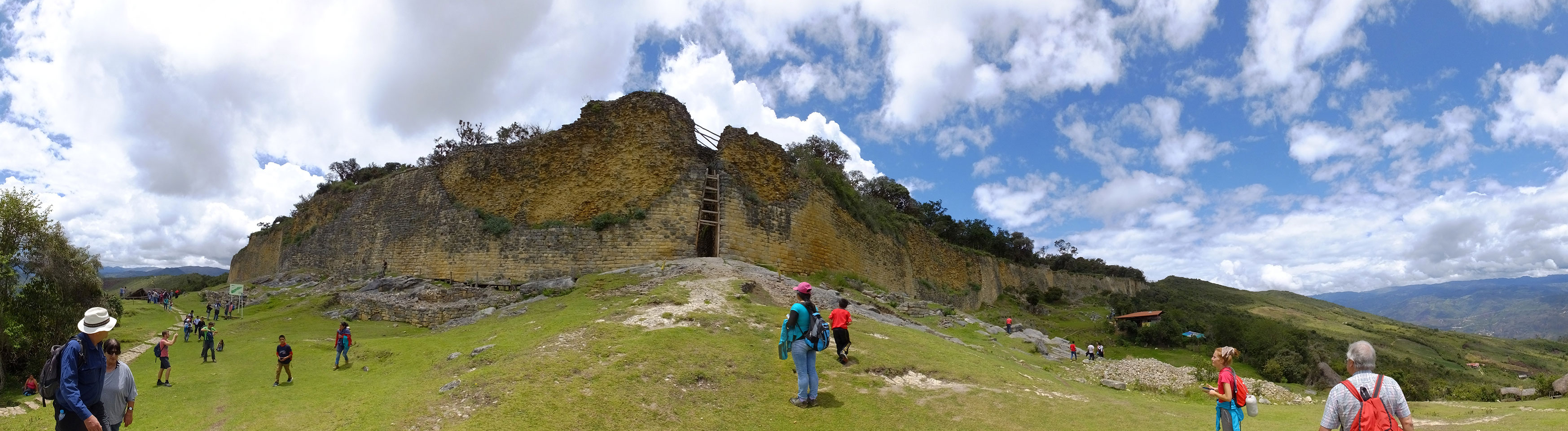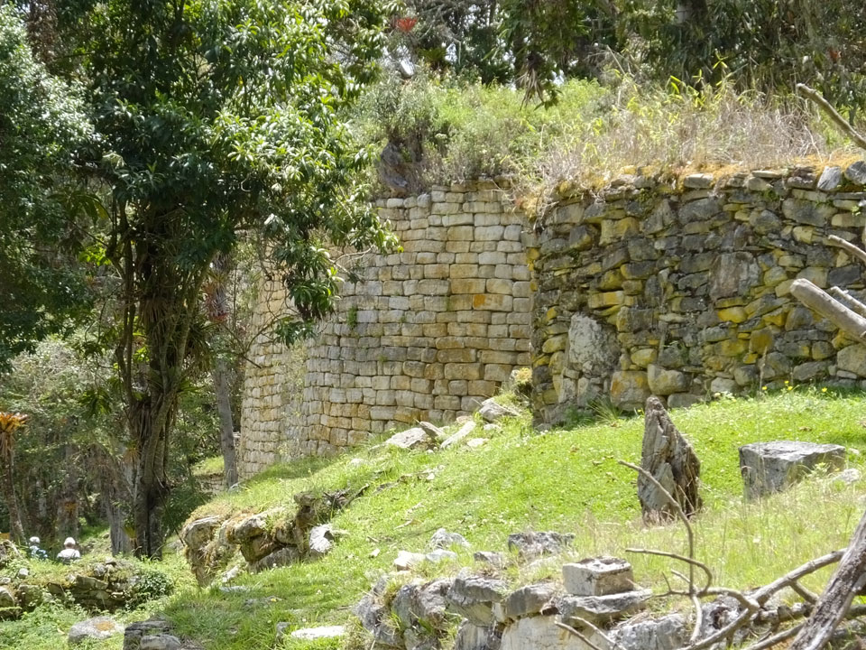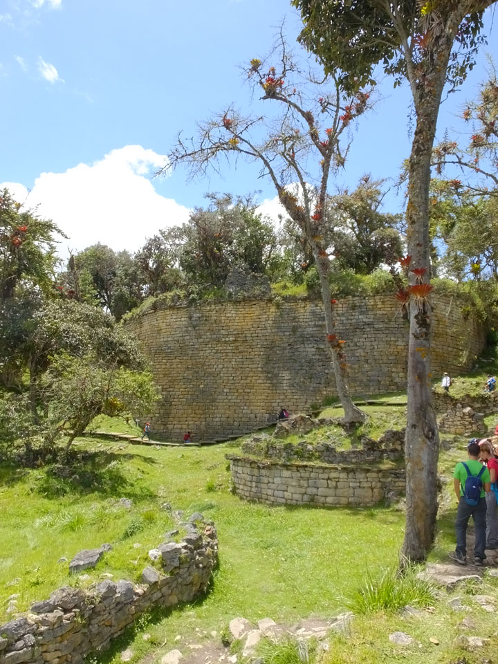 Imposante Mauern umgeben diese alte Stadt. Die Kultur die Chachapoya Leute reicht ca. 400 BC zurück, gebaut wurde Kuelap wohl von 400 AD für 1000 Jahre. So genau weiß man das nicht, weil um 1500 ein Spanier das Ding entdeckte, whl niederbrennen ließ und danach 300 Jahre lang sich niemand drum kümmerte.