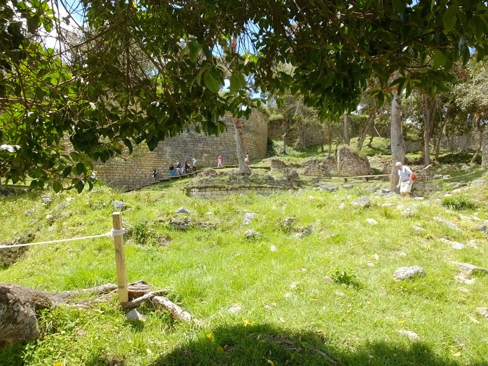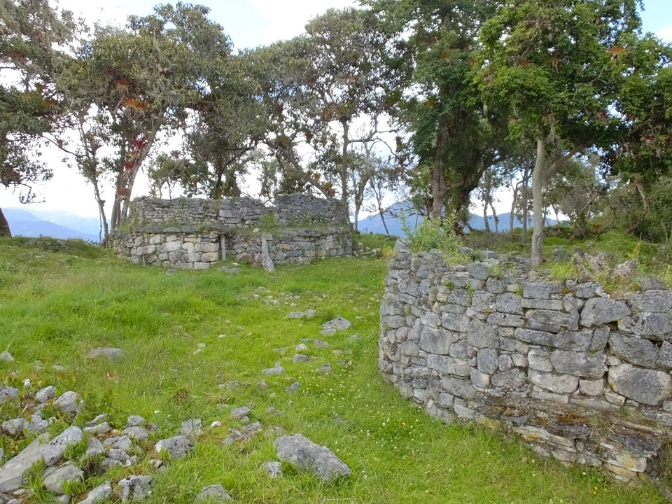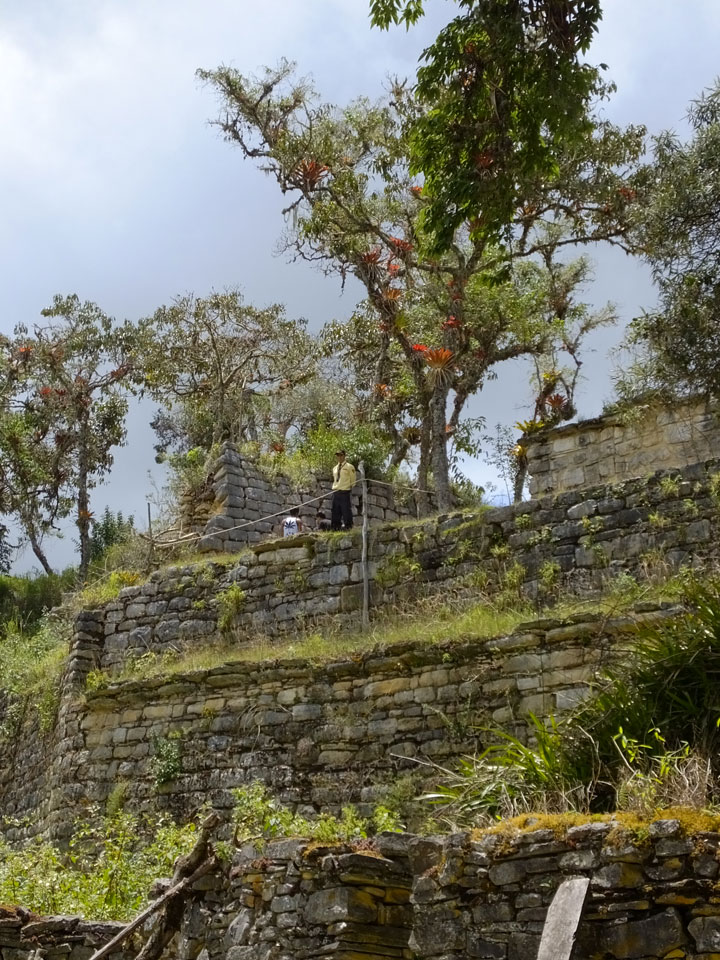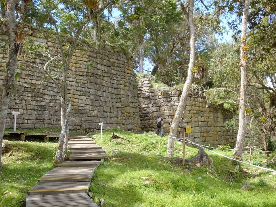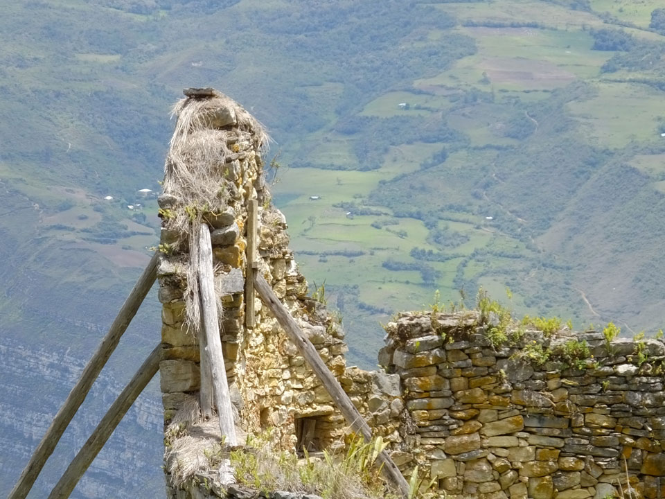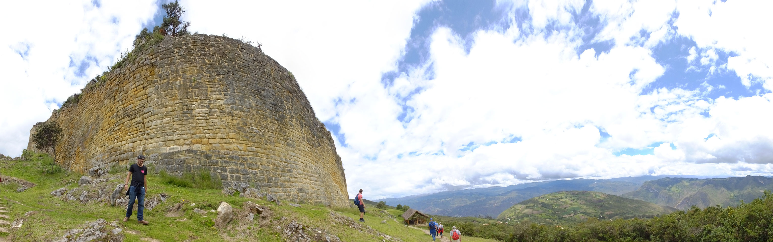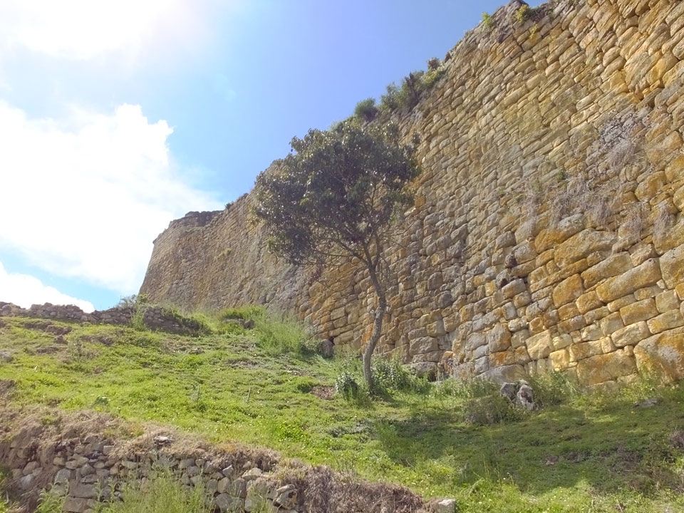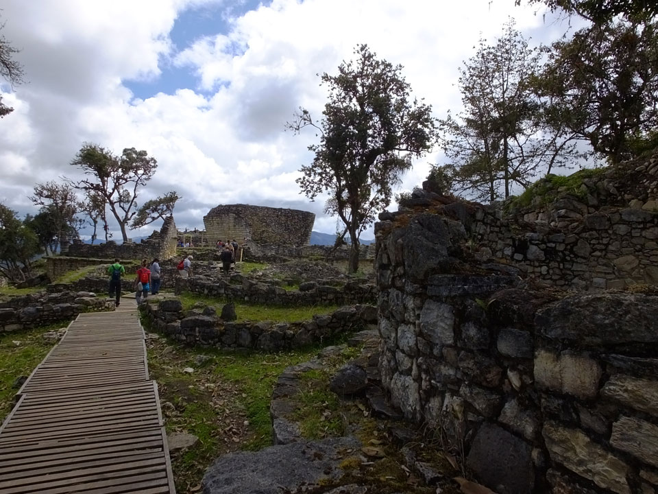 Imposante Mauern umgeben diese alte Stadt. Die Kultur die Chachapoya Leute reicht ca. 400 BC zurück, gebaut wurde Kuelap wohl von 400 AD für 1000 Jahre. So genau weiß man das nicht, weil um 1500 ein Spanier das Ding entdeckte, whl niederbrennen ließ und danach 300 Jahre lang sich niemand drum kümmerte.
