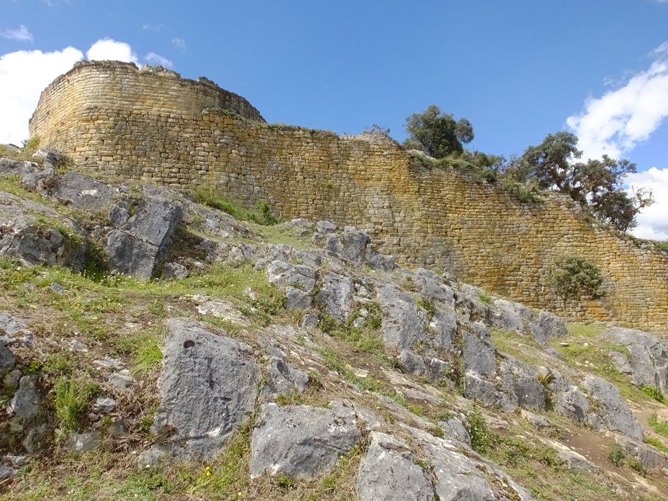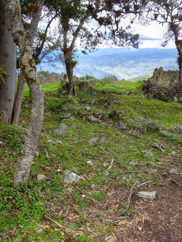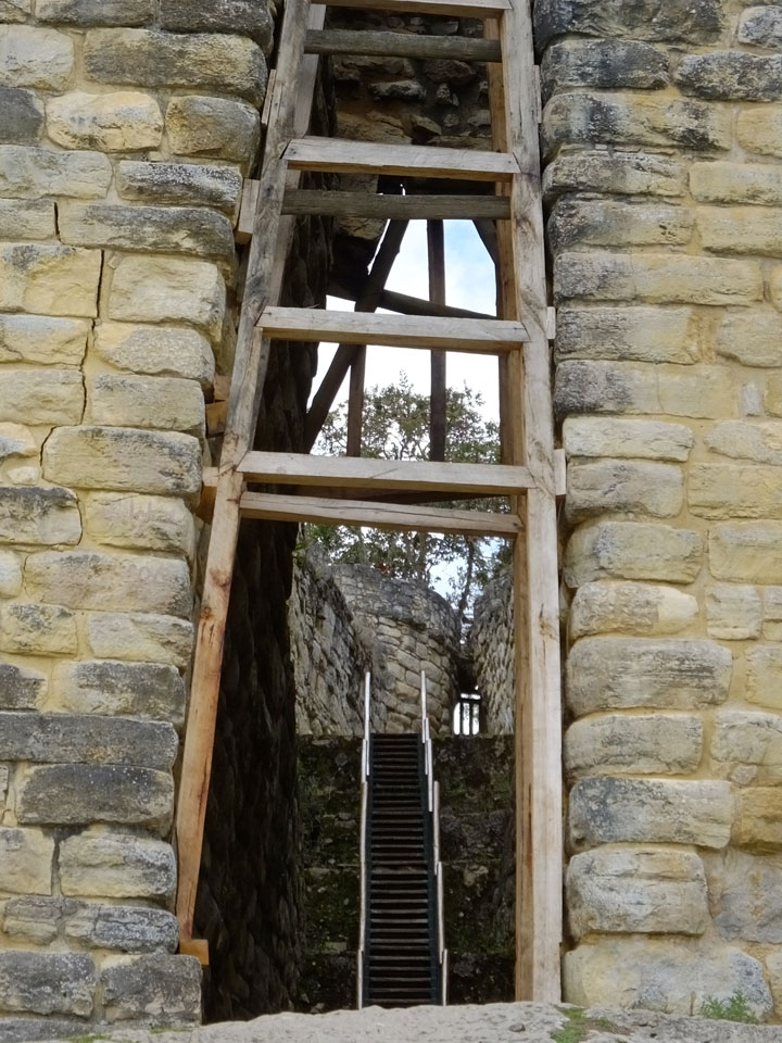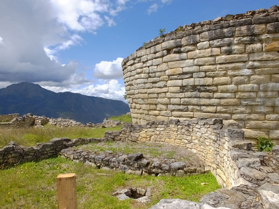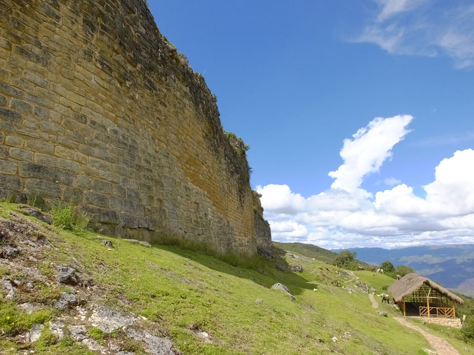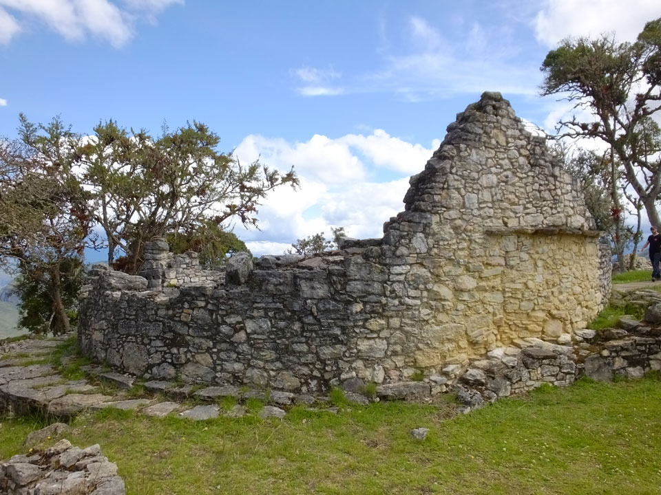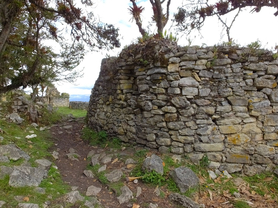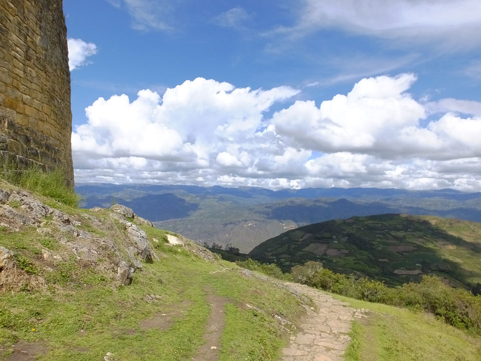 Imposante Mauern umgeben diese alte Stadt. Die Kultur die Chachapoya Leute reicht ca. 400 BC zurück, gebaut wurde Kuelap wohl von 400 AD für 1000 Jahre. So genau weiß man das nicht, weil um 1500 ein Spanier das Ding entdeckte, whl niederbrennen ließ und danach 300 Jahre lang sich niemand drum kümmerte.