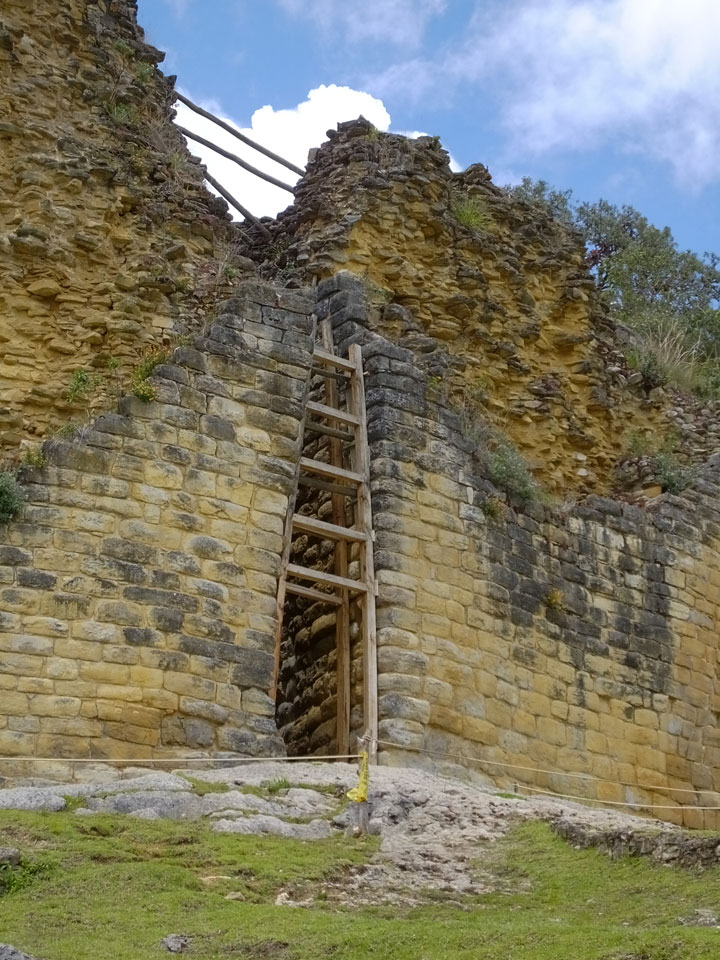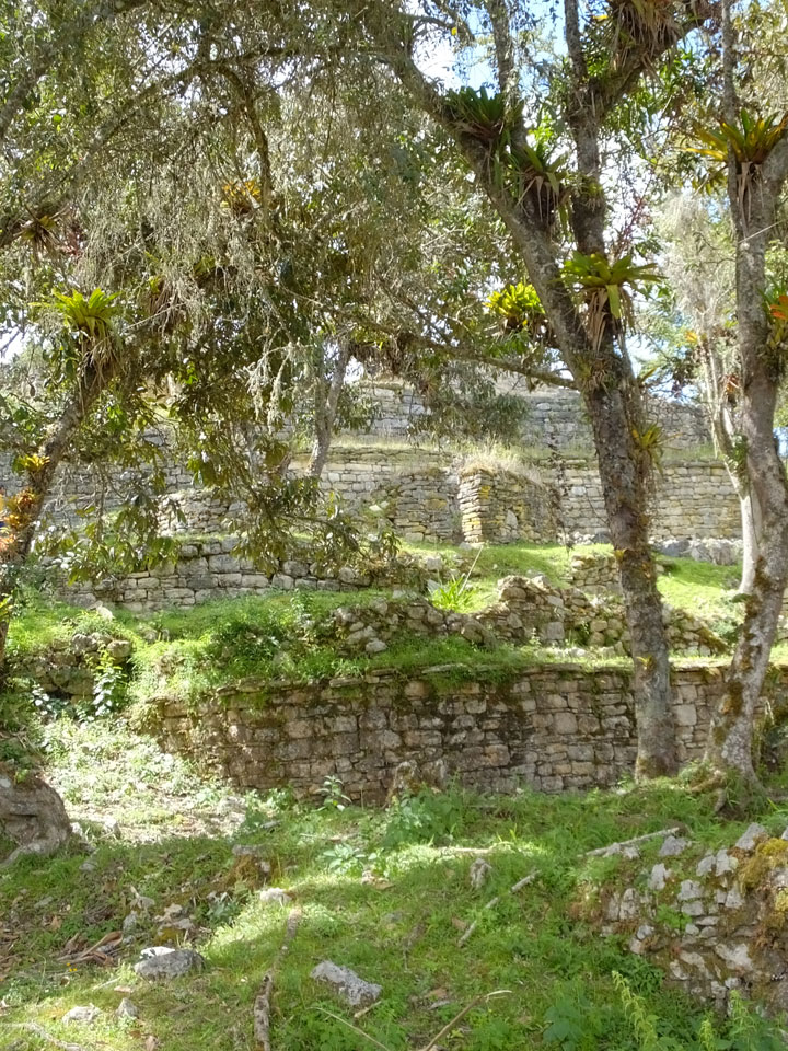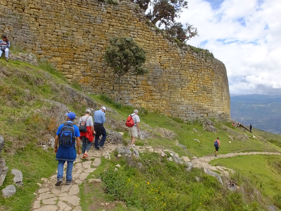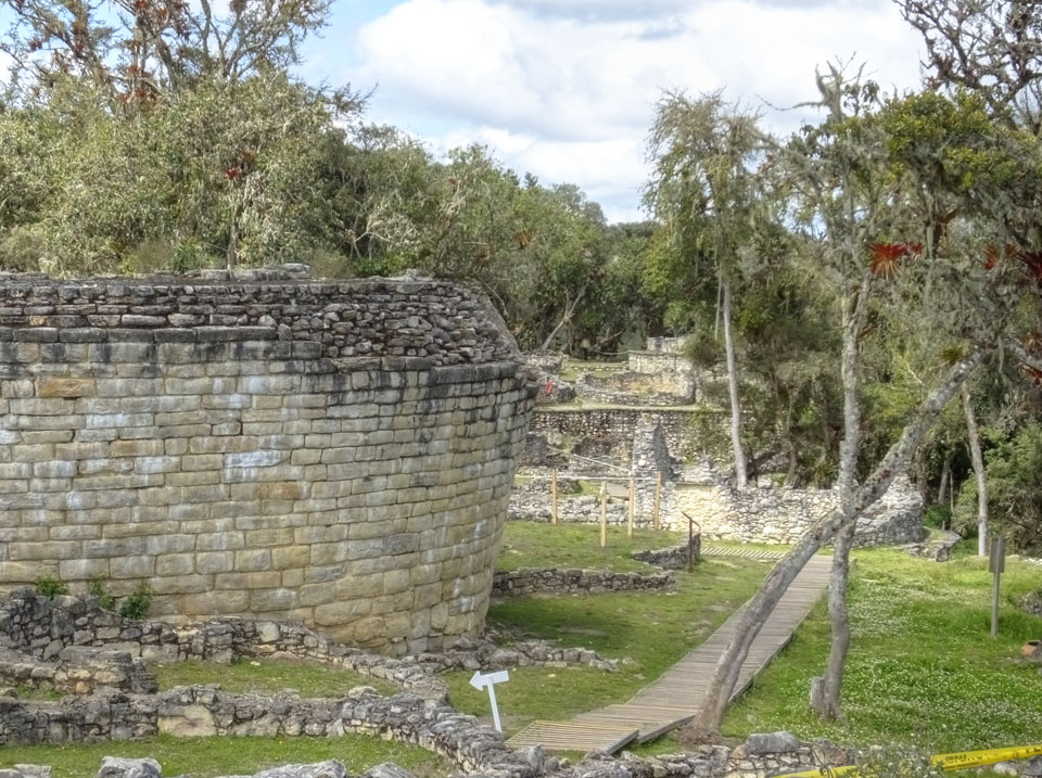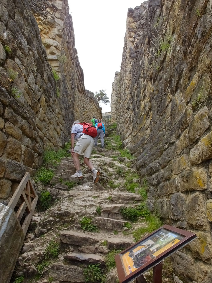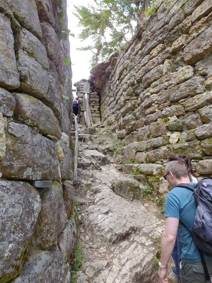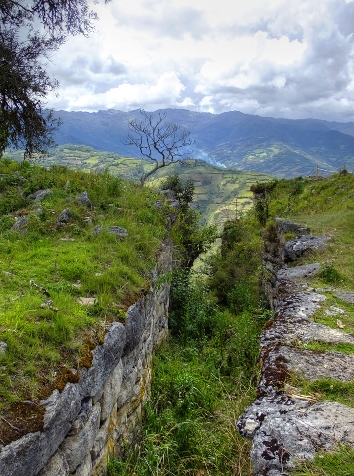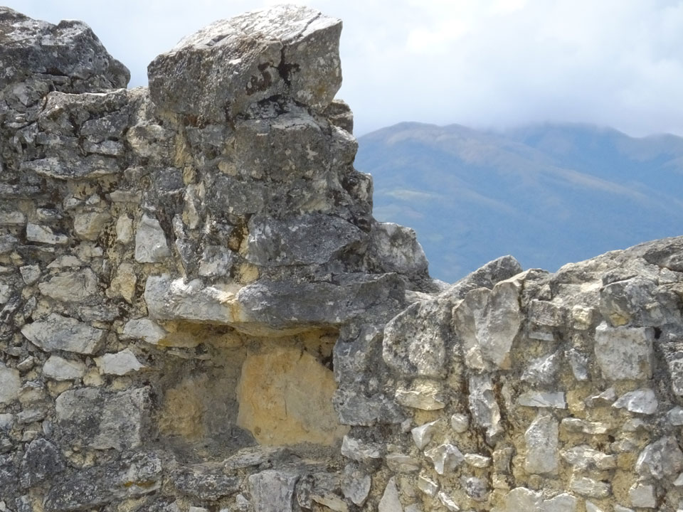 Imposante Mauern umgeben diese alte Stadt. Die Kultur die Chachapoya Leute reicht ca. 400 BC zurück, gebaut wurde Kuelap wohl von 400 AD für 1000 Jahre. So genau weiß man das nicht, weil um 1500 ein Spanier das Ding entdeckte, whl niederbrennen ließ und danach 300 Jahre lang sich niemand drum kümmerte.