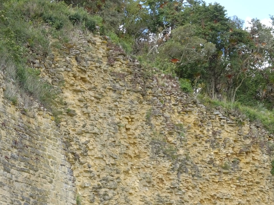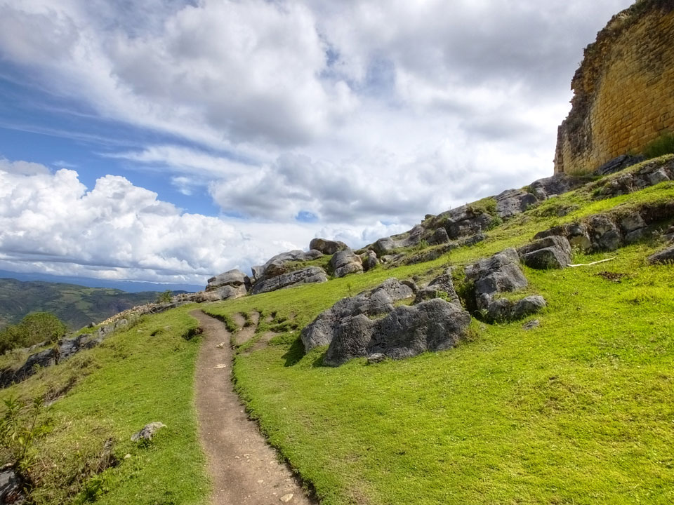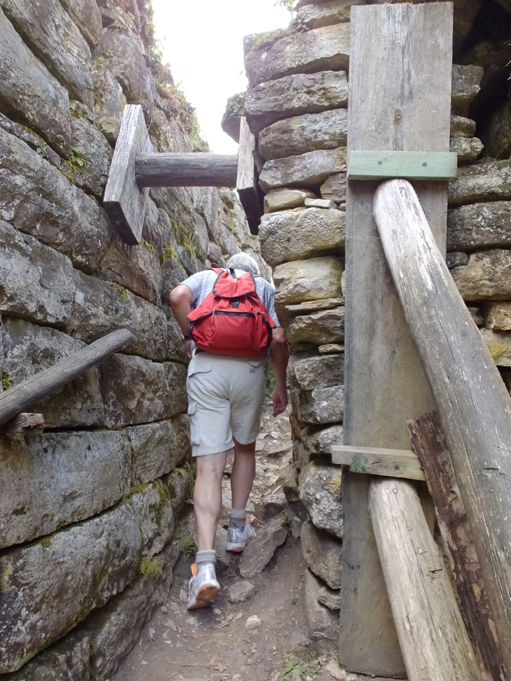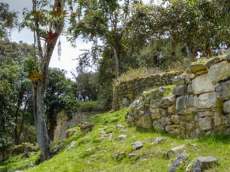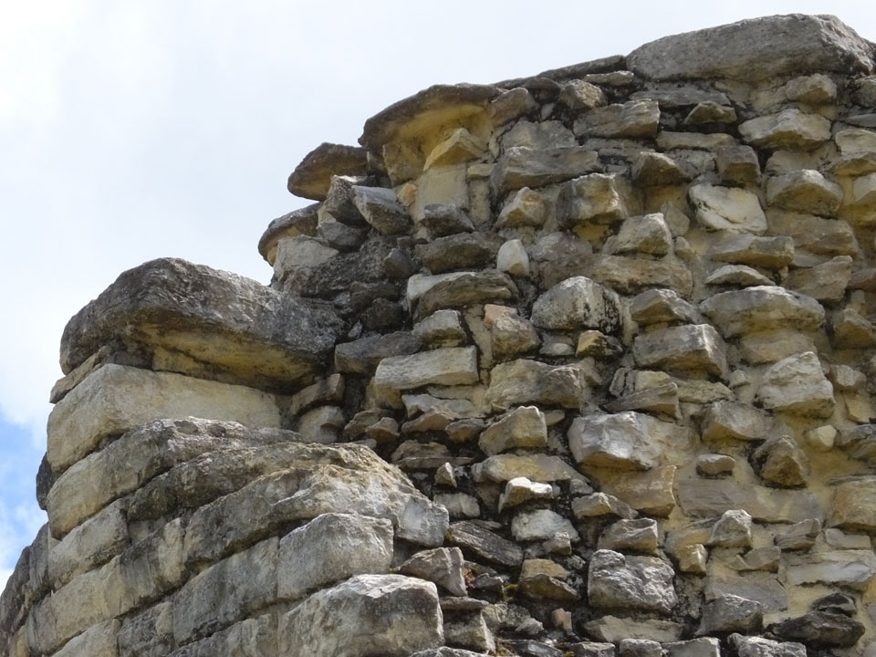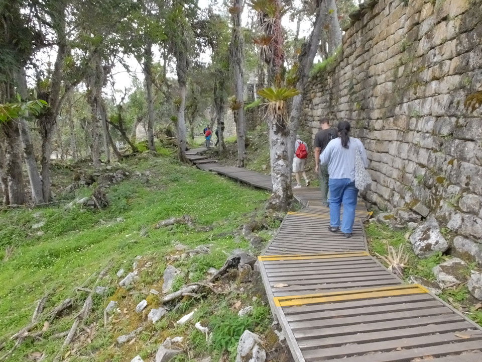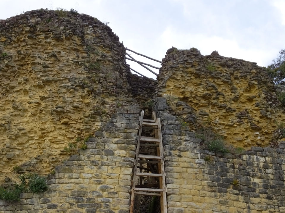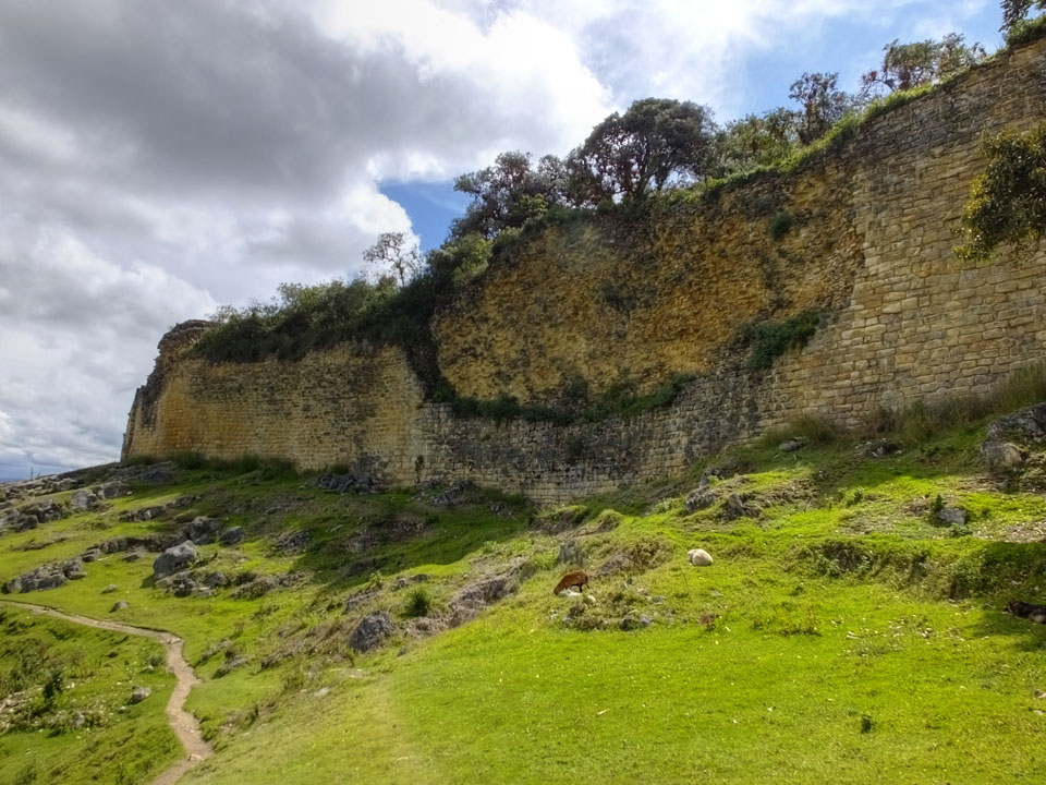 Imposante Mauern umgeben diese alte Stadt. Die Kultur die Chachapoya Leute reicht ca. 400 BC zurück, gebaut wurde Kuelap wohl von 400 AD für 1000 Jahre. So genau weiß man das nicht, weil um 1500 ein Spanier das Ding entdeckte, whl niederbrennen ließ und danach 300 Jahre lang sich niemand drum kümmerte.