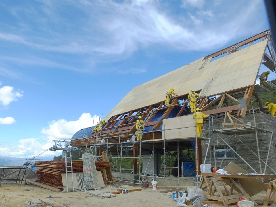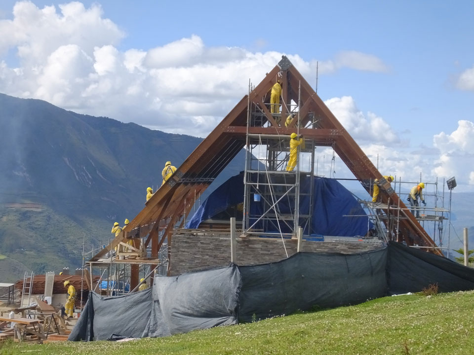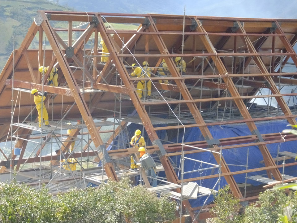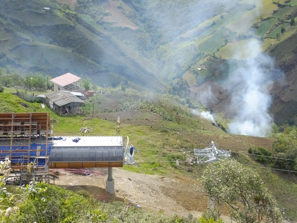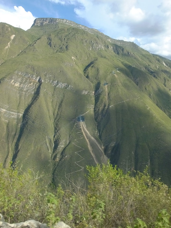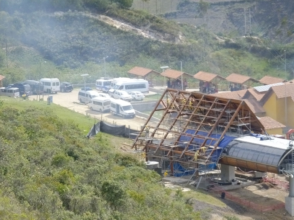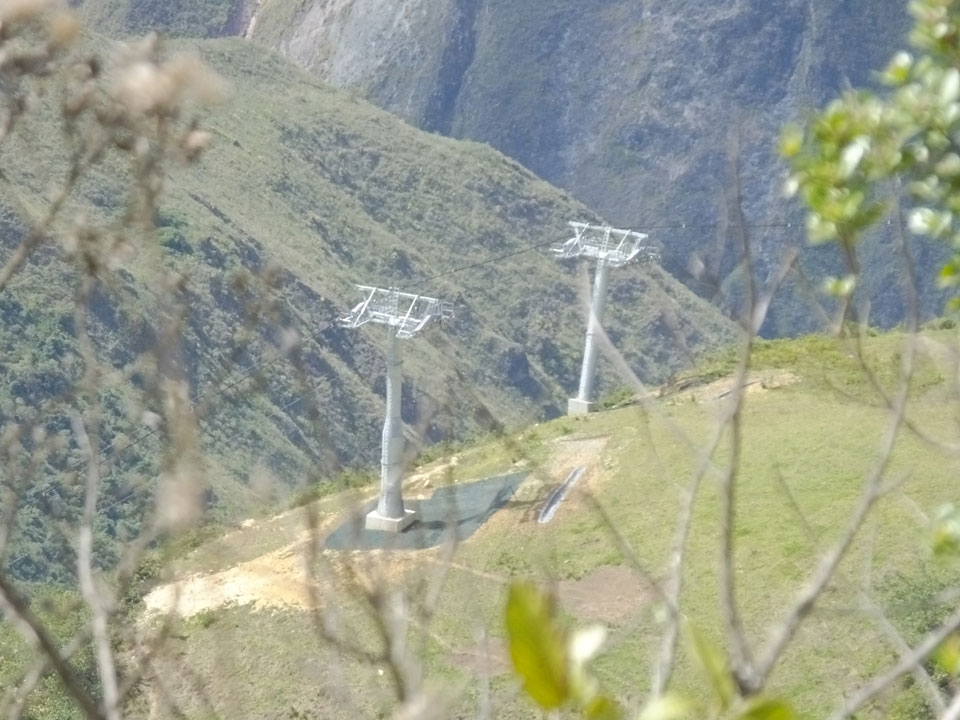 Wir kamen in Kuelap an. Als ersten fiel die im Bau befindliche Schwebebahn auf. Es wird eifrig gebaut. Das Ding wird sicherlich bald eingeweiht und erspart damit einiges an Fahrtweg. Die Länge dürfte mit Tatev in Armenien konkurrieren.