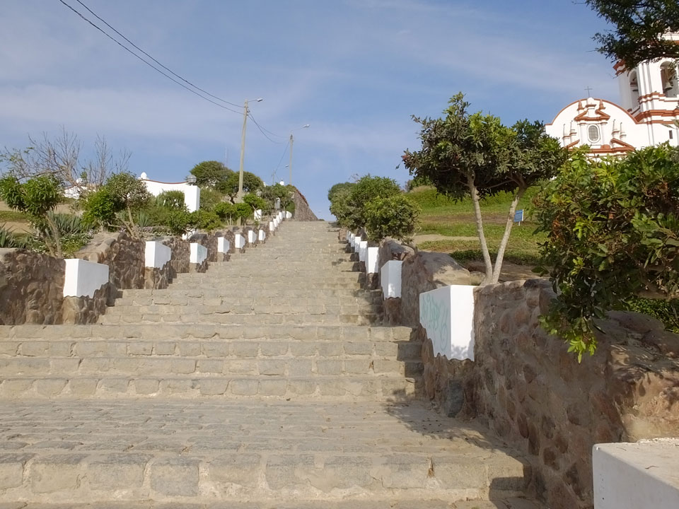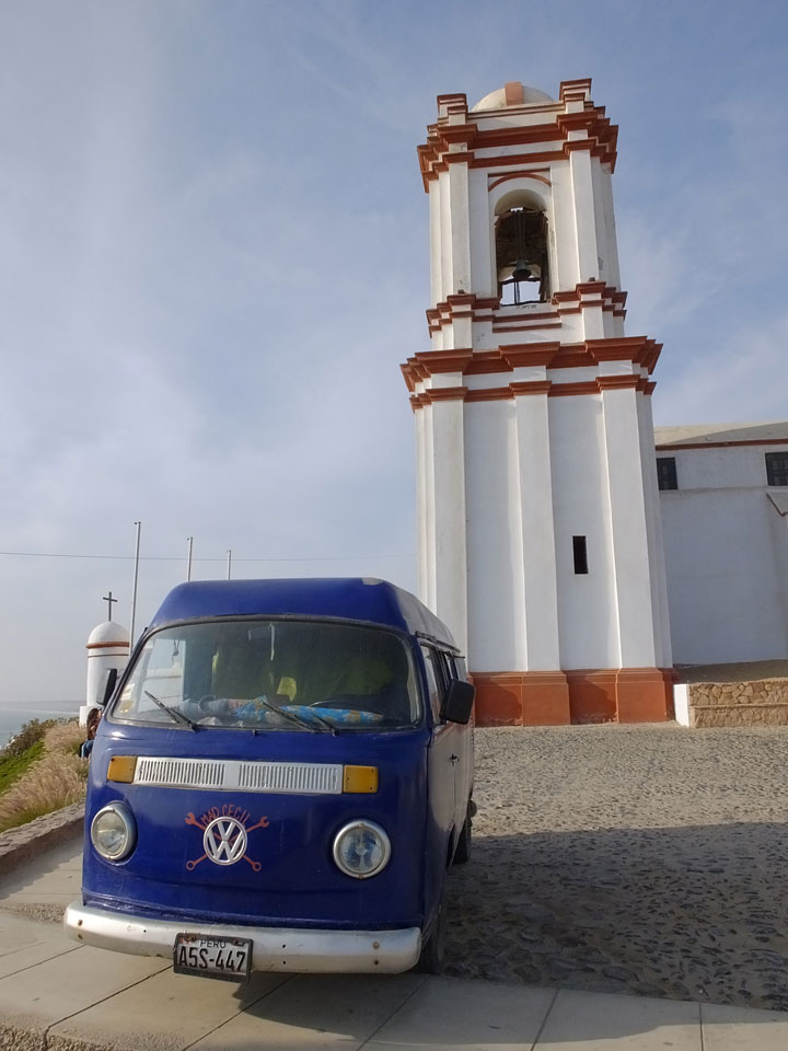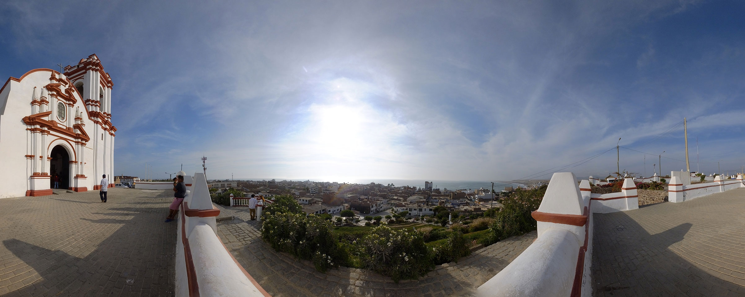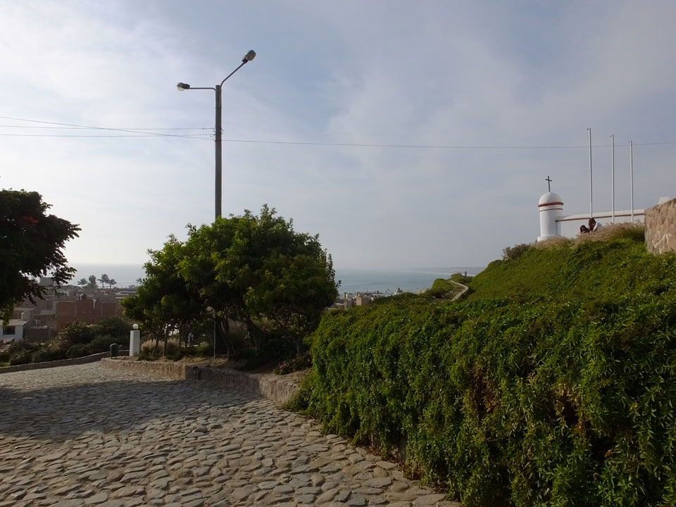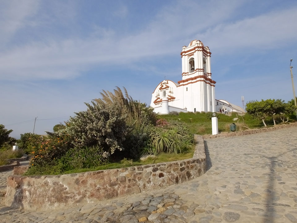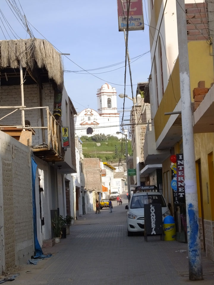 Nachmittags erst raus und dann gleich in eine Cevicheria. Das Menu Marisco kam gut, wie in Lima zum Preis von 15 Soles. Hier am Meer ist eben alles frisch. Satt ging ich dann einen guten Spaziergang durch’s Dorf und stieg hoch zur Kirche, die ich noch nicht kannte.
