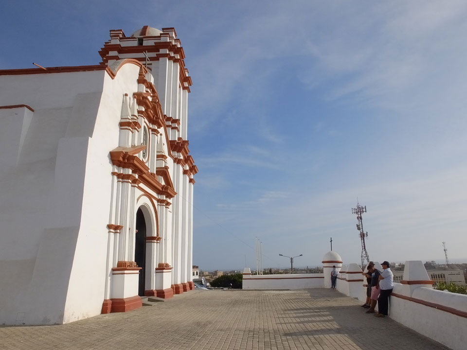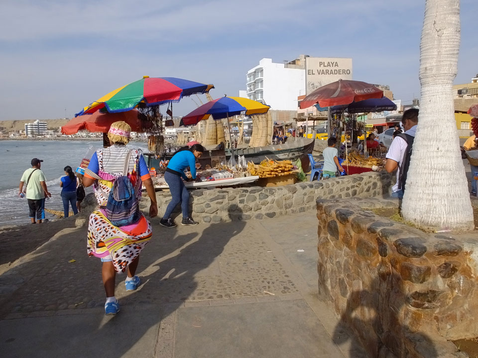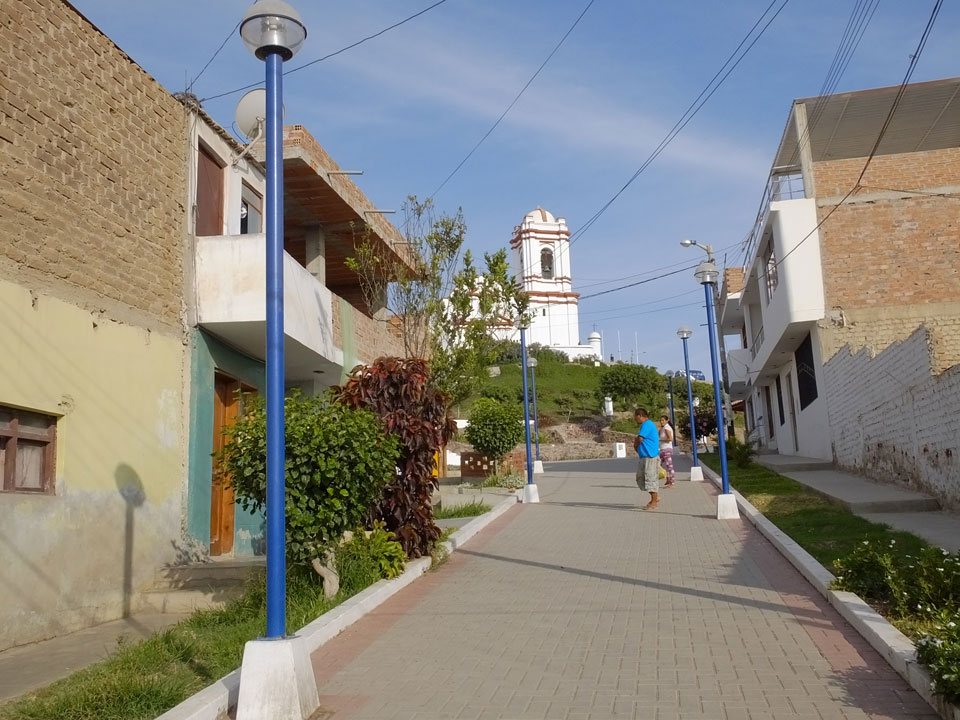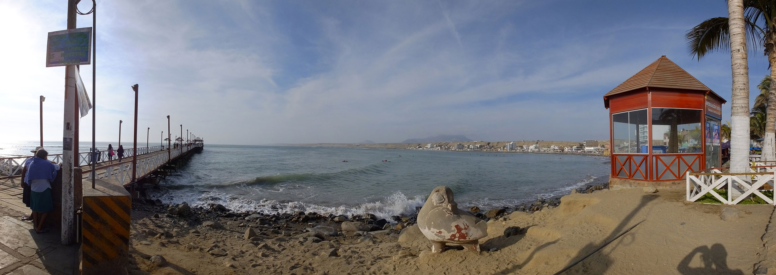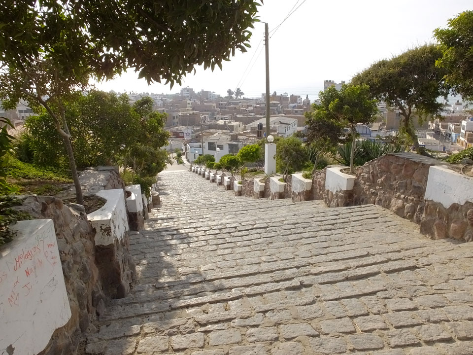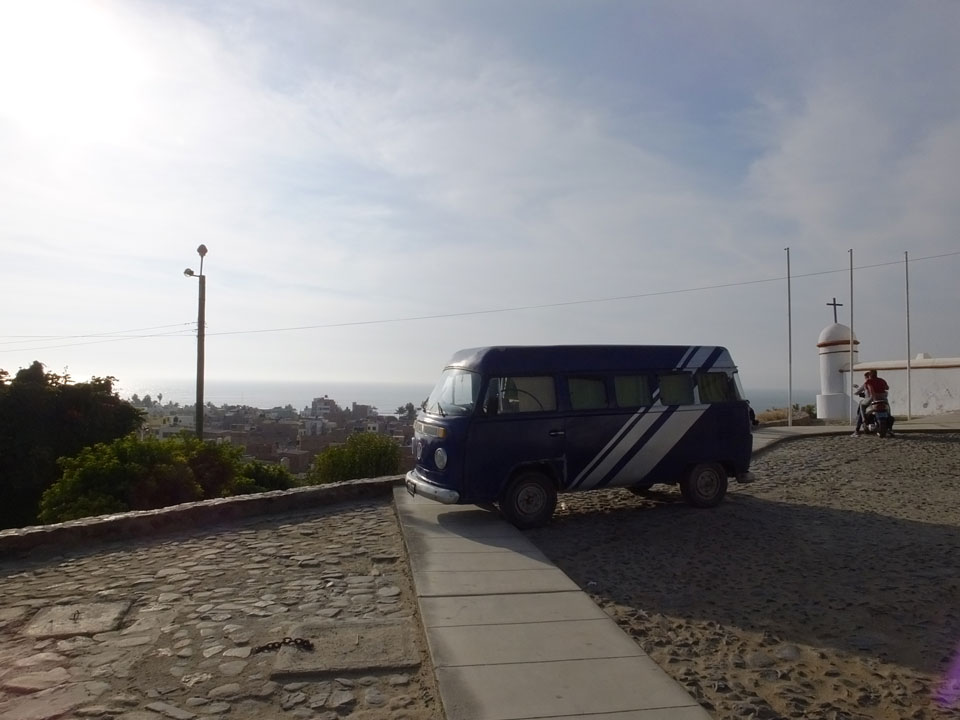 Nachmittags erst raus und dann gleich in eine Cevicheria. Das Menu Marisco kam gut, wie in Lima zum Preis von 15 Soles. Hier am Meer ist eben alles frisch. Satt ging ich dann einen guten Spaziergang durch’s Dorf und stieg hoch zur Kirche, die ich noch nicht kannte.