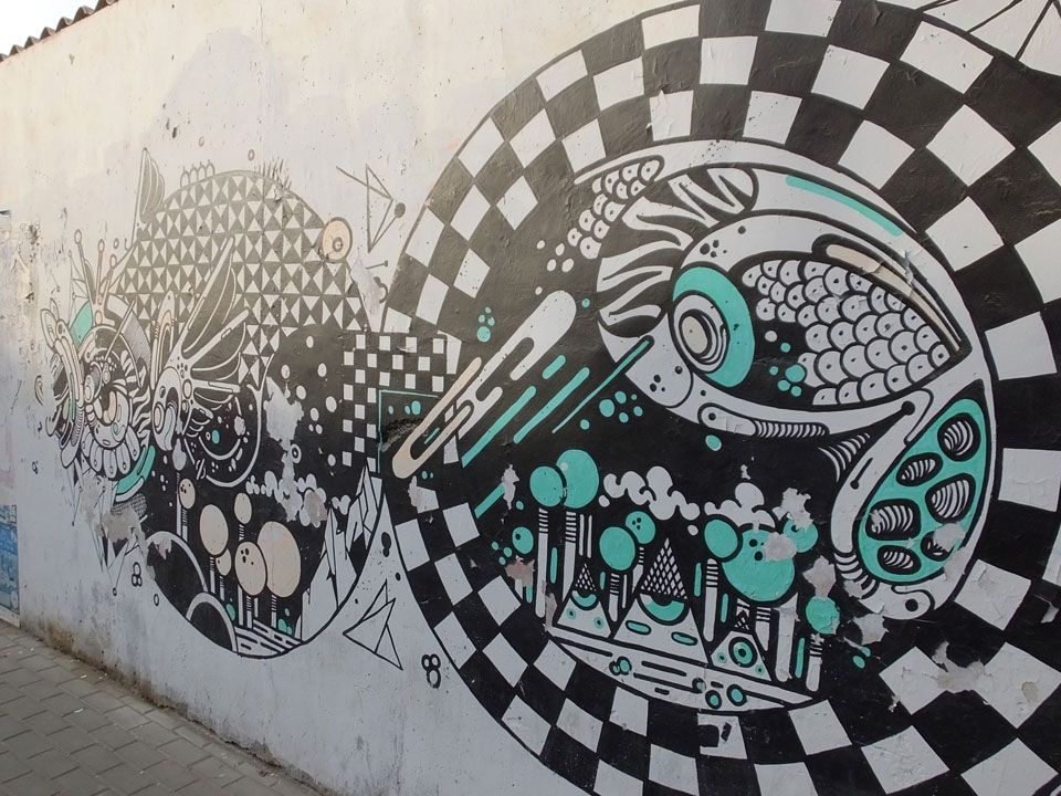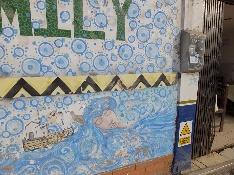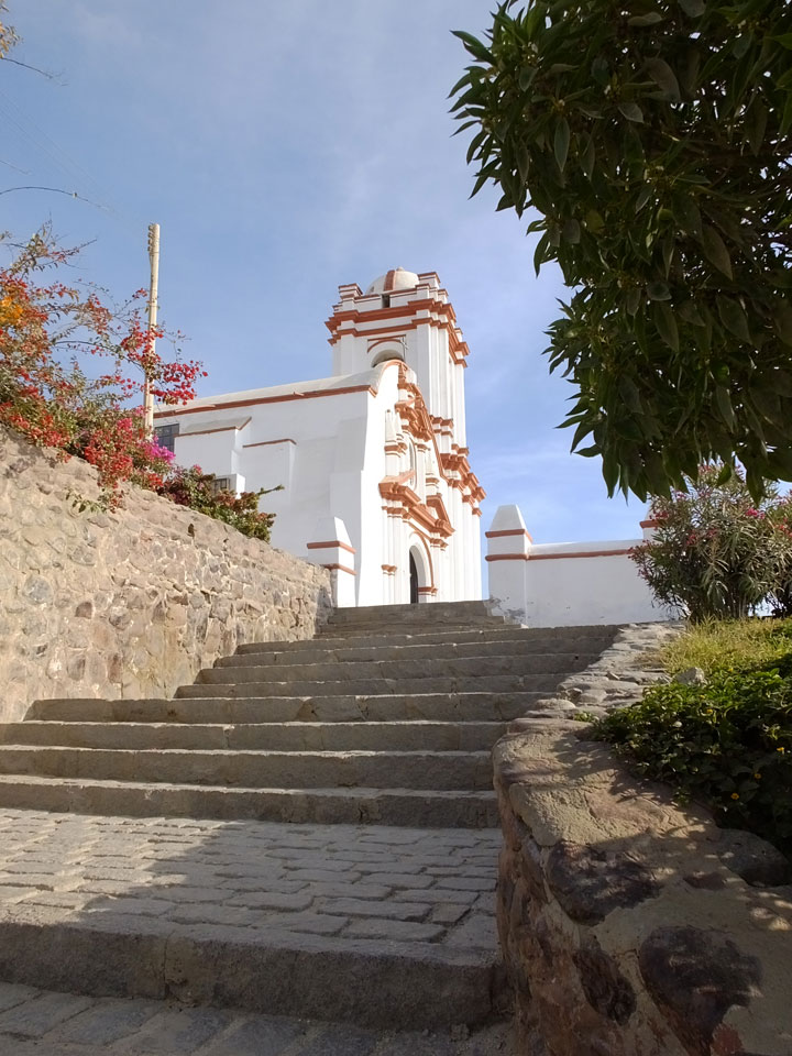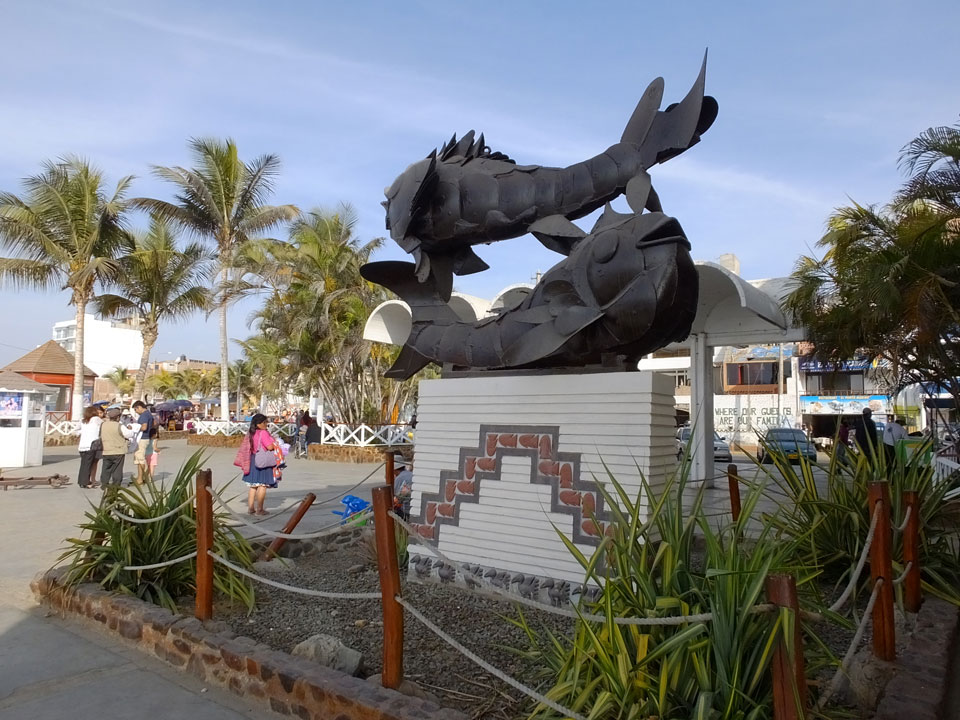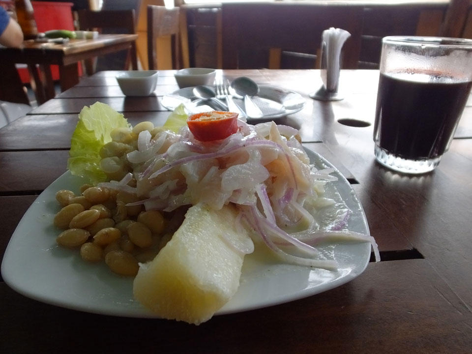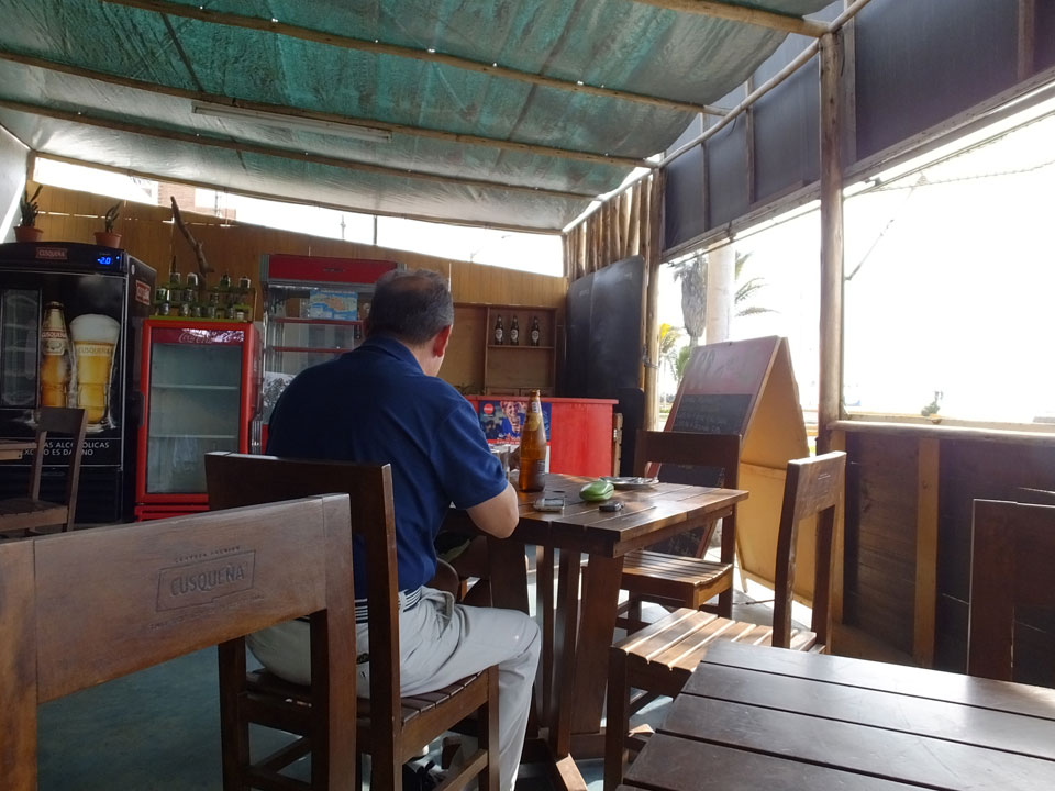 Nachmittags erst raus und dann gleich in eine Cevicheria. Das Menu Marisco kam gut, wie in Lima zum Preis von 15 Soles. Hier am Meer ist eben alles frisch. Satt ging ich dann einen guten Spaziergang durch’s Dorf und stieg hoch zur Kirche, die ich noch nicht kannte.