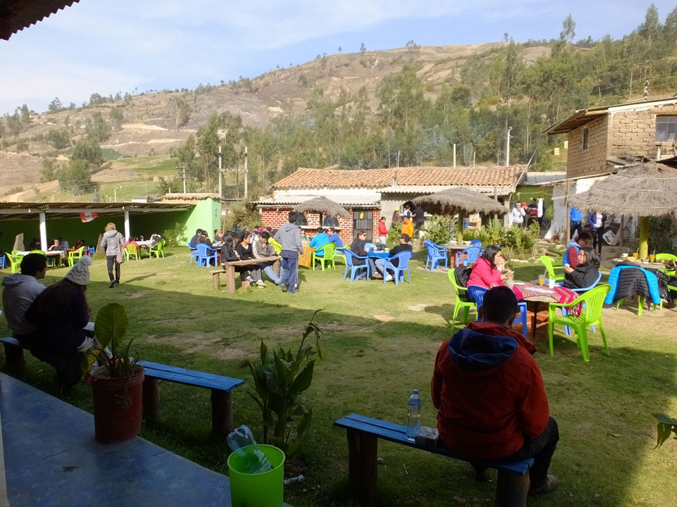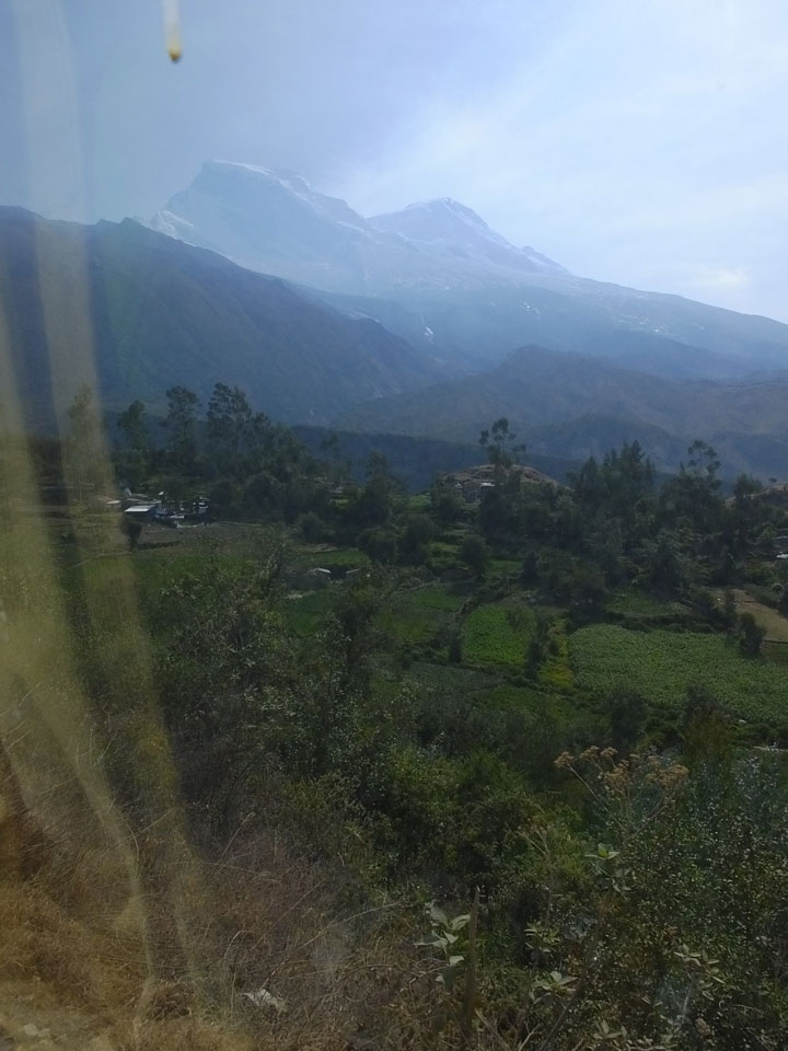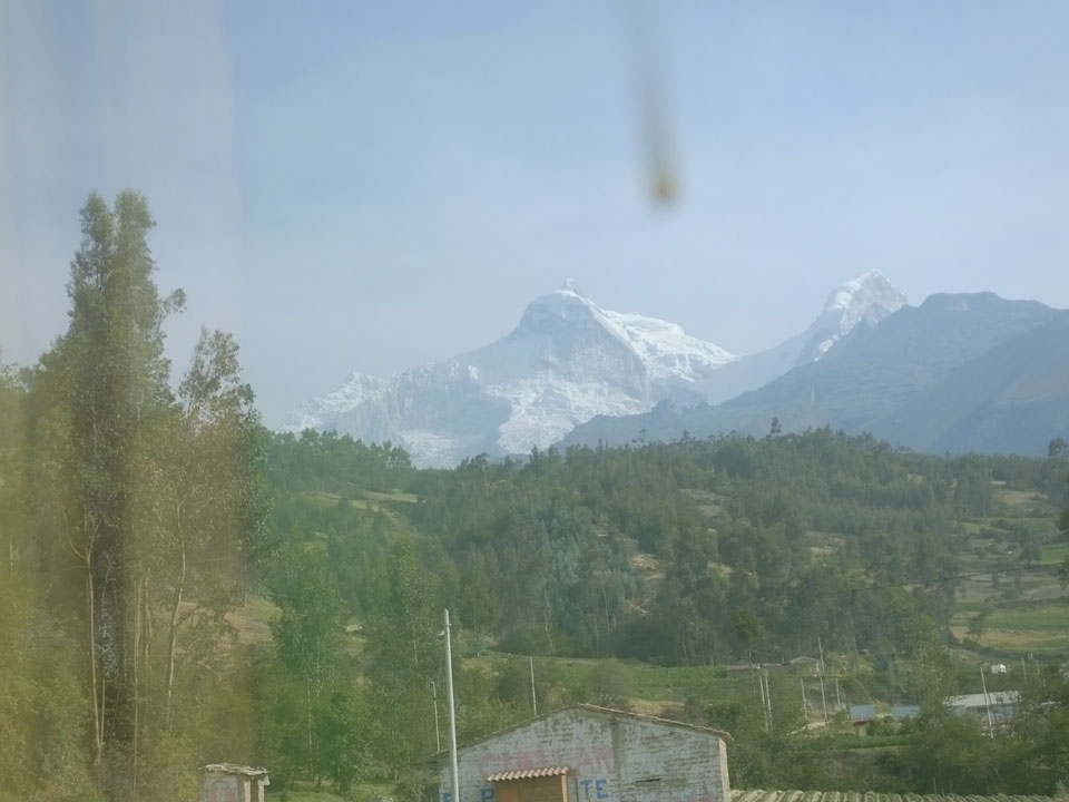 So mussten wir dann mind. eine halbe Stunde am Parkplatz warten. Zwei Leute waren nicht da, würden mit einem anderen Bus zurück nach Huaraz gelangen. Wir fuhren also zurück, in der Ferne sahen wir die Berge im Sonnenuntergang pink leuchten. Ein Halt wäre jetzt nochmals gut gewesen. Der Bus ließ die Leute bei meinem Hostal Akilpo raus und da war es bereits nach 19:00. Ein echt langer Tag, 14h unterwegs ohne groß Schlaf.