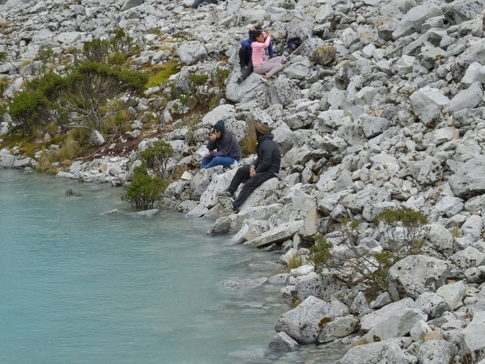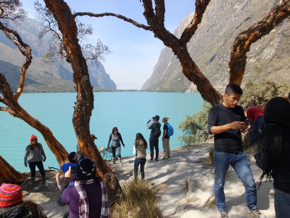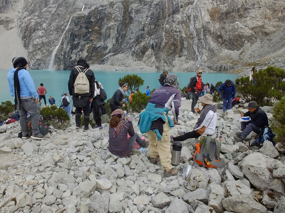 Es ging schließlich ca. 2 ½h zum Frühstück. Eile war geboten, der Tourguide machte ordentlich Druck. An einem See durften wir nur wenige Minuten knipsen. Es ist schon ganz witzig, wenn so viele Touristen mit Selfie-Sticks und Handies alle möglichen Selfies in kürzester Zeit machen. Im Huascan National Park gibt es 292 Lagunen. Die Laguna 69 ist eine der populärsten Tagesausflüge. Hier wurde es voll.