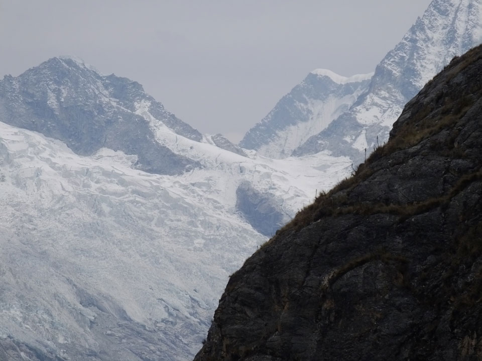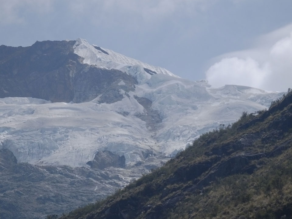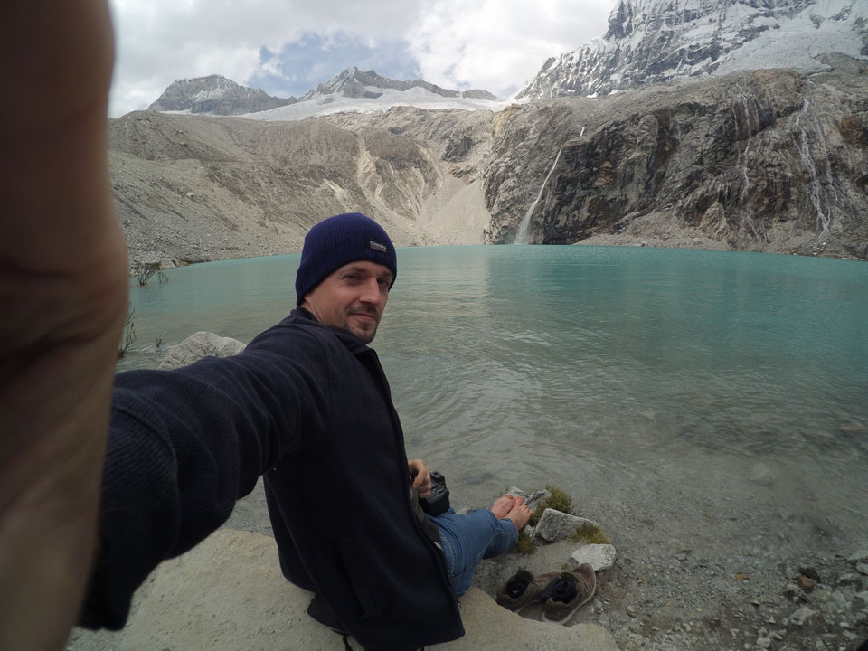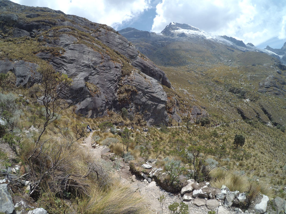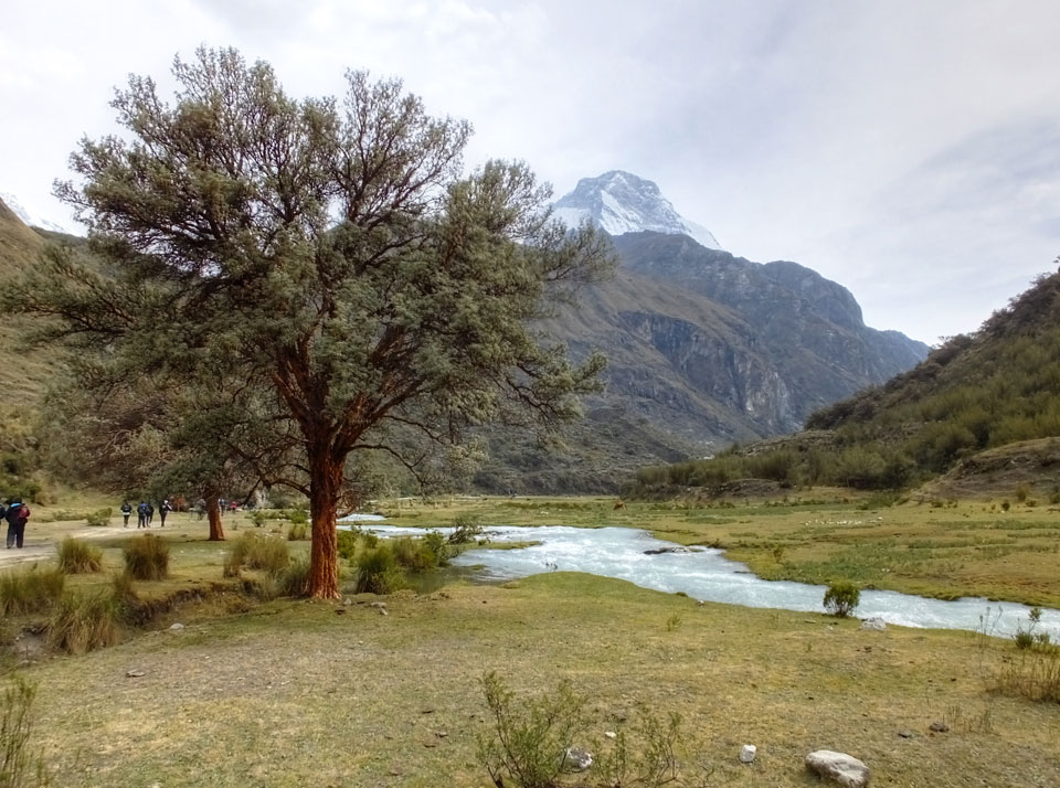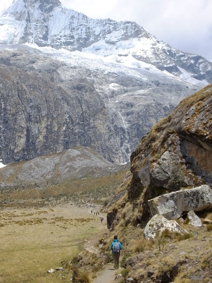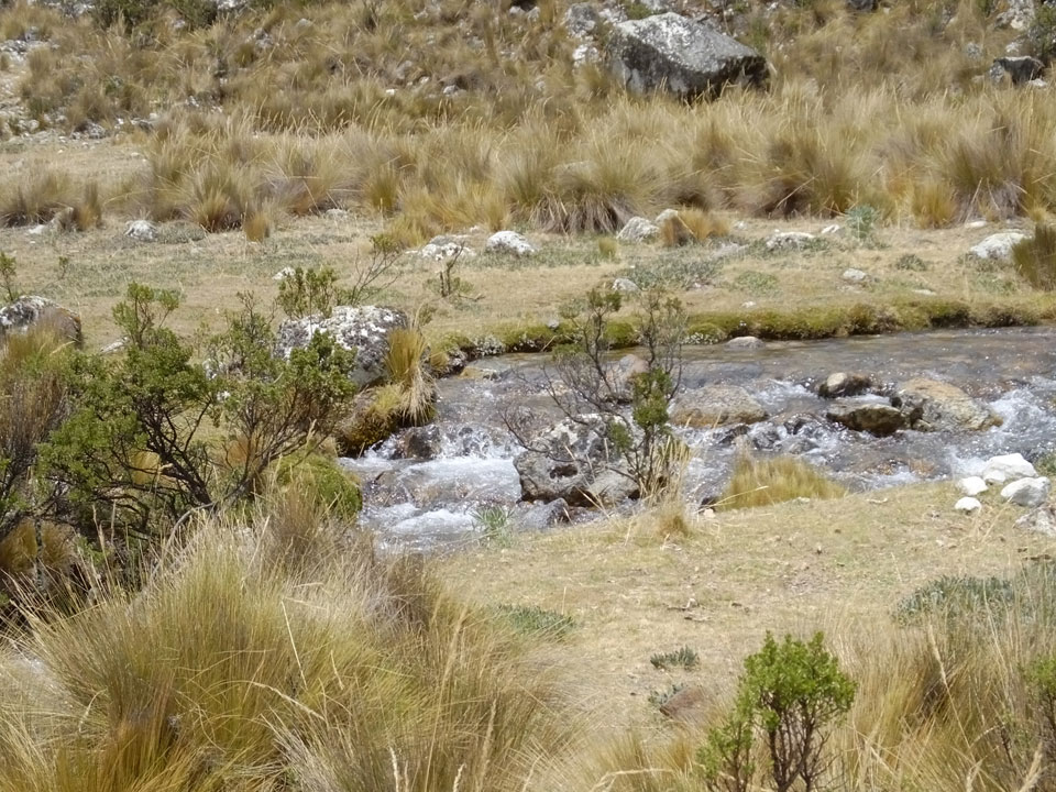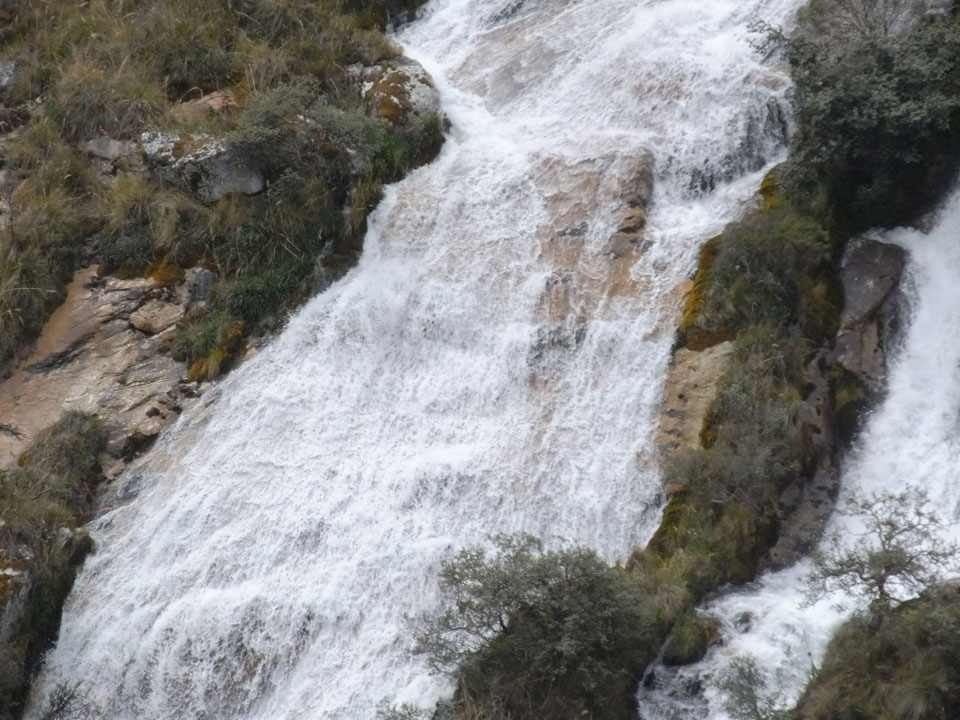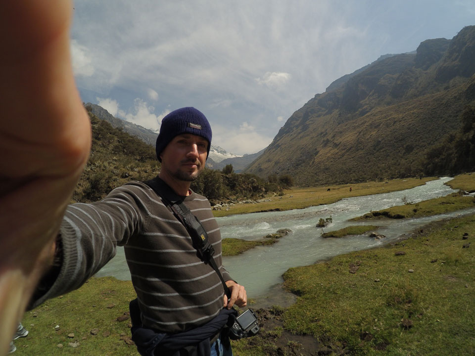 Der Huascan, mit über 6000m der höchste Berg Perus, thronte hinter uns. Ich drehte mich deswegen oft um, weil die Gegend einfach fantastisch aussah. Ringsum Berge, perfektes Wetter und ein gut ausgetretener Weg. Nach einer guten Stunde flachen Pfades, ging es dann bergauf. Vorbei an Wasserfällen ging es immer weiter in die Höhe, was ich doch mit der Puste merkte. Ich ging öfters mal schneller an Leuten vorbei und schloss dabei meinen Mund, versuchte nur über die Nase zu atmen. Ha! Die Rechnung folgte auf dem Fuß, weil ich dann schnell atemlos war. Der Egotrip, Höhenfitness zu faken, gab gute Schwindelanfälle.