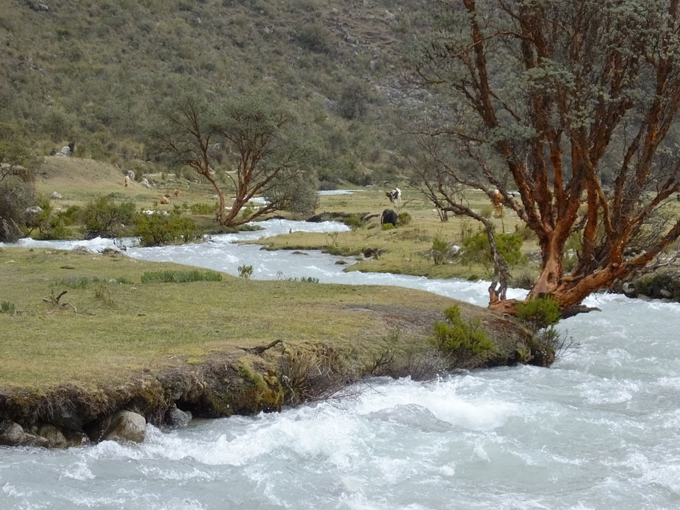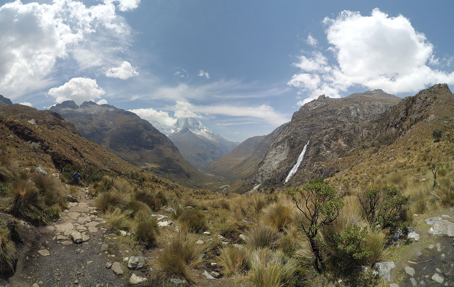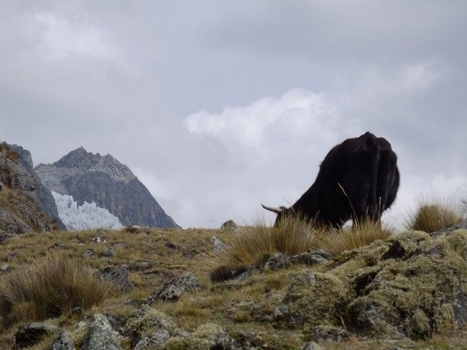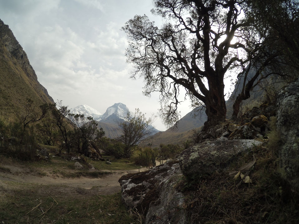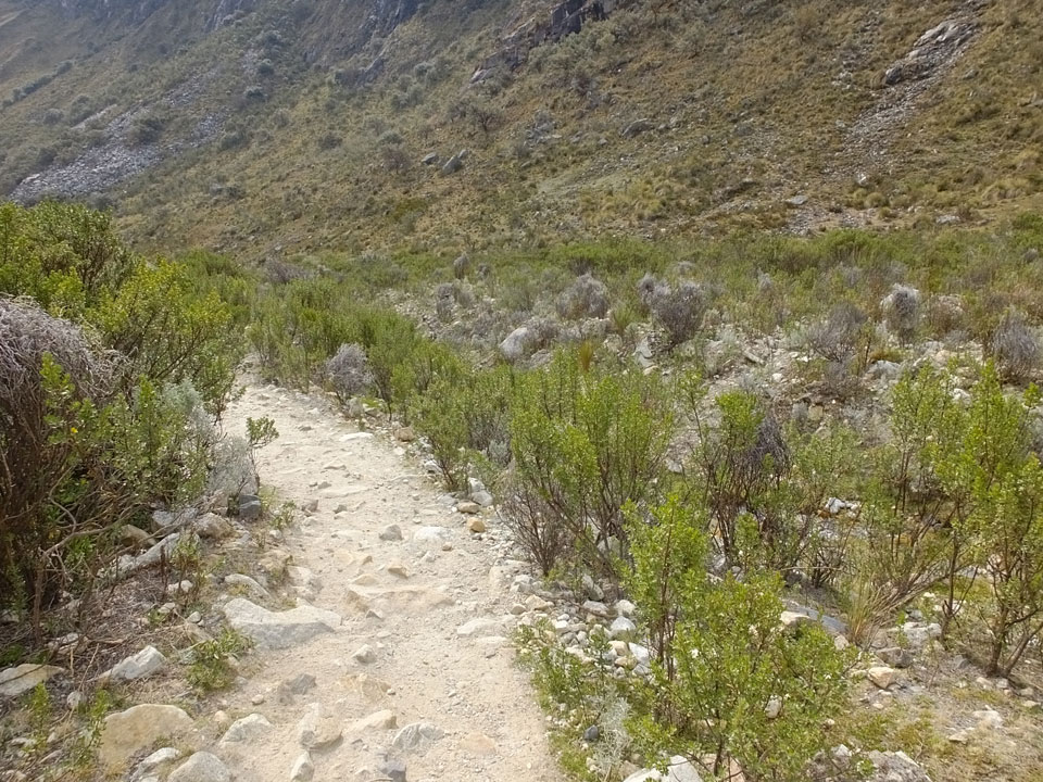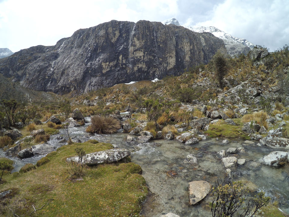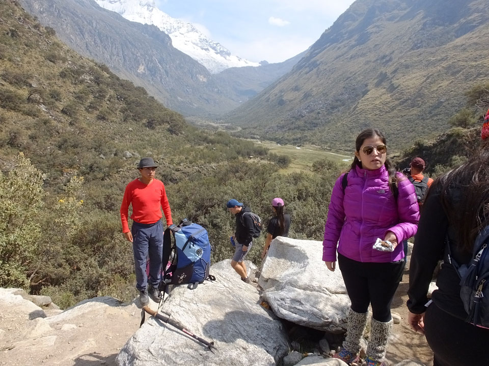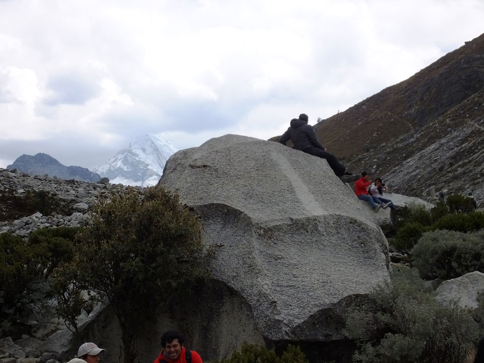 Der Huascan, mit über 6000m der höchste Berg Perus, thronte hinter uns. Ich drehte mich deswegen oft um, weil die Gegend einfach fantastisch aussah. Ringsum Berge, perfektes Wetter und ein gut ausgetretener Weg. Nach einer guten Stunde flachen Pfades, ging es dann bergauf. Vorbei an Wasserfällen ging es immer weiter in die Höhe, was ich doch mit der Puste merkte. Ich ging öfters mal schneller an Leuten vorbei und schloss dabei meinen Mund, versuchte nur über die Nase zu atmen. Ha! Die Rechnung folgte auf dem Fuß, weil ich dann schnell atemlos war. Der Egotrip, Höhenfitness zu faken, gab gute Schwindelanfälle.