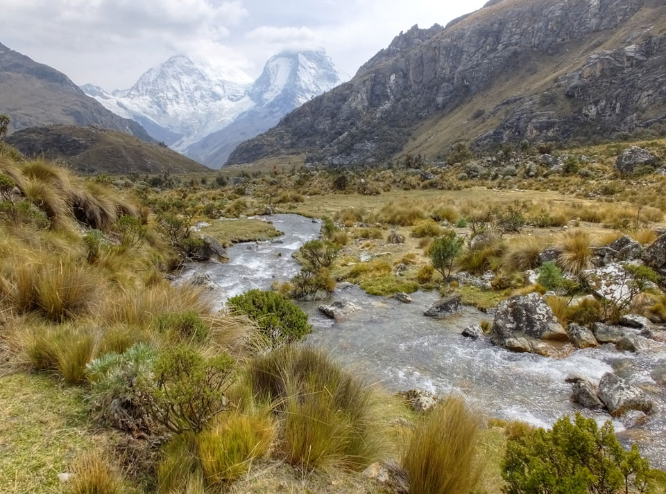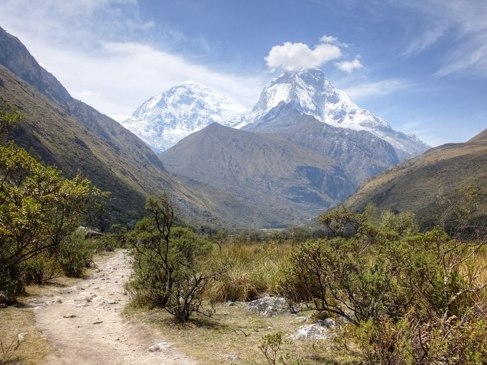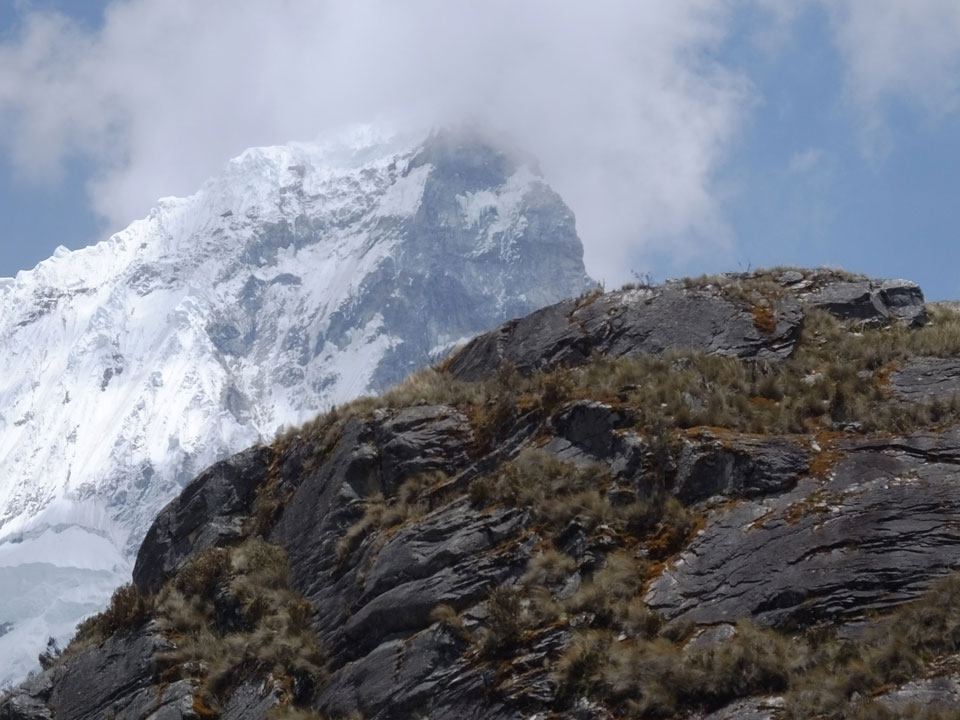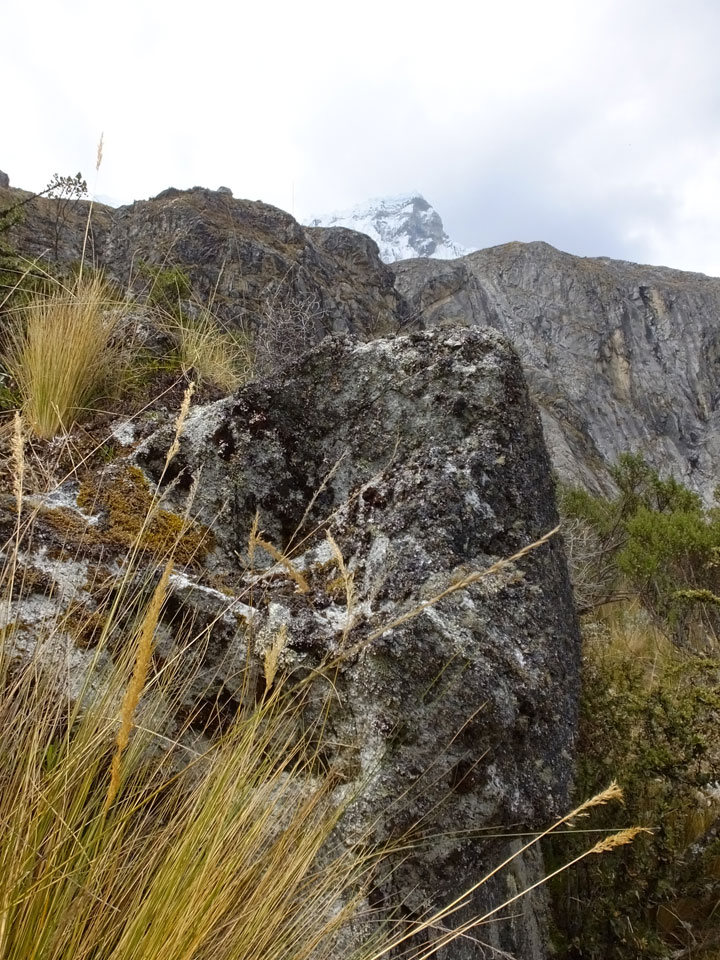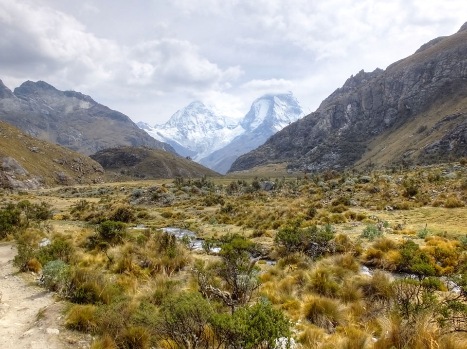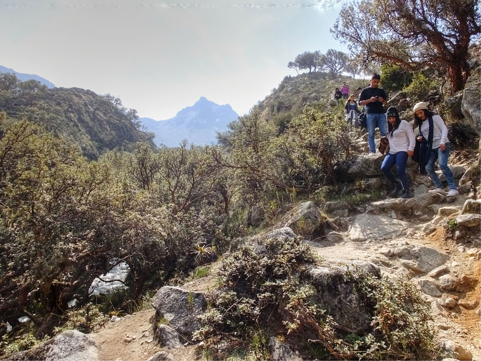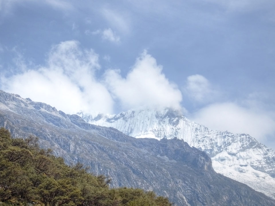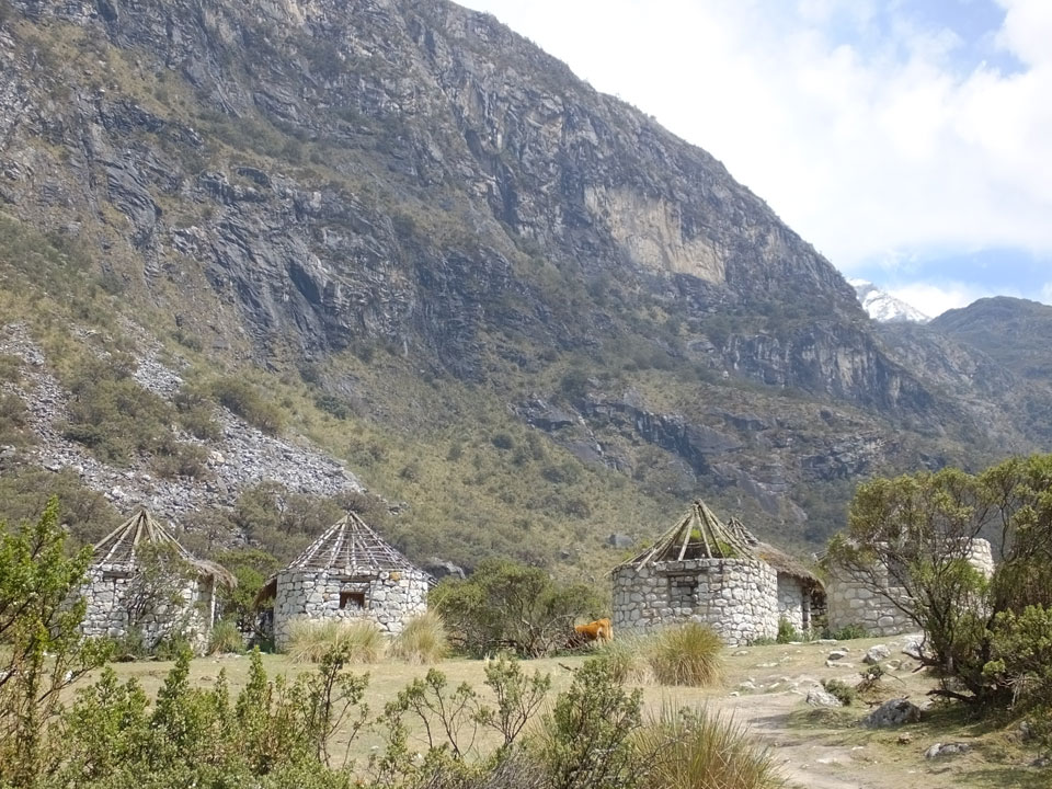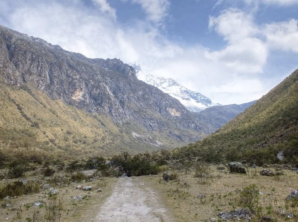 Der Huascan, mit über 6000m der höchste Berg Perus, thronte hinter uns. Ich drehte mich deswegen oft um, weil die Gegend einfach fantastisch aussah. Ringsum Berge, perfektes Wetter und ein gut ausgetretener Weg. Nach einer guten Stunde flachen Pfades, ging es dann bergauf. Vorbei an Wasserfällen ging es immer weiter in die Höhe, was ich doch mit der Puste merkte. Ich ging öfters mal schneller an Leuten vorbei und schloss dabei meinen Mund, versuchte nur über die Nase zu atmen. Ha! Die Rechnung folgte auf dem Fuß, weil ich dann schnell atemlos war. Der Egotrip, Höhenfitness zu faken, gab gute Schwindelanfälle.