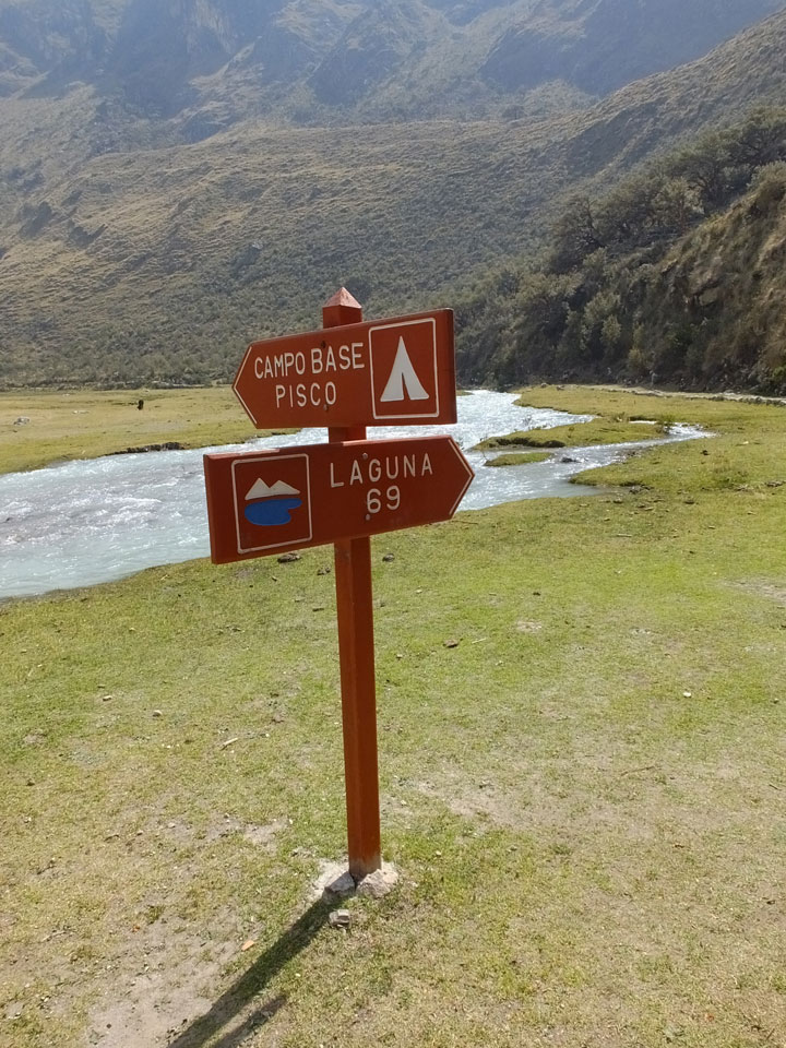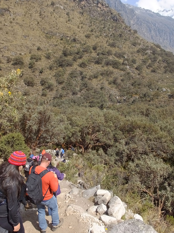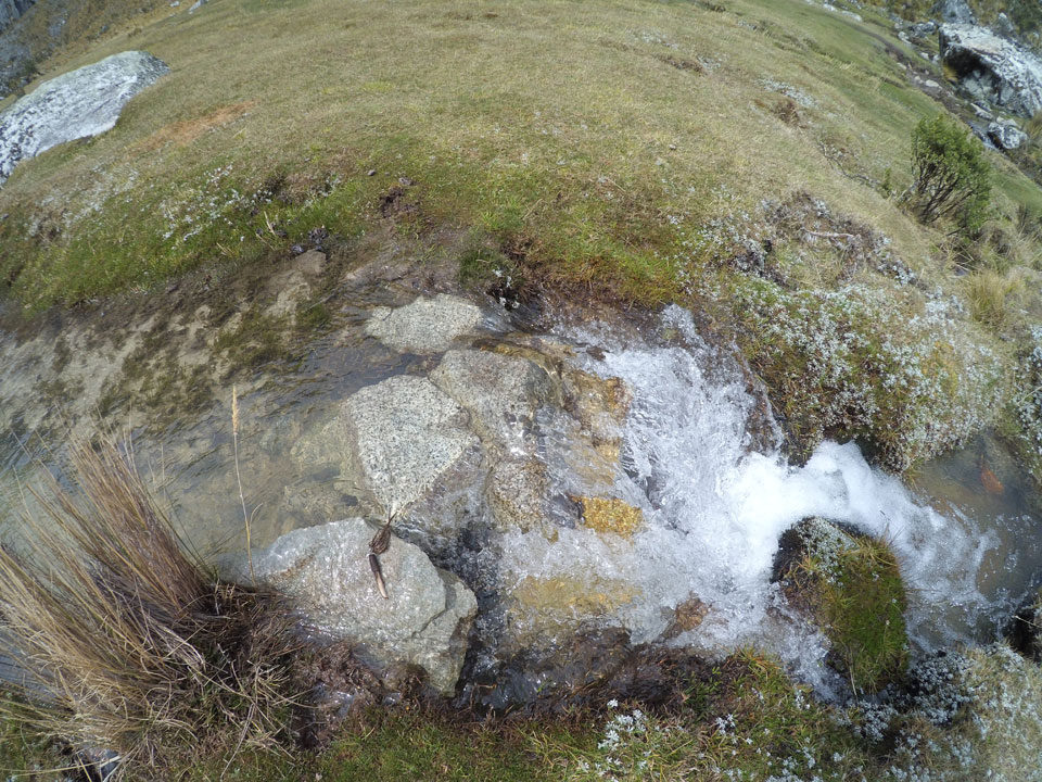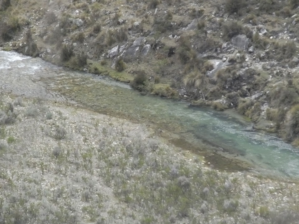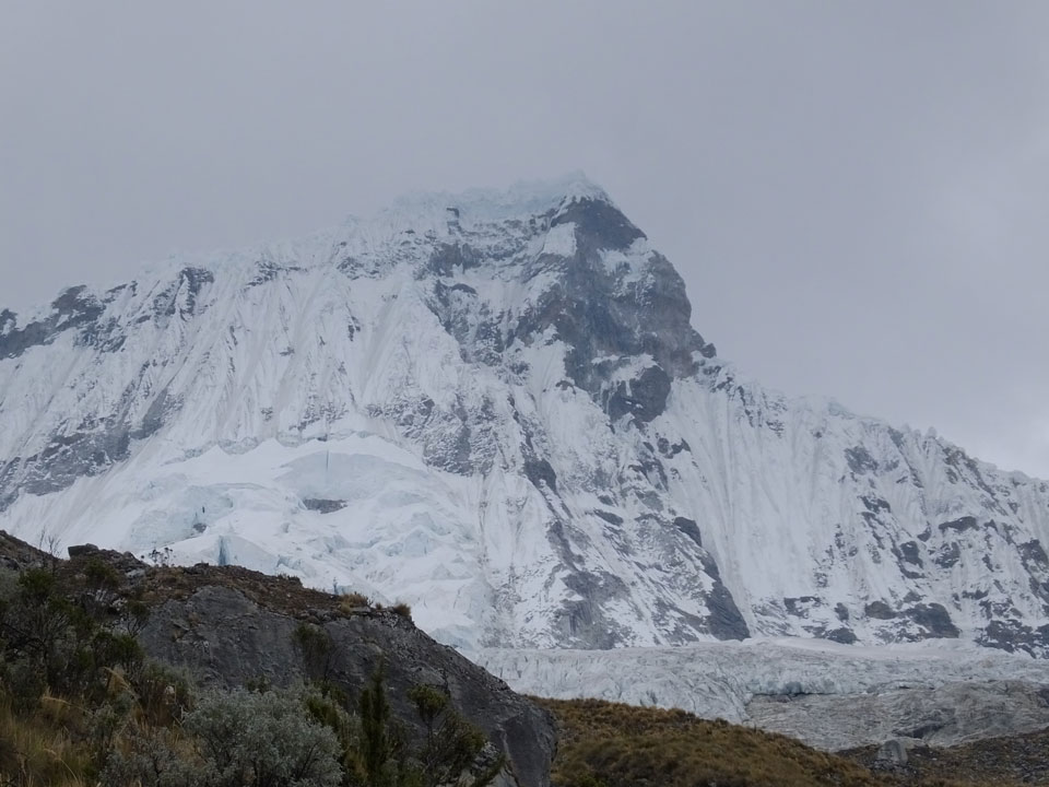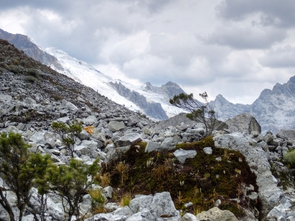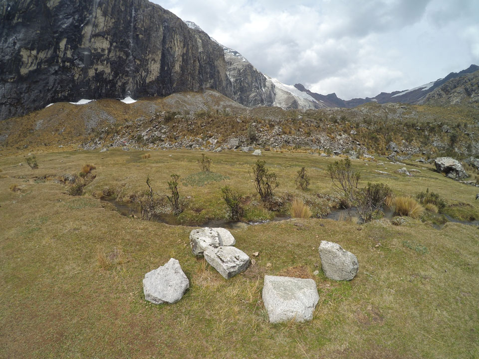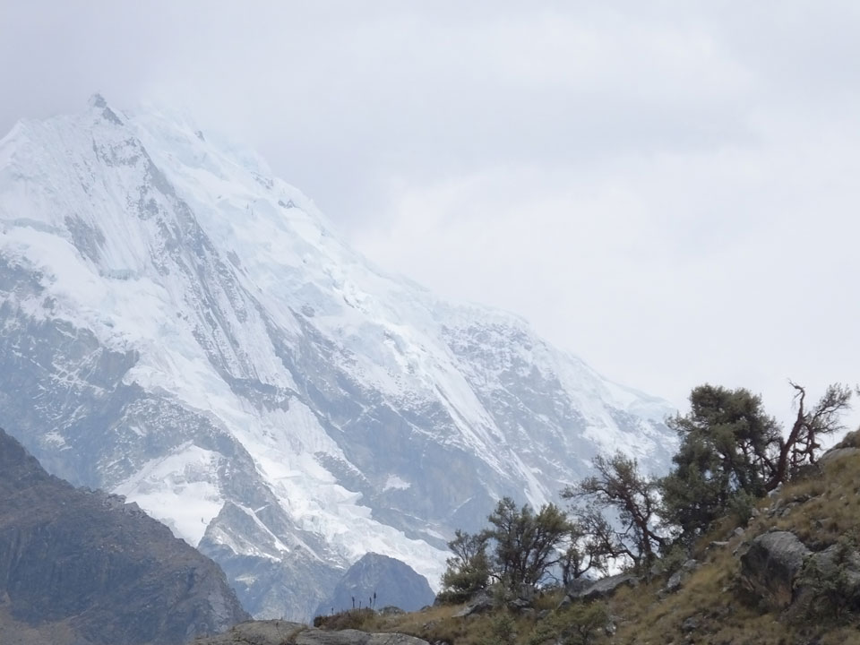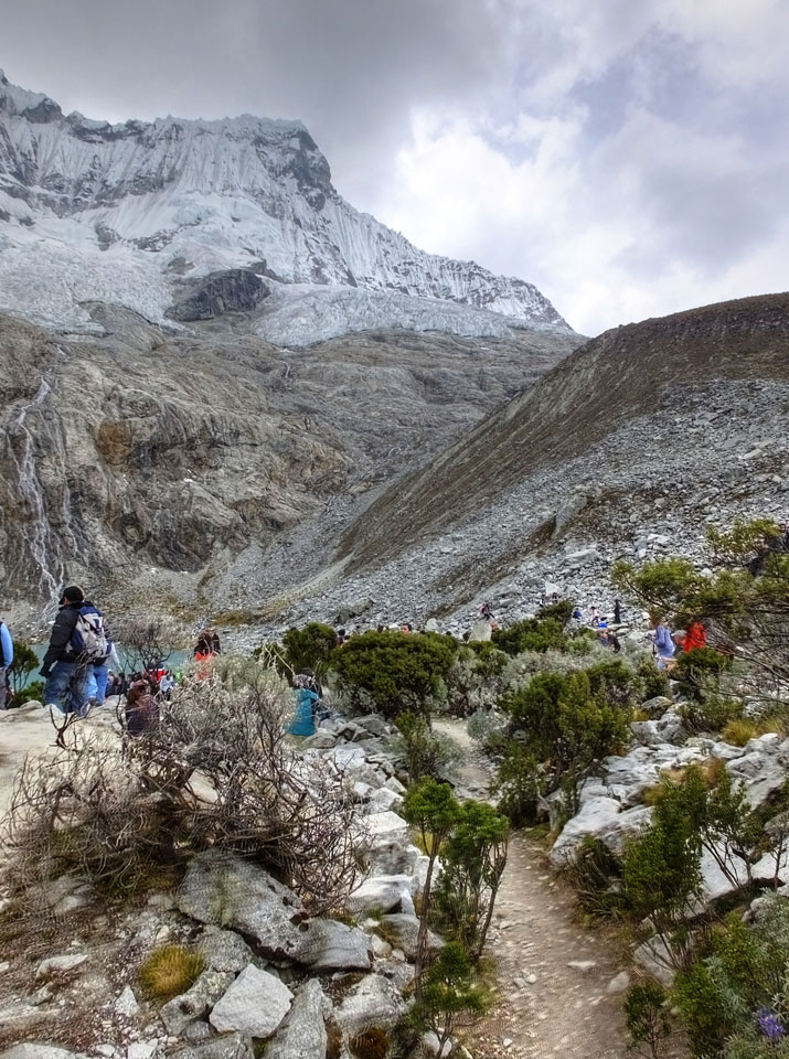 Der Huascan, mit über 6000m der höchste Berg Perus, thronte hinter uns. Ich drehte mich deswegen oft um, weil die Gegend einfach fantastisch aussah. Ringsum Berge, perfektes Wetter und ein gut ausgetretener Weg. Nach einer guten Stunde flachen Pfades, ging es dann bergauf. Vorbei an Wasserfällen ging es immer weiter in die Höhe, was ich doch mit der Puste merkte. Ich ging öfters mal schneller an Leuten vorbei und schloss dabei meinen Mund, versuchte nur über die Nase zu atmen. Ha! Die Rechnung folgte auf dem Fuß, weil ich dann schnell atemlos war. Der Egotrip, Höhenfitness zu faken, gab gute Schwindelanfälle.