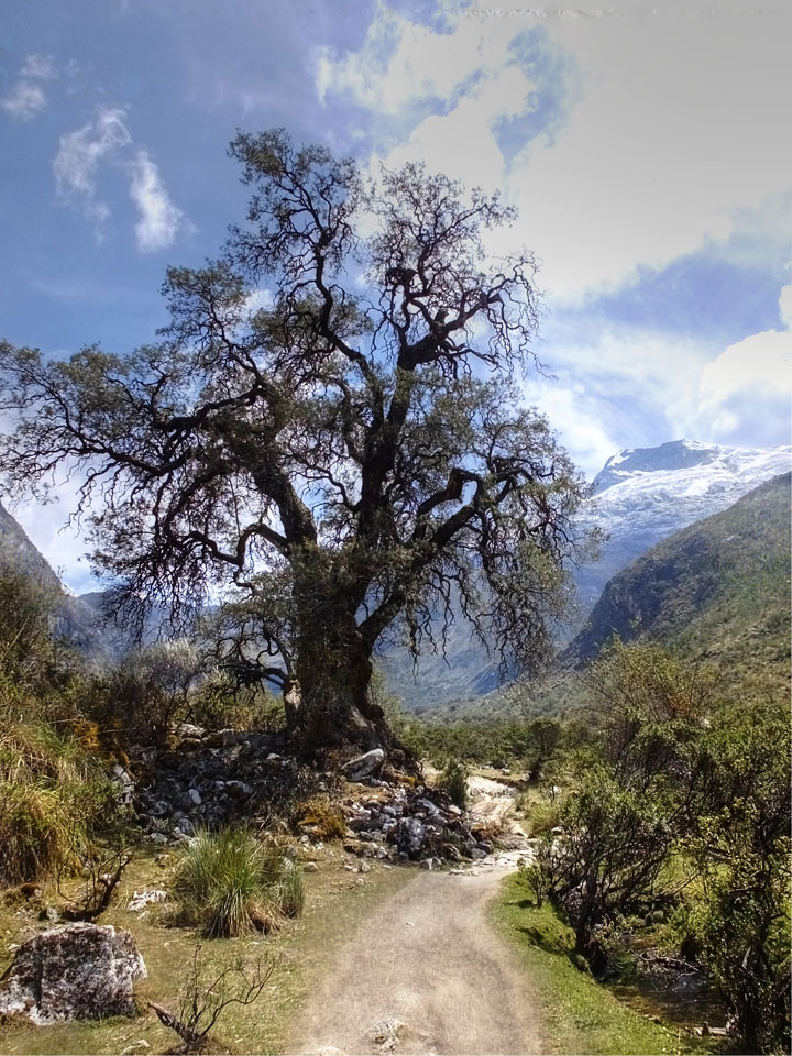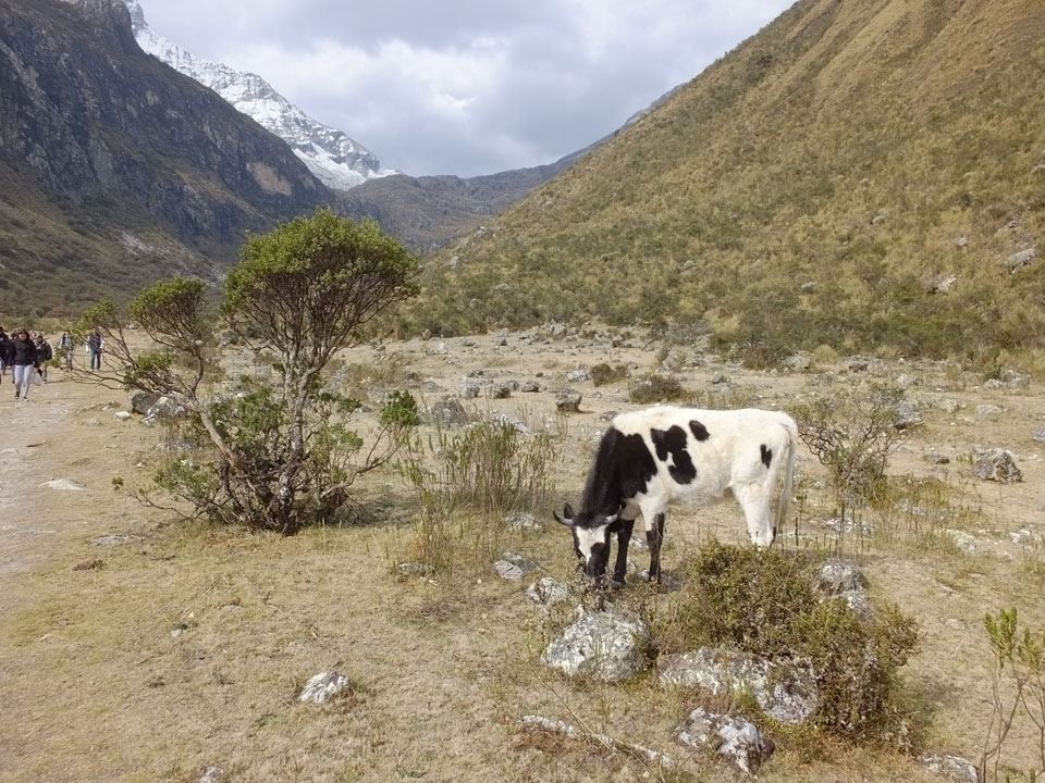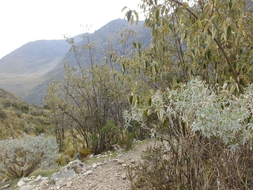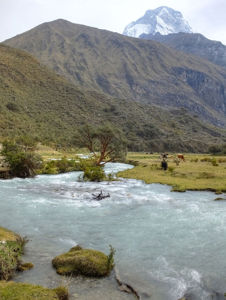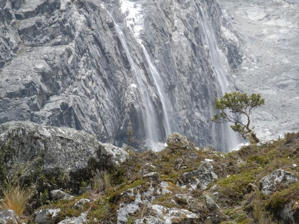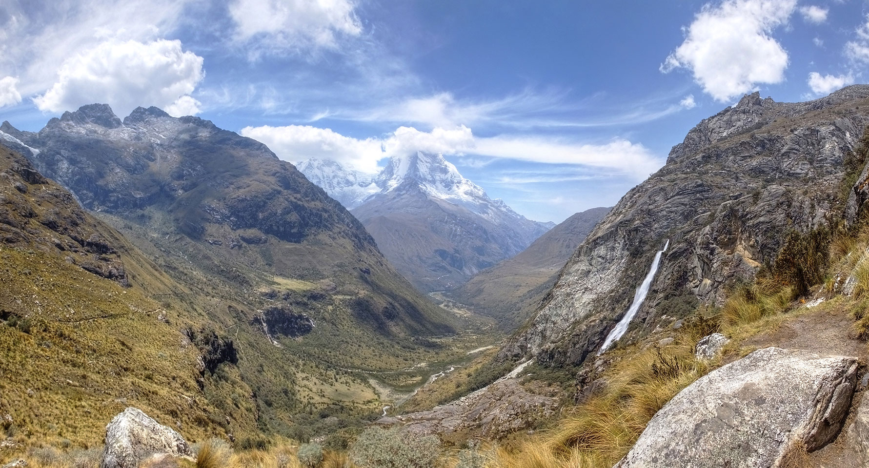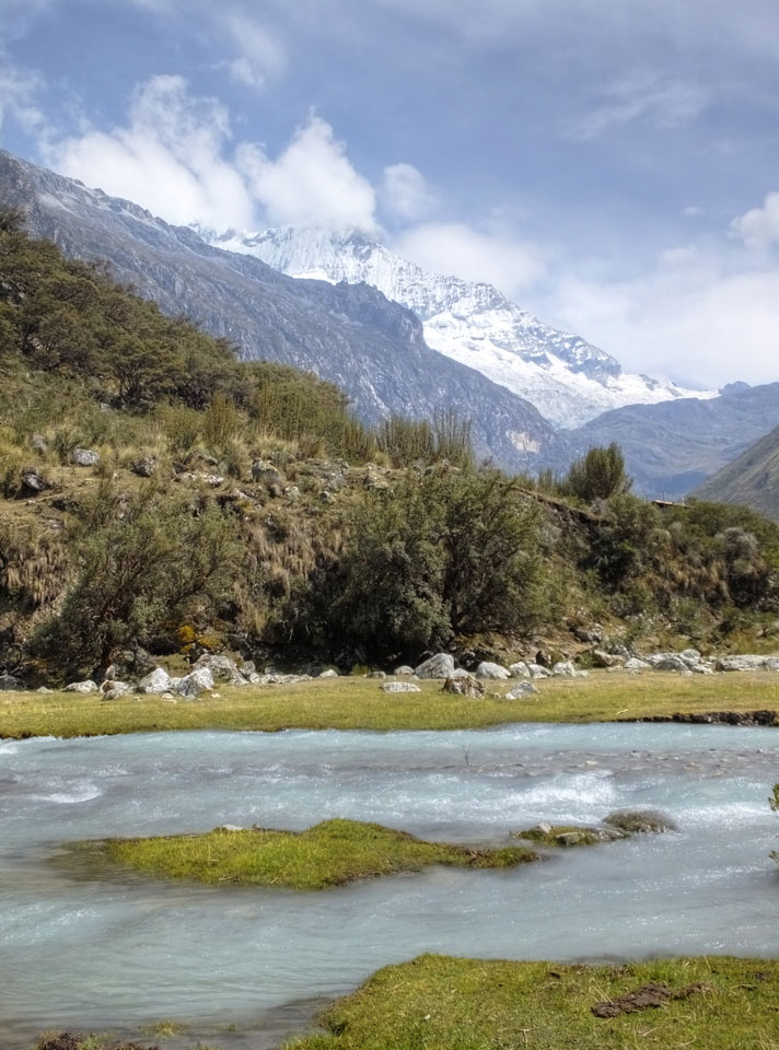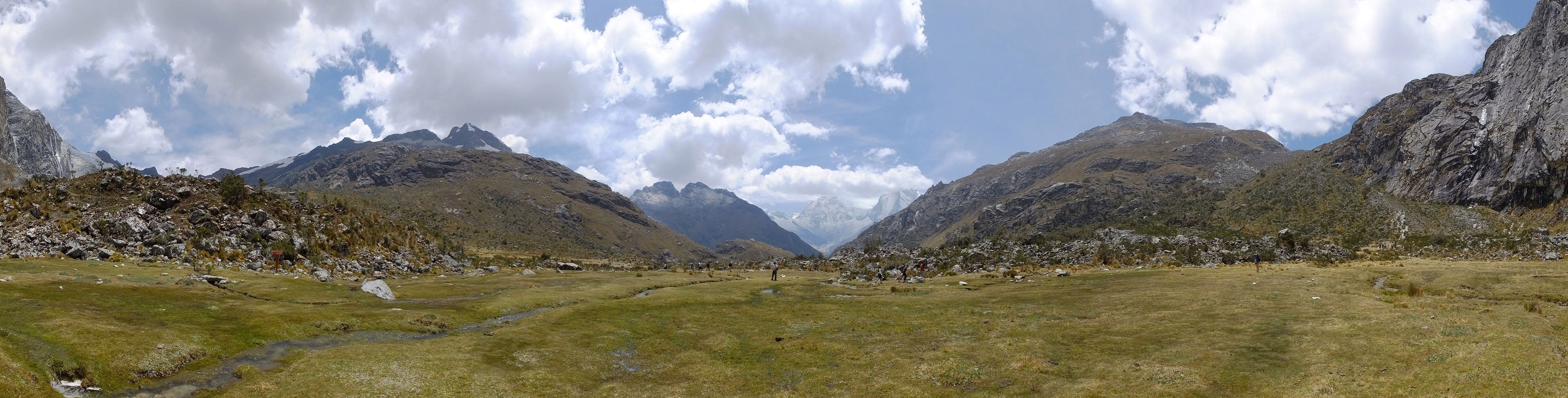 Der Huascan, mit über 6000m der höchste Berg Perus, thronte hinter uns. Ich drehte mich deswegen oft um, weil die Gegend einfach fantastisch aussah. Ringsum Berge, perfektes Wetter und ein gut ausgetretener Weg. Nach einer guten Stunde flachen Pfades, ging es dann bergauf. Vorbei an Wasserfällen ging es immer weiter in die Höhe, was ich doch mit der Puste merkte. Ich ging öfters mal schneller an Leuten vorbei und schloss dabei meinen Mund, versuchte nur über die Nase zu atmen. Ha! Die Rechnung folgte auf dem Fuß, weil ich dann schnell atemlos war. Der Egotrip, Höhenfitness zu faken, gab gute Schwindelanfälle.