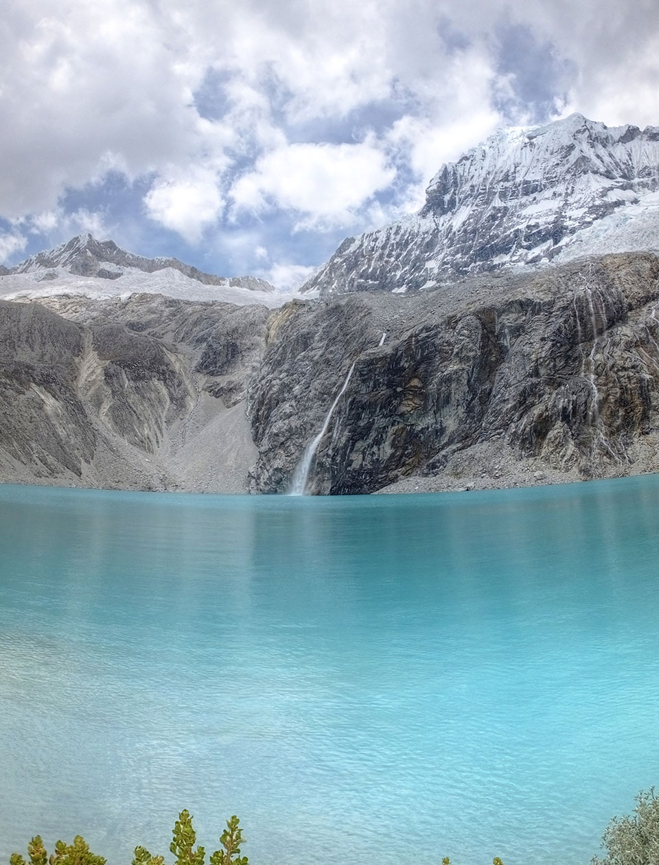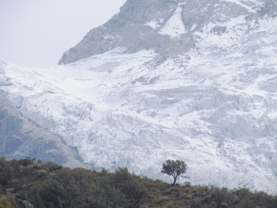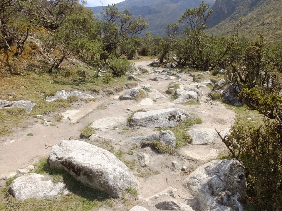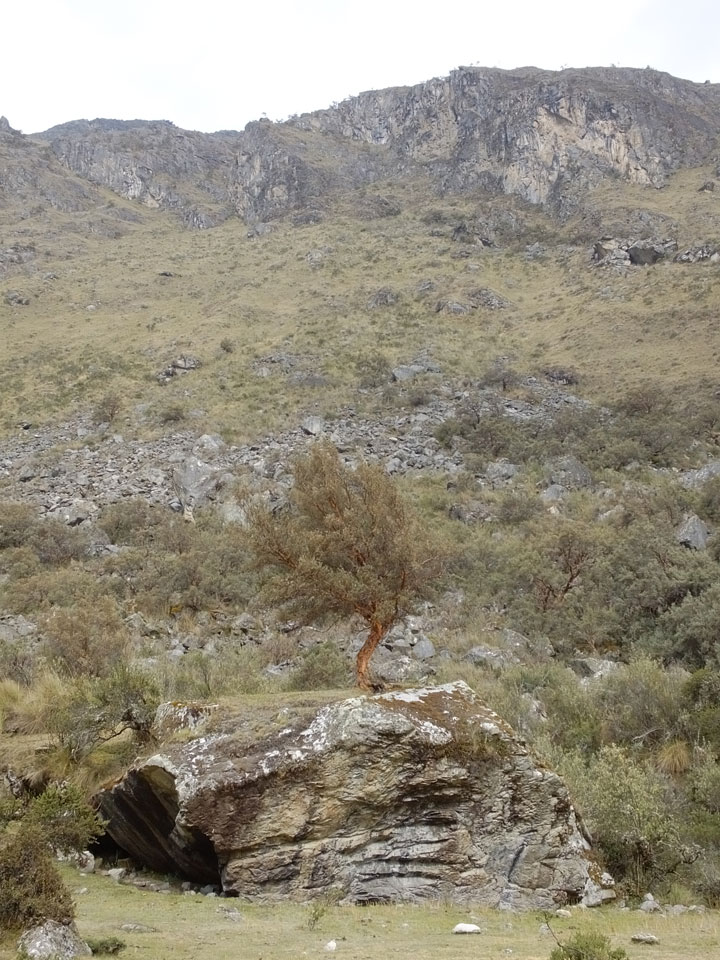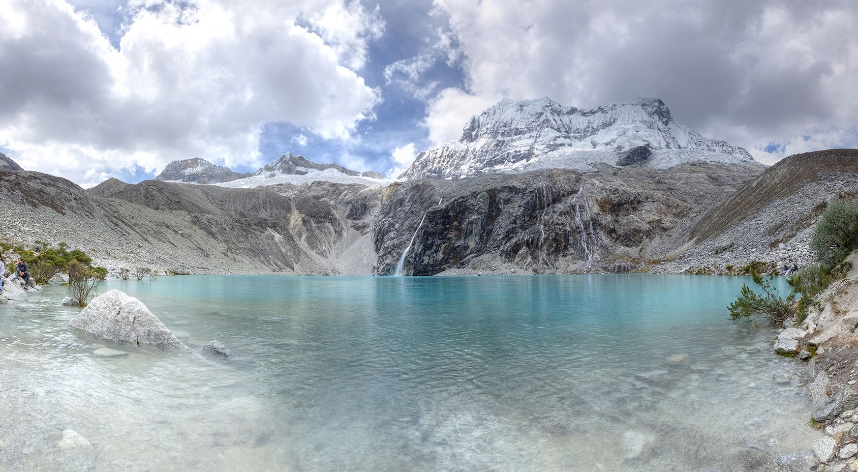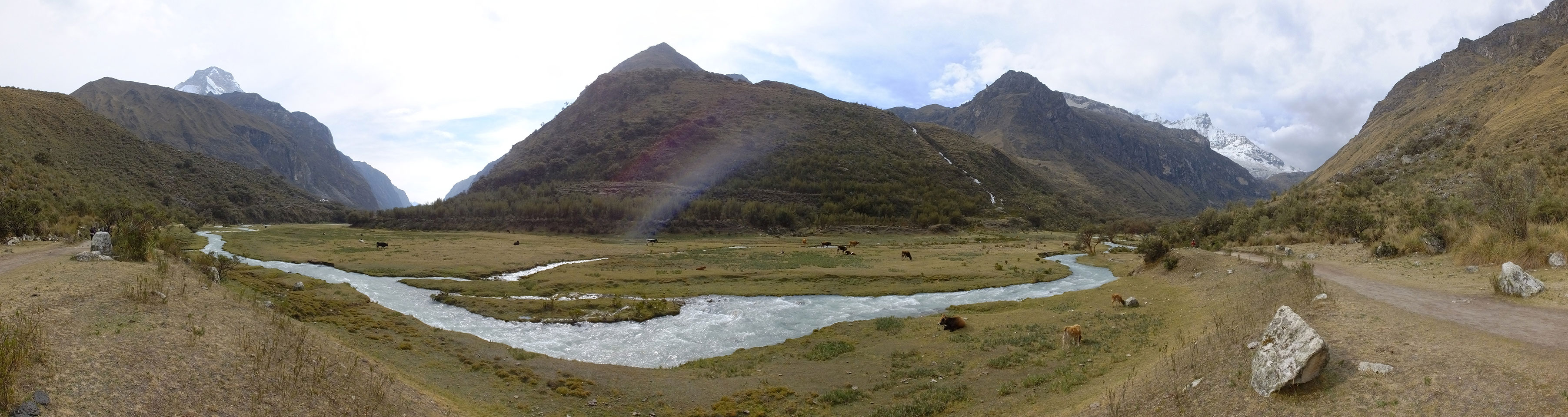 Der Huascan, mit über 6000m der höchste Berg Perus, thronte hinter uns. Ich drehte mich deswegen oft um, weil die Gegend einfach fantastisch aussah. Ringsum Berge, perfektes Wetter und ein gut ausgetretener Weg. Nach einer guten Stunde flachen Pfades, ging es dann bergauf. Vorbei an Wasserfällen ging es immer weiter in die Höhe, was ich doch mit der Puste merkte. Ich ging öfters mal schneller an Leuten vorbei und schloss dabei meinen Mund, versuchte nur über die Nase zu atmen. Ha! Die Rechnung folgte auf dem Fuß, weil ich dann schnell atemlos war. Der Egotrip, Höhenfitness zu faken, gab gute Schwindelanfälle.