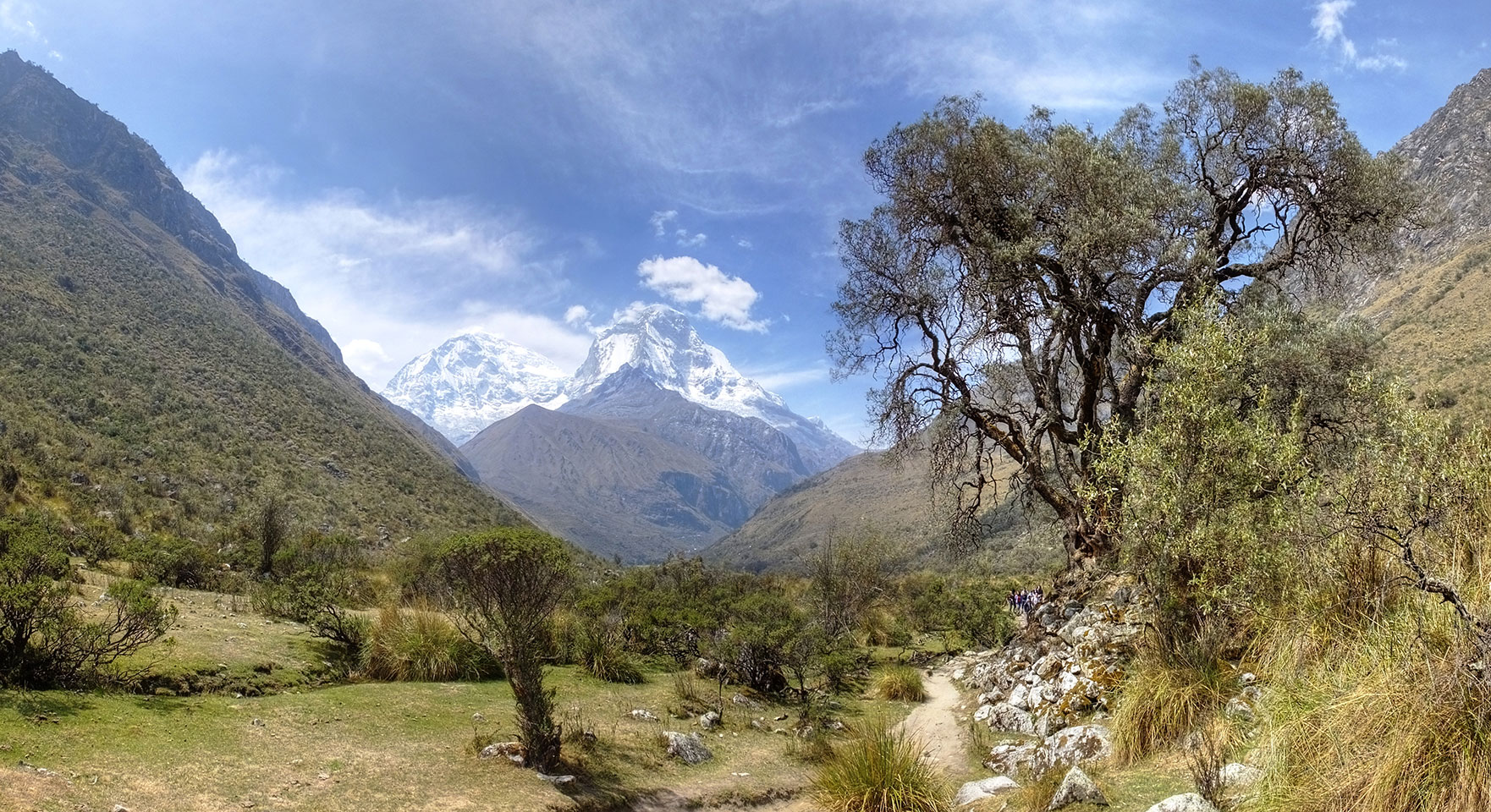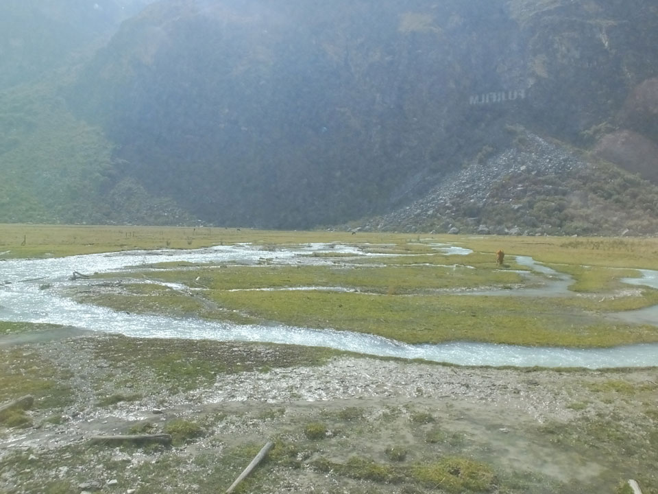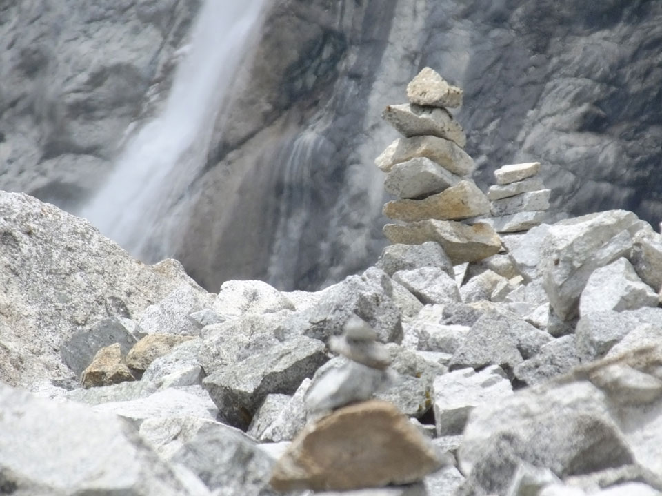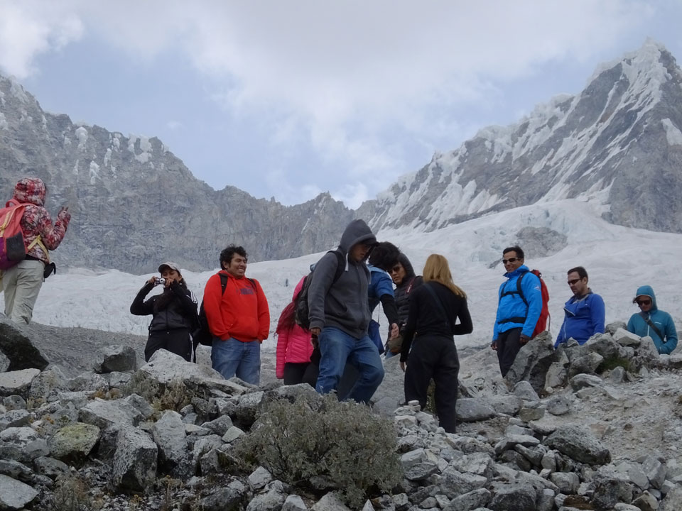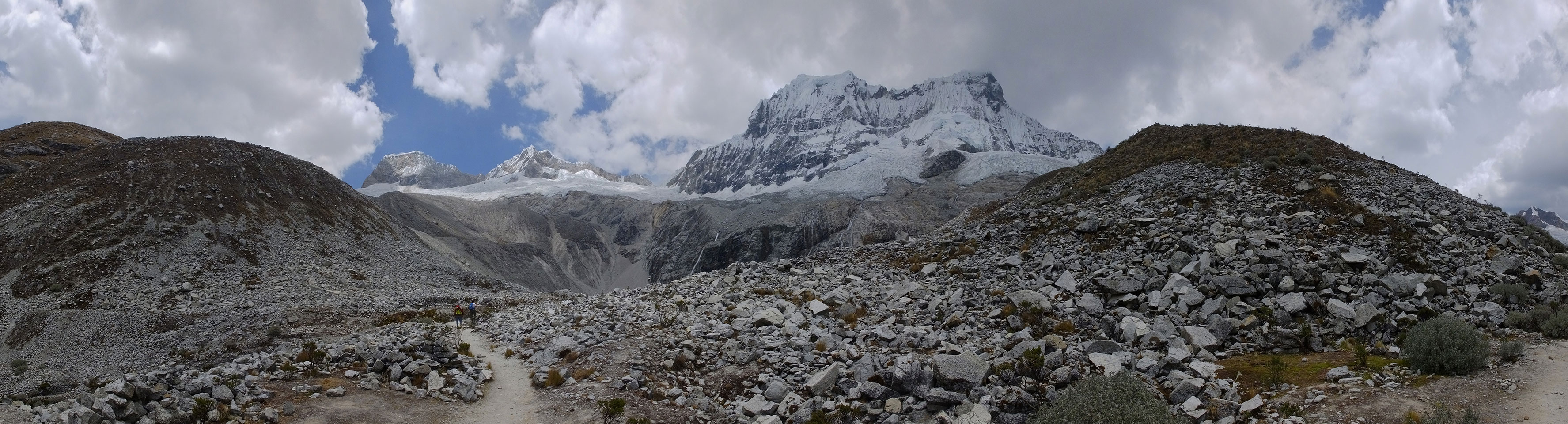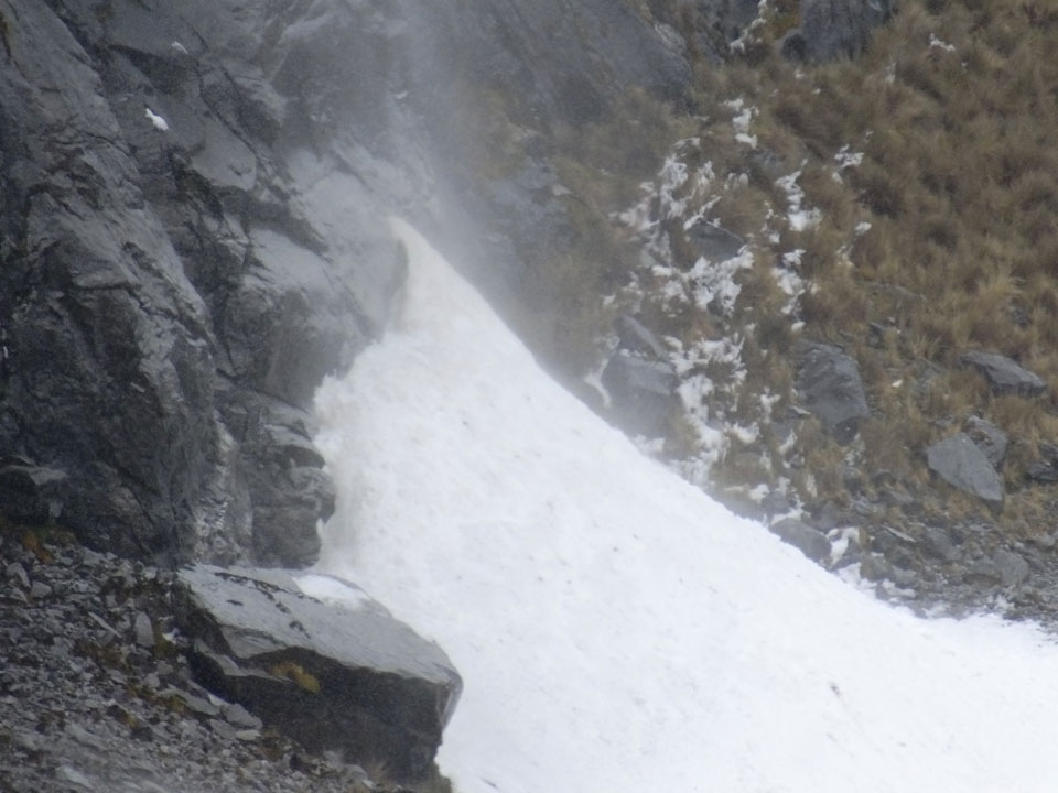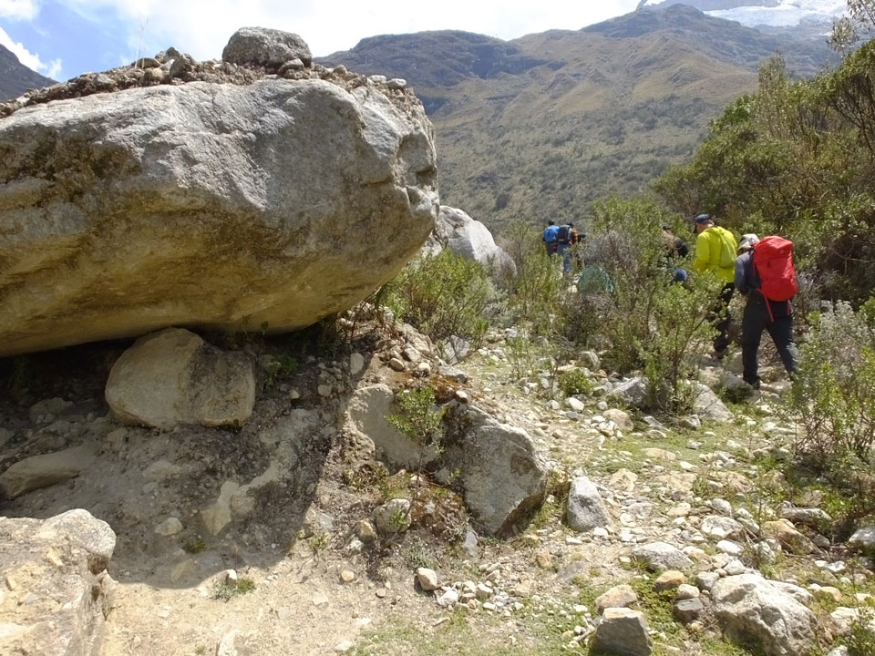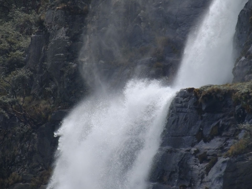 Der Huascan, mit über 6000m der höchste Berg Perus, thronte hinter uns. Ich drehte mich deswegen oft um, weil die Gegend einfach fantastisch aussah. Ringsum Berge, perfektes Wetter und ein gut ausgetretener Weg. Nach einer guten Stunde flachen Pfades, ging es dann bergauf. Vorbei an Wasserfällen ging es immer weiter in die Höhe, was ich doch mit der Puste merkte. Ich ging öfters mal schneller an Leuten vorbei und schloss dabei meinen Mund, versuchte nur über die Nase zu atmen. Ha! Die Rechnung folgte auf dem Fuß, weil ich dann schnell atemlos war. Der Egotrip, Höhenfitness zu faken, gab gute Schwindelanfälle.