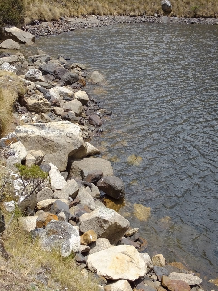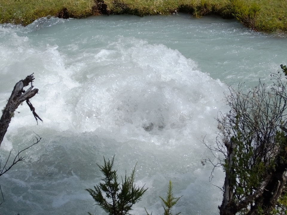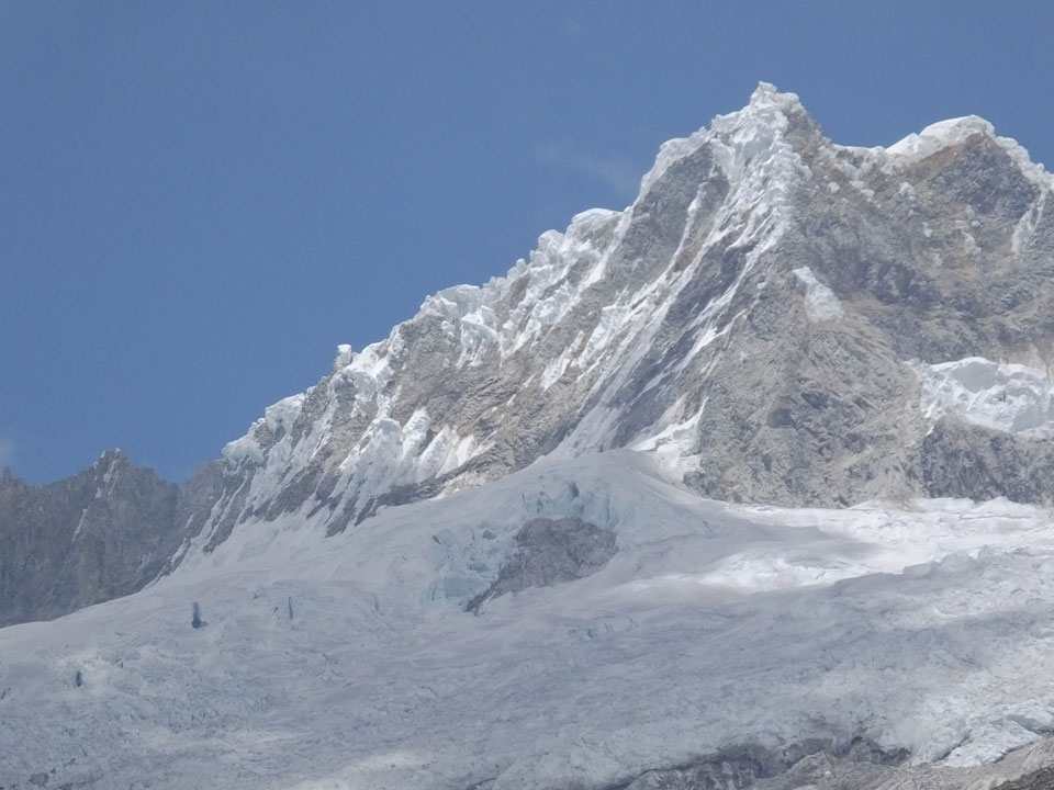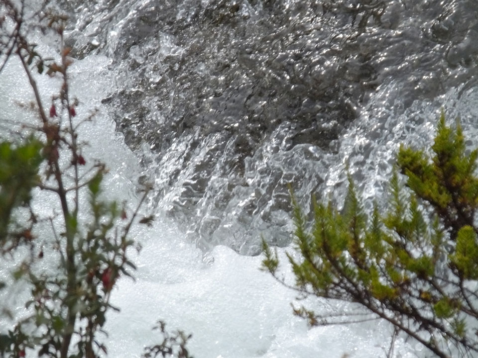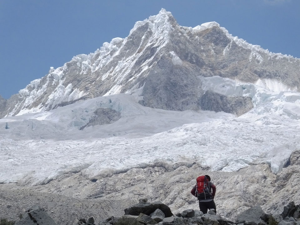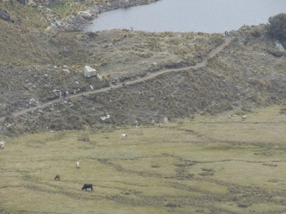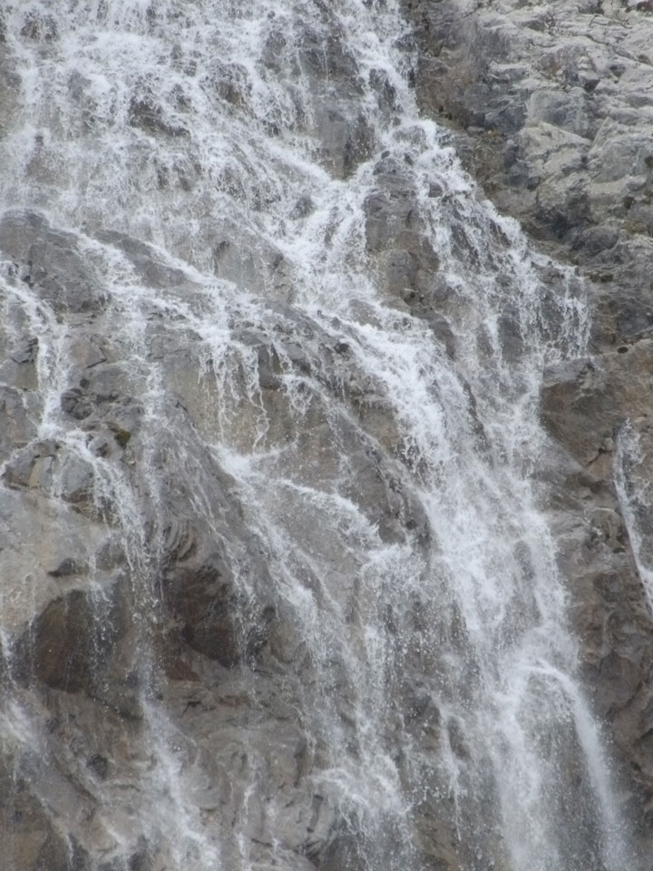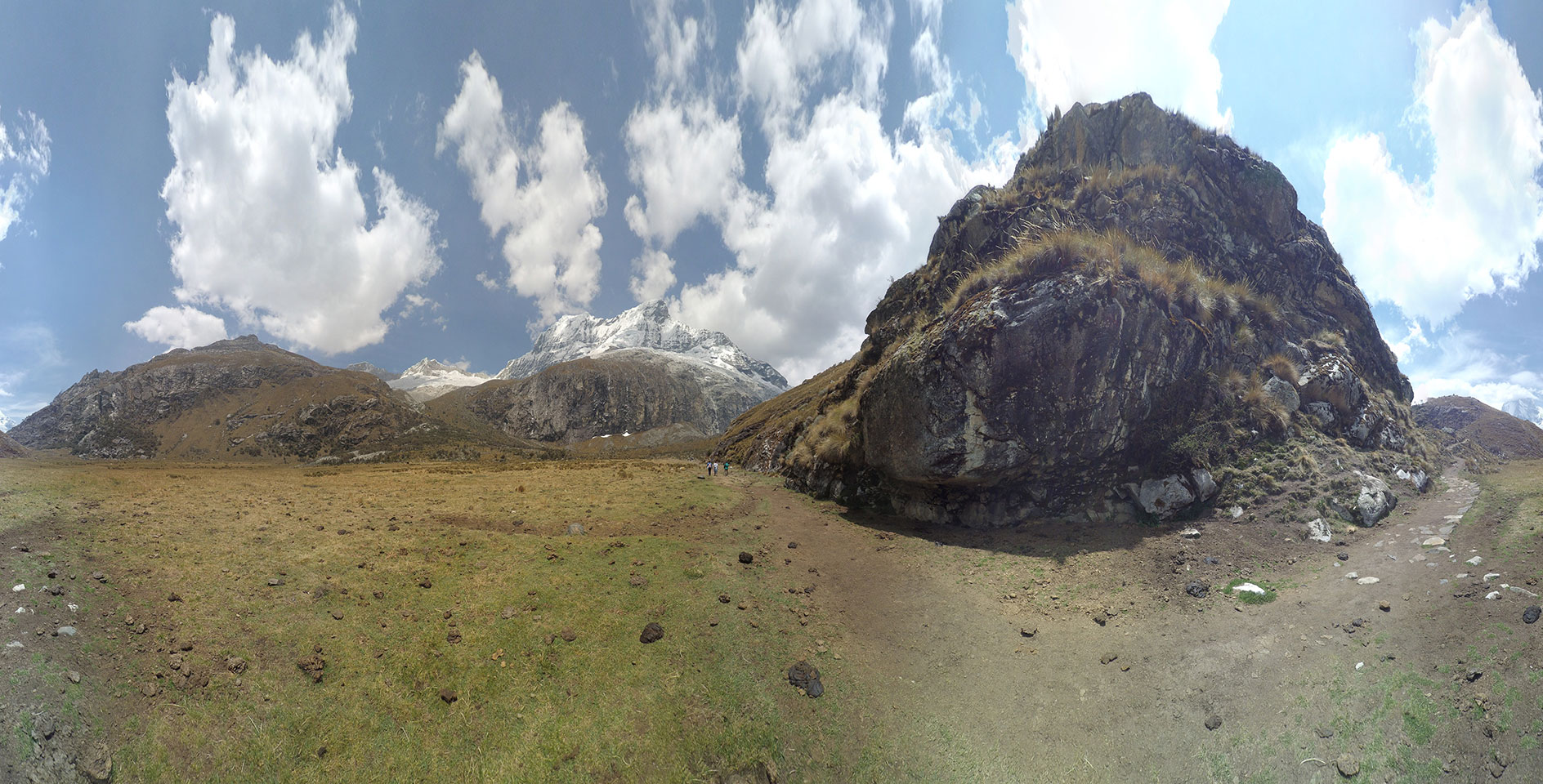 Der Huascan, mit über 6000m der höchste Berg Perus, thronte hinter uns. Ich drehte mich deswegen oft um, weil die Gegend einfach fantastisch aussah. Ringsum Berge, perfektes Wetter und ein gut ausgetretener Weg. Nach einer guten Stunde flachen Pfades, ging es dann bergauf. Vorbei an Wasserfällen ging es immer weiter in die Höhe, was ich doch mit der Puste merkte. Ich ging öfters mal schneller an Leuten vorbei und schloss dabei meinen Mund, versuchte nur über die Nase zu atmen. Ha! Die Rechnung folgte auf dem Fuß, weil ich dann schnell atemlos war. Der Egotrip, Höhenfitness zu faken, gab gute Schwindelanfälle.