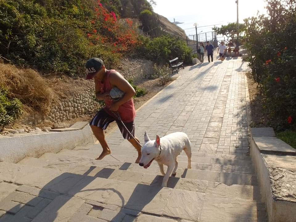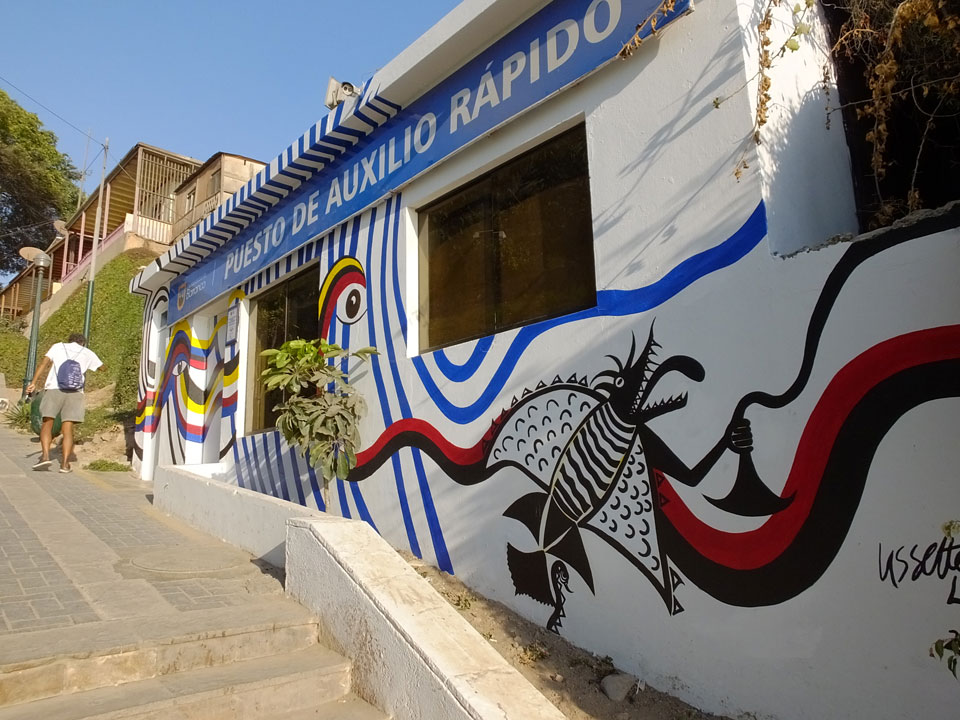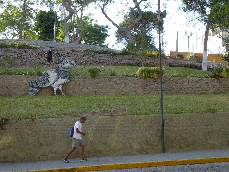 Ich ging was essen, wollte eigentlich nochmals Ceviche essen. Später dann. So nahm ich ein Taxi mit dem letzten Klimpergeld Richtung Baranco. Mit um die 6 Soles kam ich nicht ganz so weit aber das war OK. Ich spazierte herum und erinnerte mich, dass das Hostel vielleicht falsch verstand mein Taxi um 5 zu bestellen. Ich rief per Google Hangout an. Da der Anruf über Skype geroutet wird, gibt es wohl auch deshalb eine irre lange Verzögerung. Sie hatten mich aber richtig verstanden, also weiter.