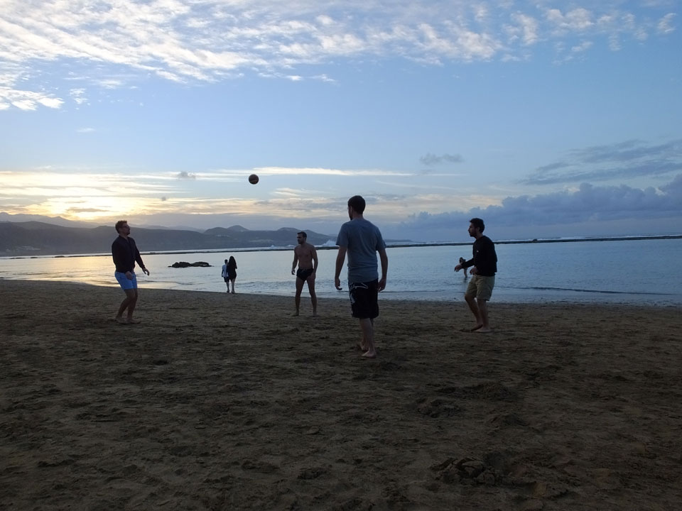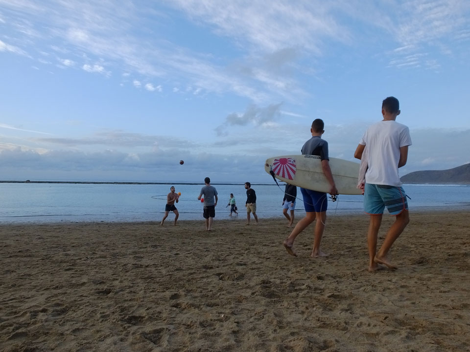 Am Strand las ich vor mich hin und hatte eigentlich den Plan, danach mal etwas am Wasser zu laufen. Ein paar Italiener spielten Volley mit ’nem Ball und fragten mich, ob ich ein paar Photos machen könnte. Klar, gerne.
