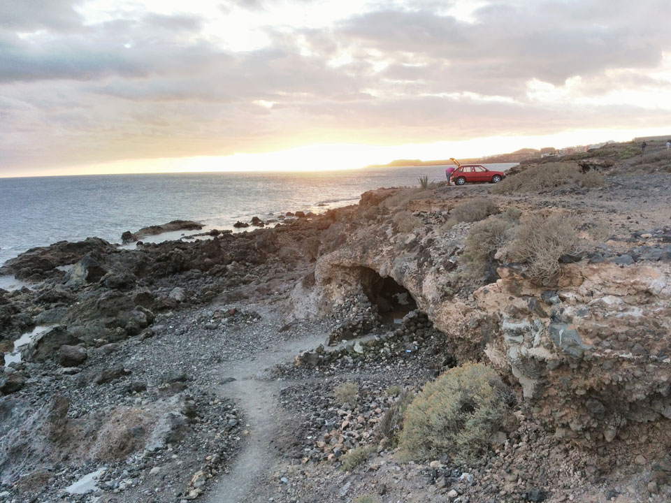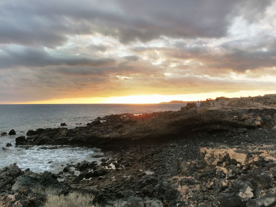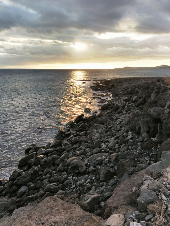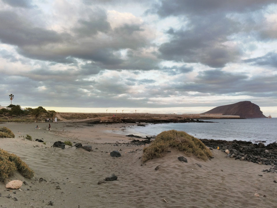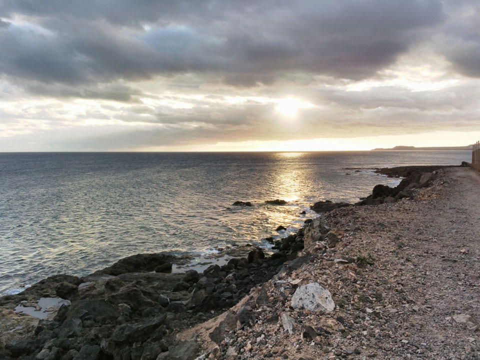 Zum Abend ging ich eine Runde joggen. Erst Richtung El Medano, dann zum Strand und am Wasser entlang. Die Küste hat schroffe Steine, wird schwierig, da zu baden. Der Sonnenuntergang war hübsch und zurück im Hostel machte ich noch etwas mit den Gewichten. Fitness ist eine permanente Herausforderung, die ich jetzt eine Weile schleifen ließ.