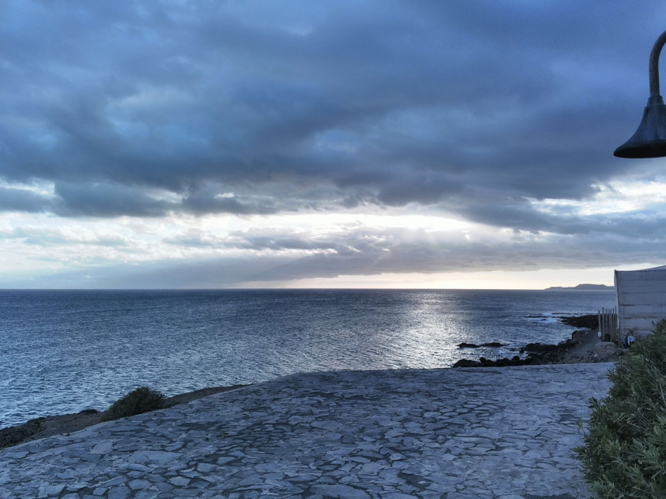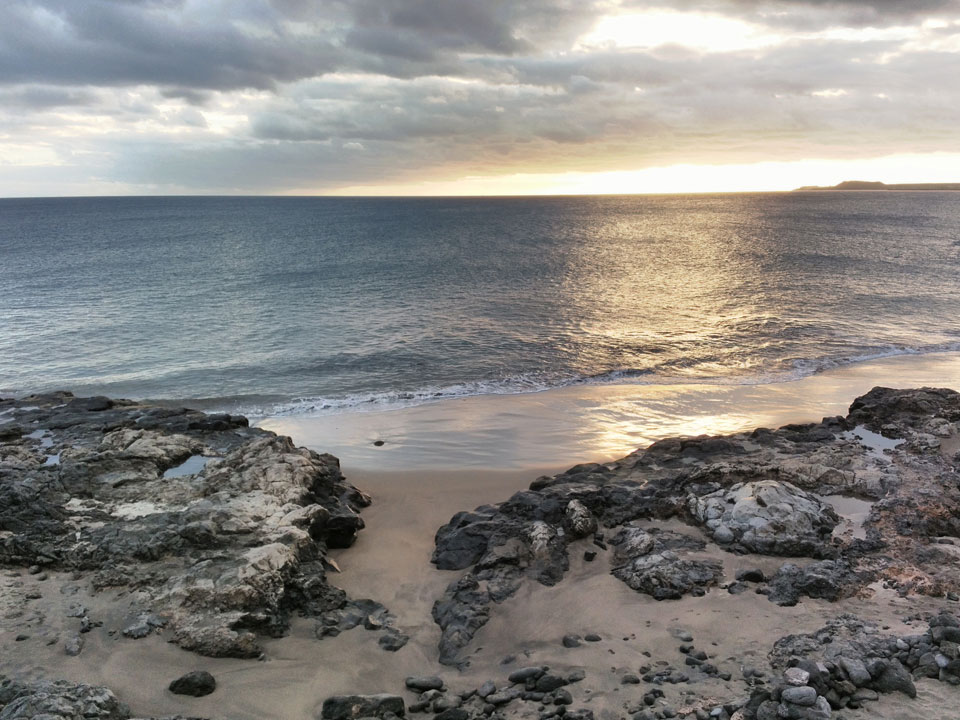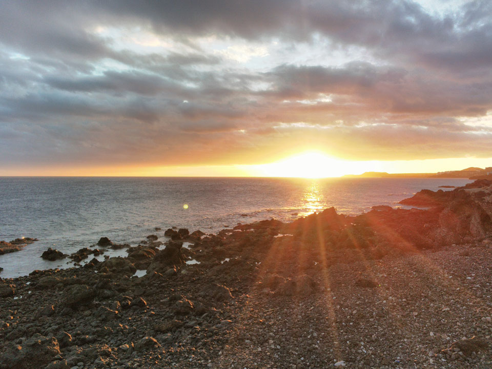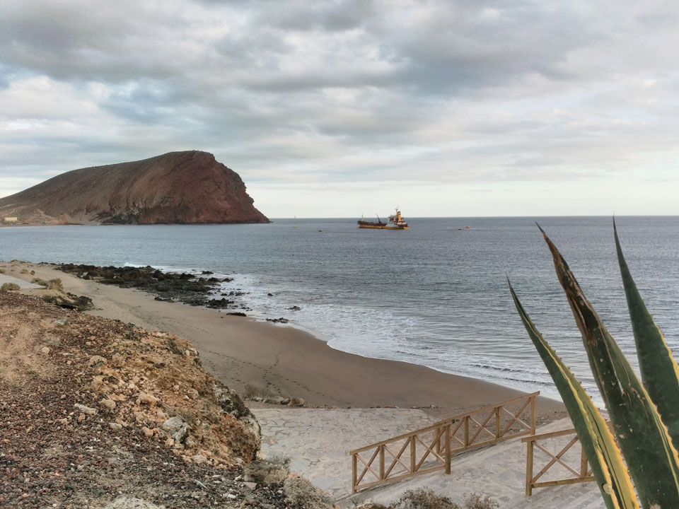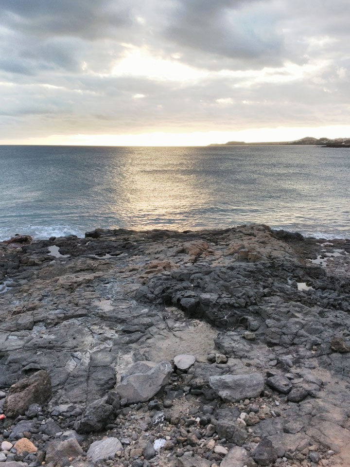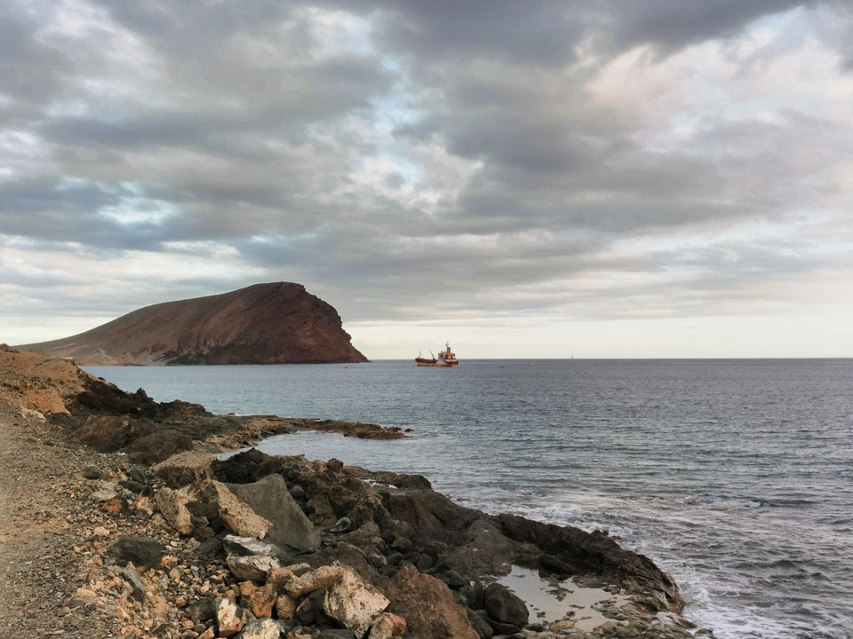 Zum Abend ging ich eine Runde joggen. Erst Richtung El Medano, dann zum Strand und am Wasser entlang. Die Küste hat schroffe Steine, wird schwierig, da zu baden. Der Sonnenuntergang war hübsch und zurück im Hostel machte ich noch etwas mit den Gewichten. Fitness ist eine permanente Herausforderung, die ich jetzt eine Weile schleifen ließ.