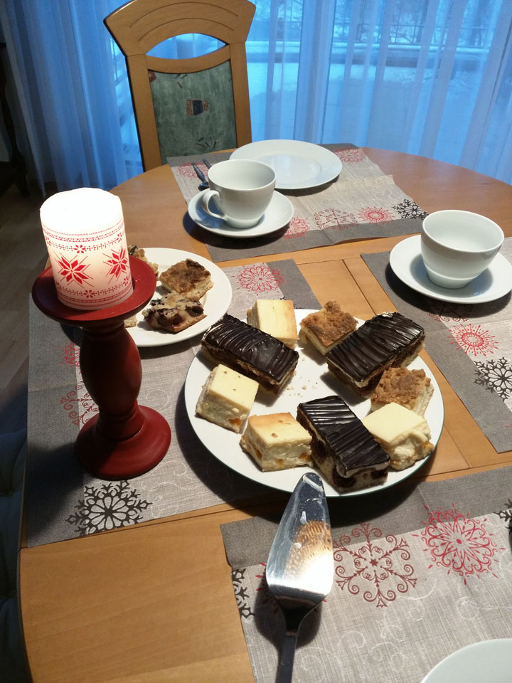 Bei Kaffee und Kuchen erzählte ich viel. Der Kurztrip nach den Kanaraen brachte ja keine Stories, der kommende nach Indien soll am besten auch normal über die Bühne gehen. Nach einer Stunde mit Oma und Papa legten wir dann los. Inzwischen stärkeres Schneetreiben.