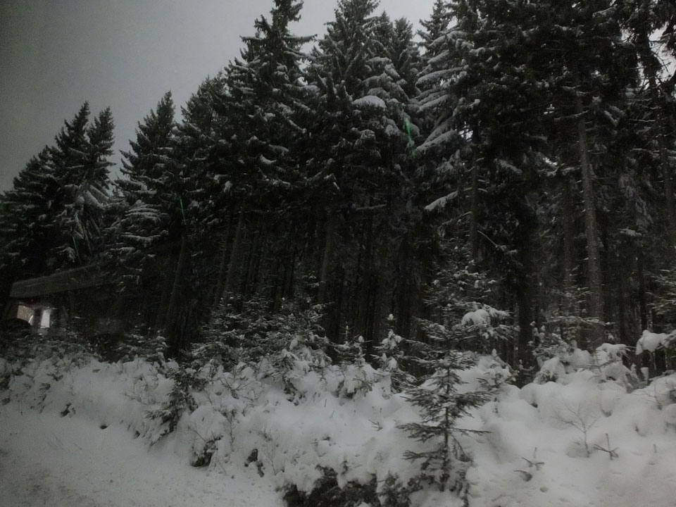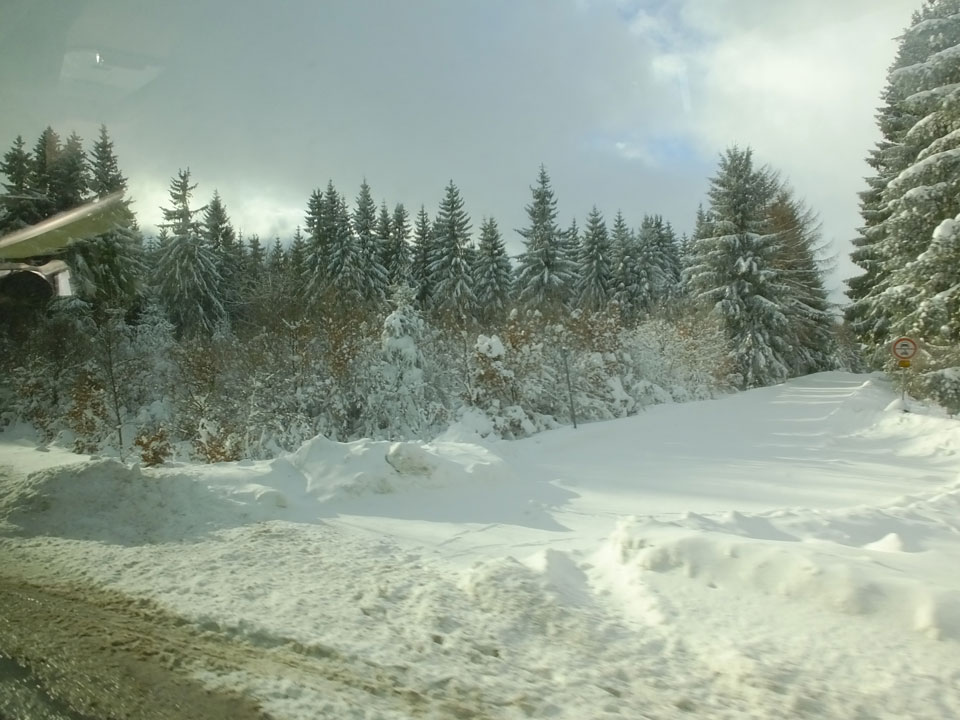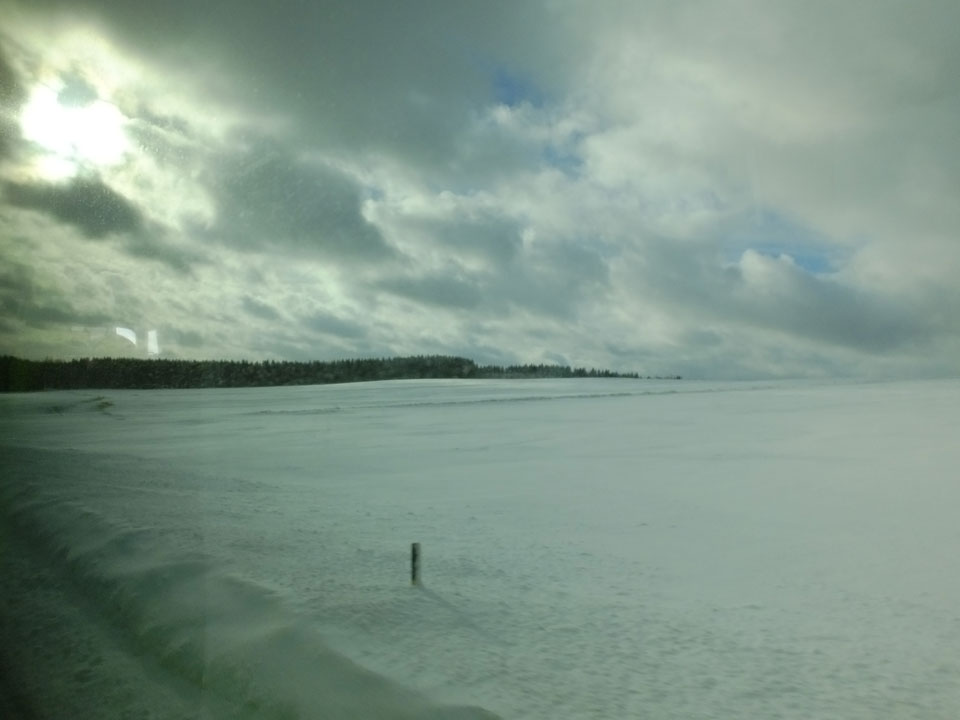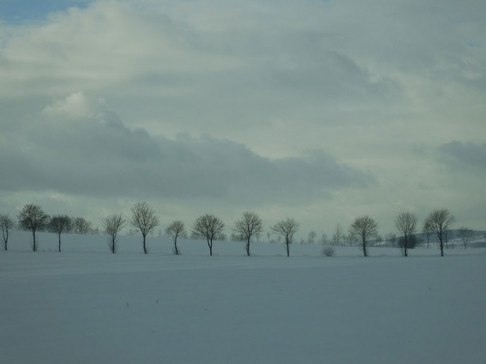 Mit mir stiegen nur zwei weitere Personen ein. Da verzichtete der Fahrer auf den Ticket-Scan. Es ging in die Berge durch eine schöne Winterlandschaft. Da holte ich sogar mal die Fuji raus.