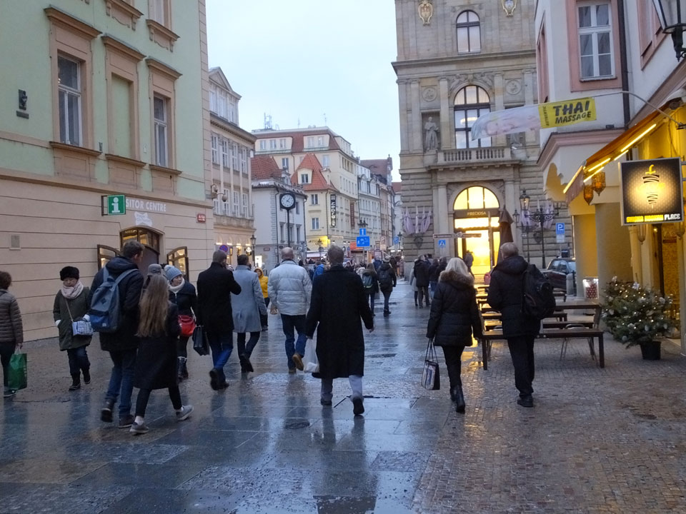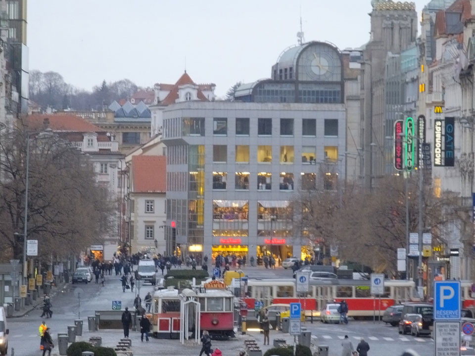 In Prag dann nachmittags. Ich holte erst mal Cash – 700 CZK. Einen Debreciner Hot Dog für etwas Kleingeld. Dann mit der Metro nach Muzeum. Mein Zimmer war OK. Geräumig und etwas ungeheizt im Prague-1 Hostel. Internet war schnell, hatte jedoch alle Ports außer 80 blockiert. Nichts also mit SSH oder FTP. Ich muss da doch mal wieder eine private Proxy betreiben, wie einst in Budapest.