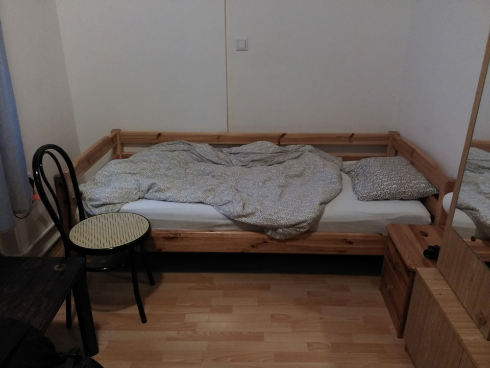 Das Zimmer hier in Prag war mit einem Wasserkocher ausgestattet. Kaffee gab’s auch und so hatte ich ein schnelles Müsliriegel-Frühstück im Zimmer, bevor ich mich auf den Weg zum Flughafen machte.
