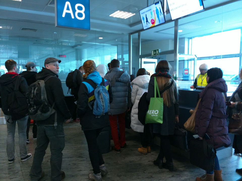 Auf dem Flughafen hatte ich viel Zeit. Es standen auch früh schon viele Leute an. Meinen Rucksack sollte ich in Kiev bekommen.