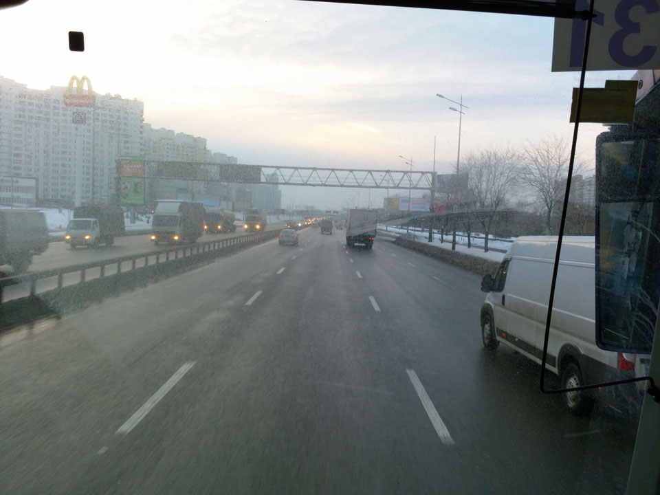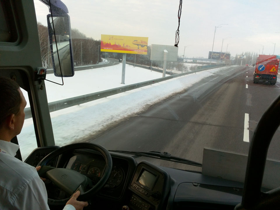 In Kiev dann lief alles gut. Ich fand den Airport Bus, der jedoch statt Bahnhof nur zur Metro fährt. Das Ticket kam 100 UAH, die ich jedoch nicht mehr zusammen bekam. Ich musste also Geld abheben – 1500 UAH. Das Kassierer-Mädel fand mich da noch, der Bus wartete und auf ging die Fahrt.