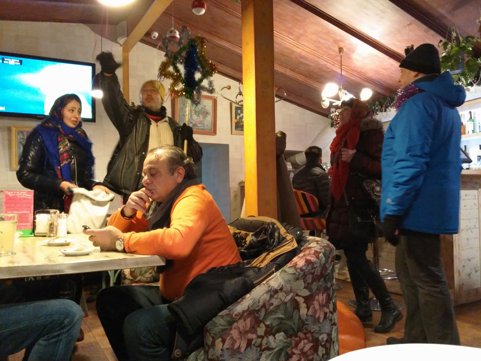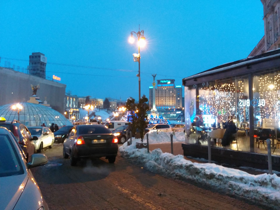 Ich bestellte ein Taxi für 500 UAH für 3:30. Das Zimmer war klein aber OK. Auf Balkon hätte ich bei dem kalten Wetter verzichten können. Ich hatte eine Verabredung mit einem Kumpel zum Abendessen. Vor über einem Jahr das letzte Mal gesehen, gab’s mal ein Update. Wir gingen in’s Borschtsch – ein Popup Restaurant beim Heaven, an dem ich heute schon vorbei gelaufen war. Das Essen war gut, vor allem günstig. Ich hatte ein Bier – er 3 und mit meinem Steak + seinem Gericht kamen gerade mal um die €21 zusammen. Ich erfuhr, dass das Social Casino Business inzwischen läuft. Reisen nach Macau / Hongkong waren auch drin. Ein paar Sänger plumpsten mal in die Gaststätte und sangen zum orthodoxen neuen Jahr. Ich wurde ein paar Hrivna und vor allem Münzen als Spenden los. Ich zahlte das Essen wieder, wie vor 1½ Jahren – ist ja Geschäftsreise.