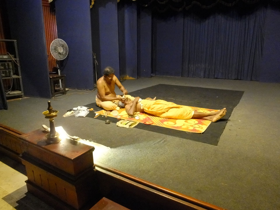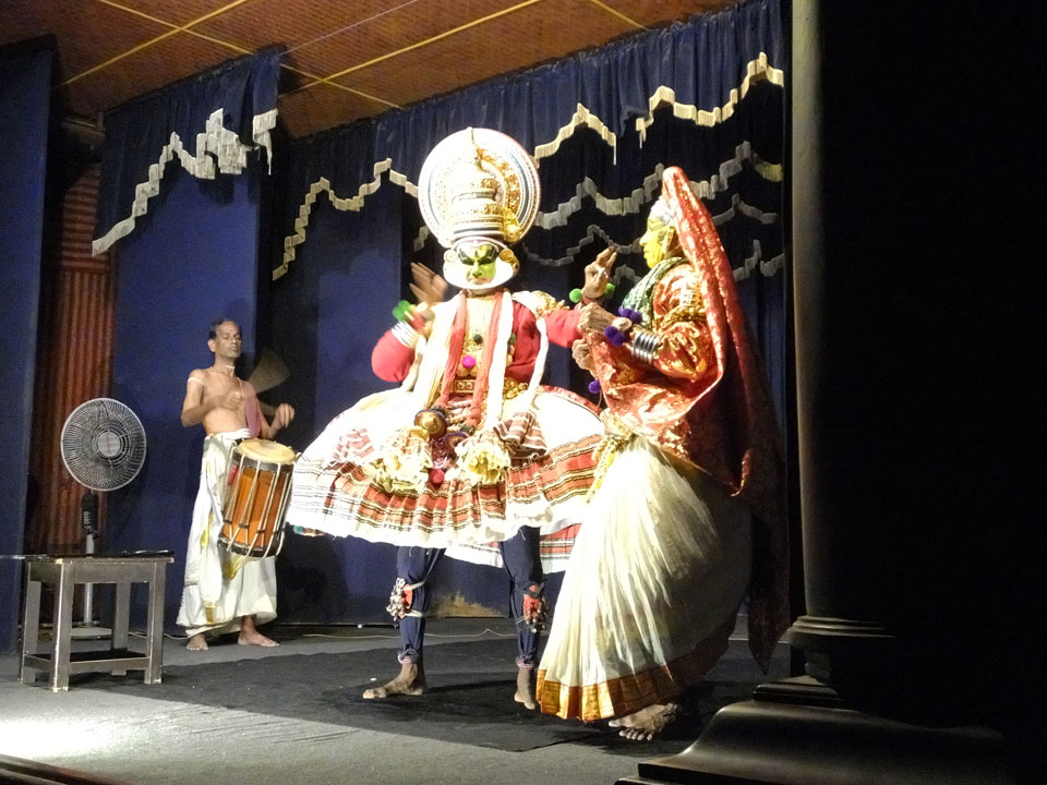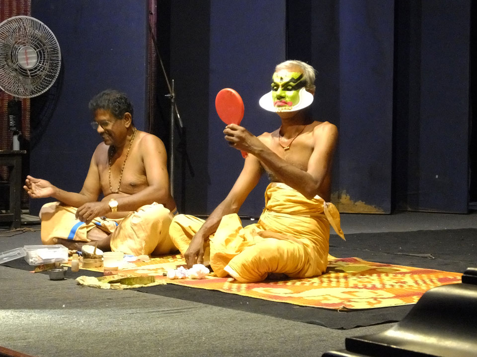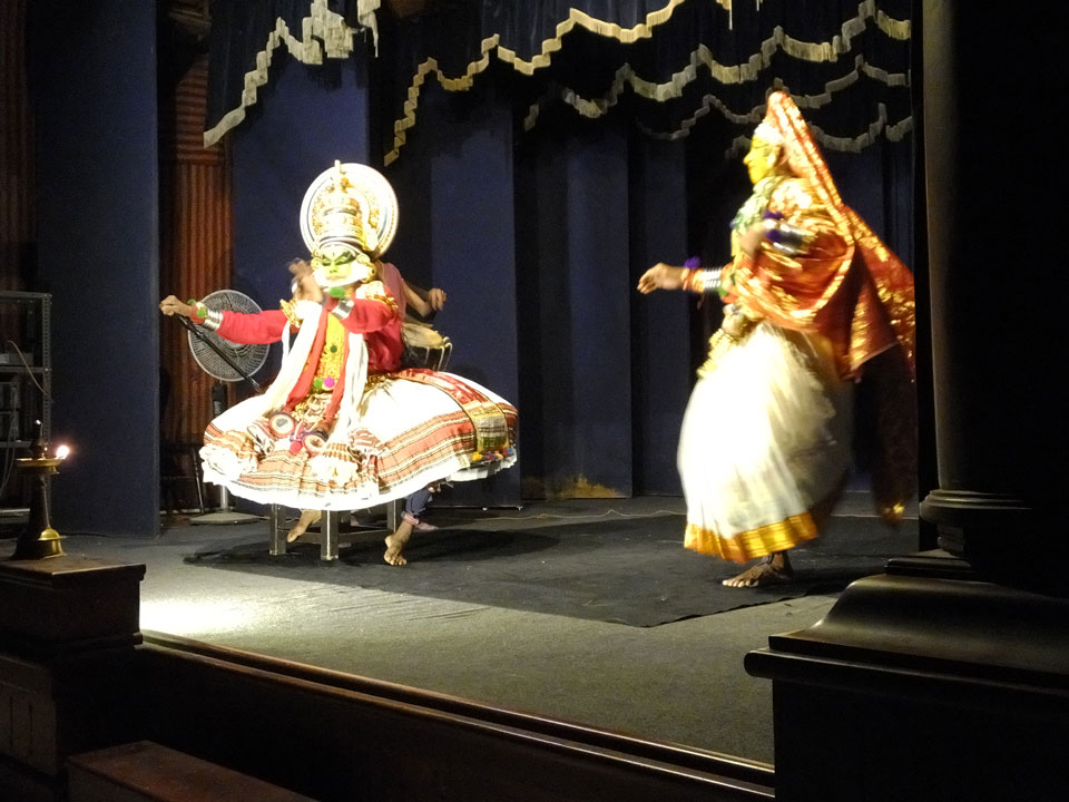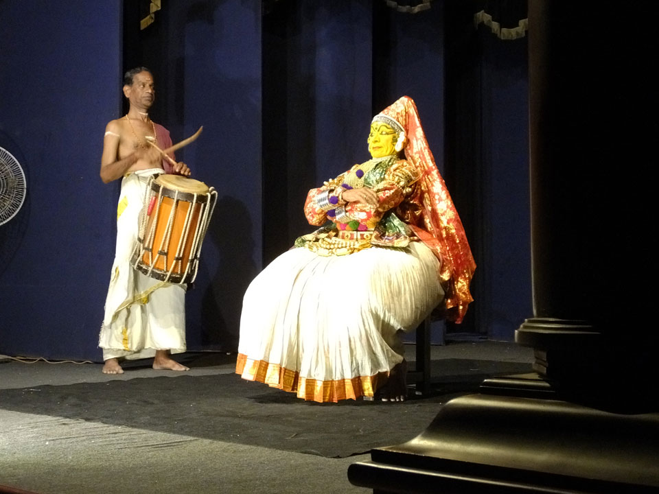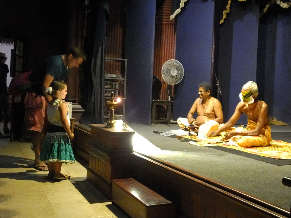Das Greenix Village ist ene Art touristisches Kulturzentrum. Da gab’s ein italienisches Restaurant sowie diverse Räume, wie auch den für die Theater-Veranstaltung. Ich kaufte mein Ticket. Auch hier kein Wechselngeld auf 2000, dafür aber ein VISA-Kartengerät. Die Photo-Erlaubnis schlug mit weiteren 50 Rupees zu Buche, sodass 400 (5,50 EUR) von meinem Vermögen abgezogen wurden.
