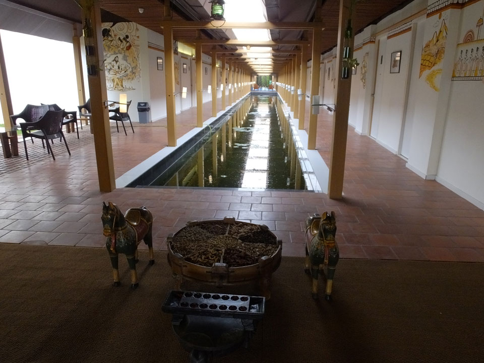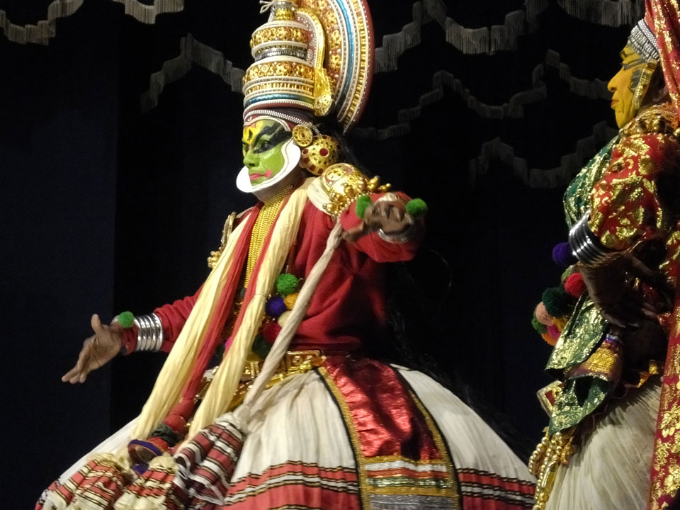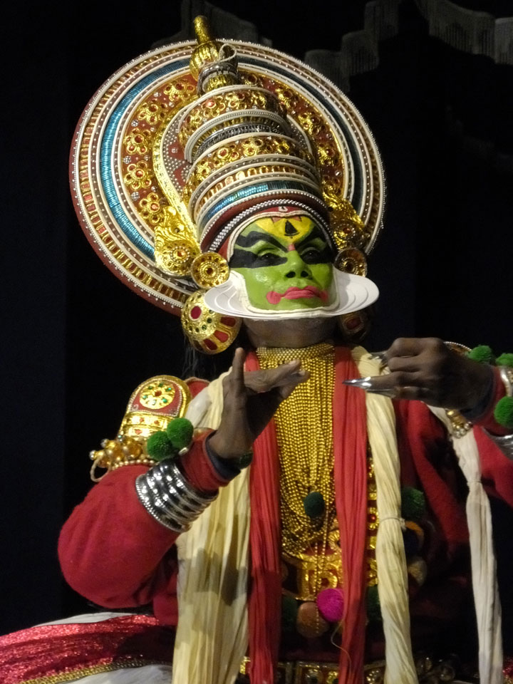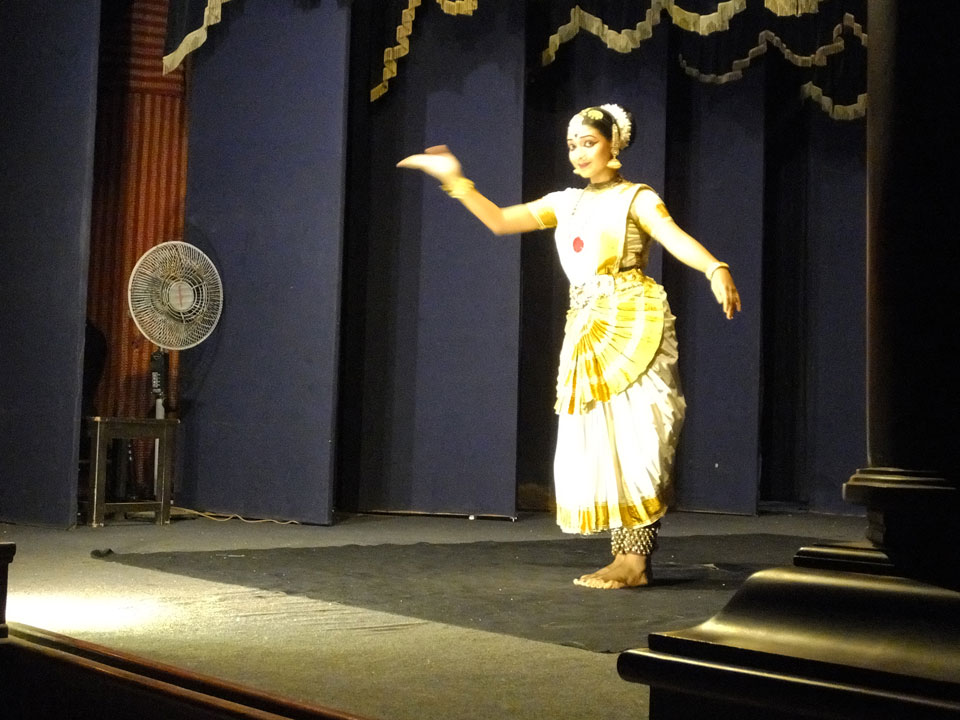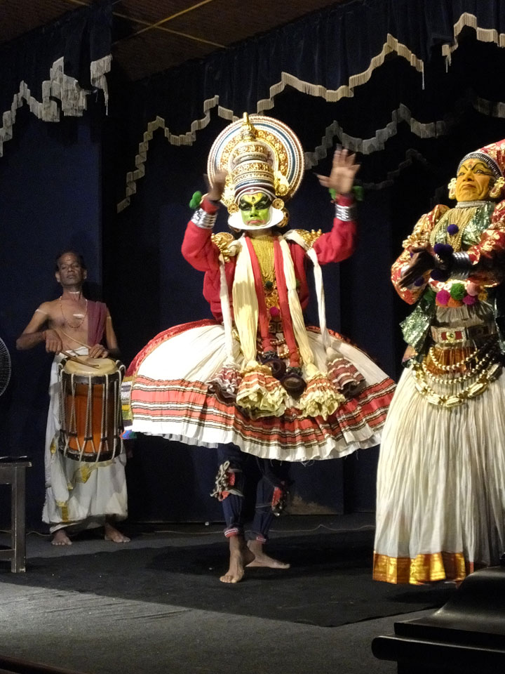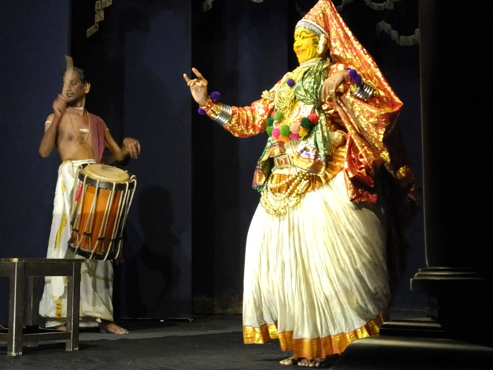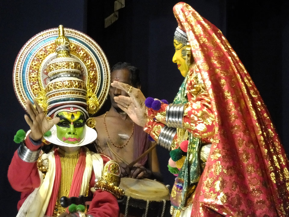 Das Greenix Village ist ene Art touristisches Kulturzentrum. Da gab’s ein italienisches Restaurant sowie diverse Räume, wie auch den für die Theater-Veranstaltung. Ich kaufte mein Ticket. Auch hier kein Wechselngeld auf 2000, dafür aber ein VISA-Kartengerät. Die Photo-Erlaubnis schlug mit weiteren 50 Rupees zu Buche, sodass 400 (5,50 EUR) von meinem Vermögen abgezogen wurden.