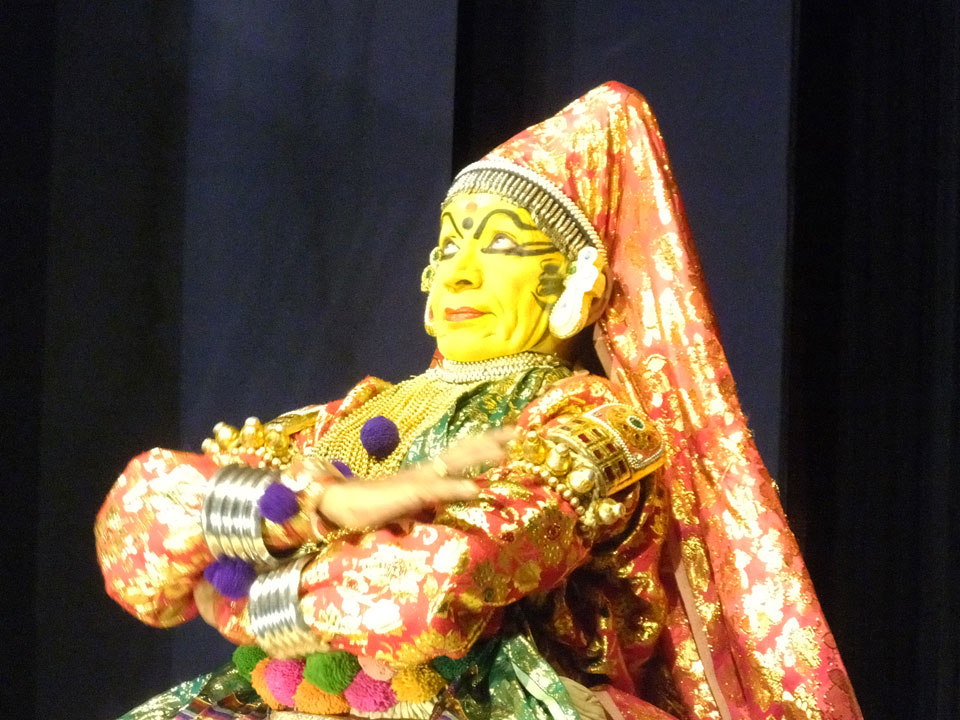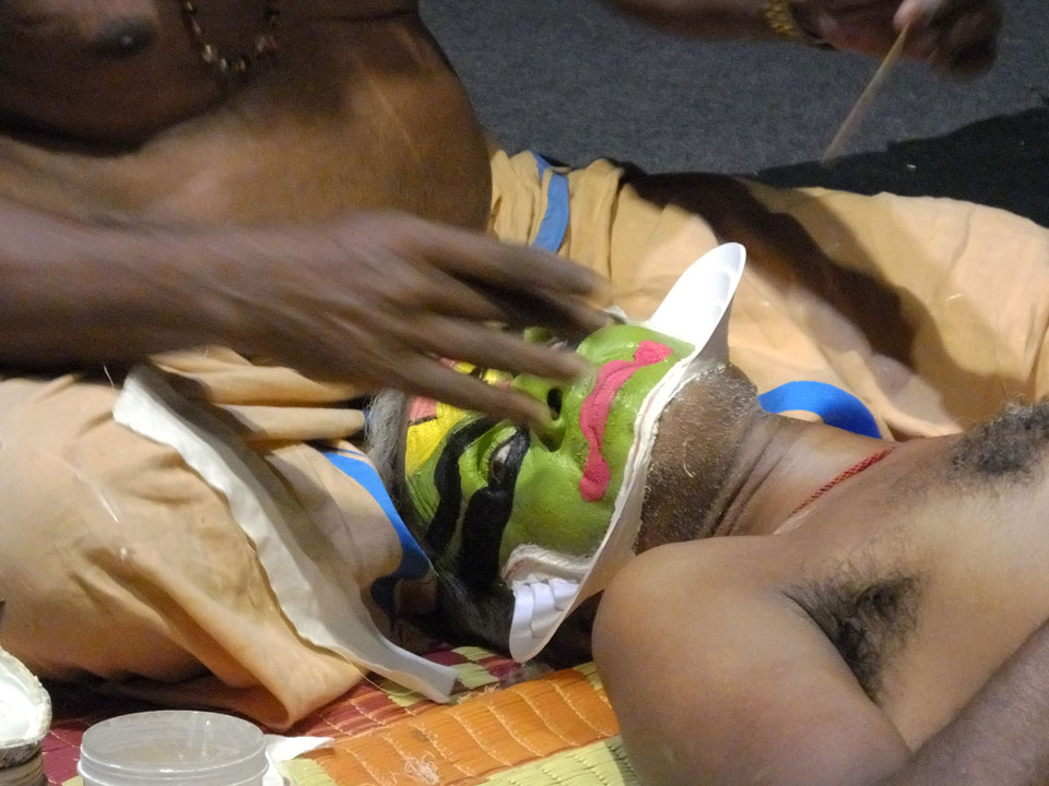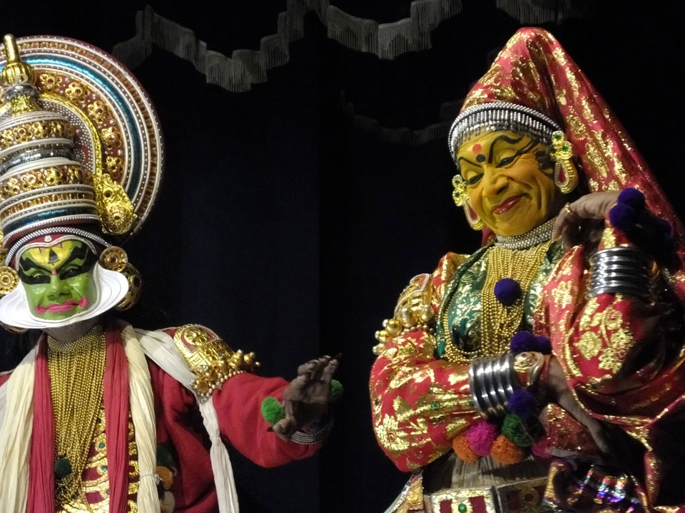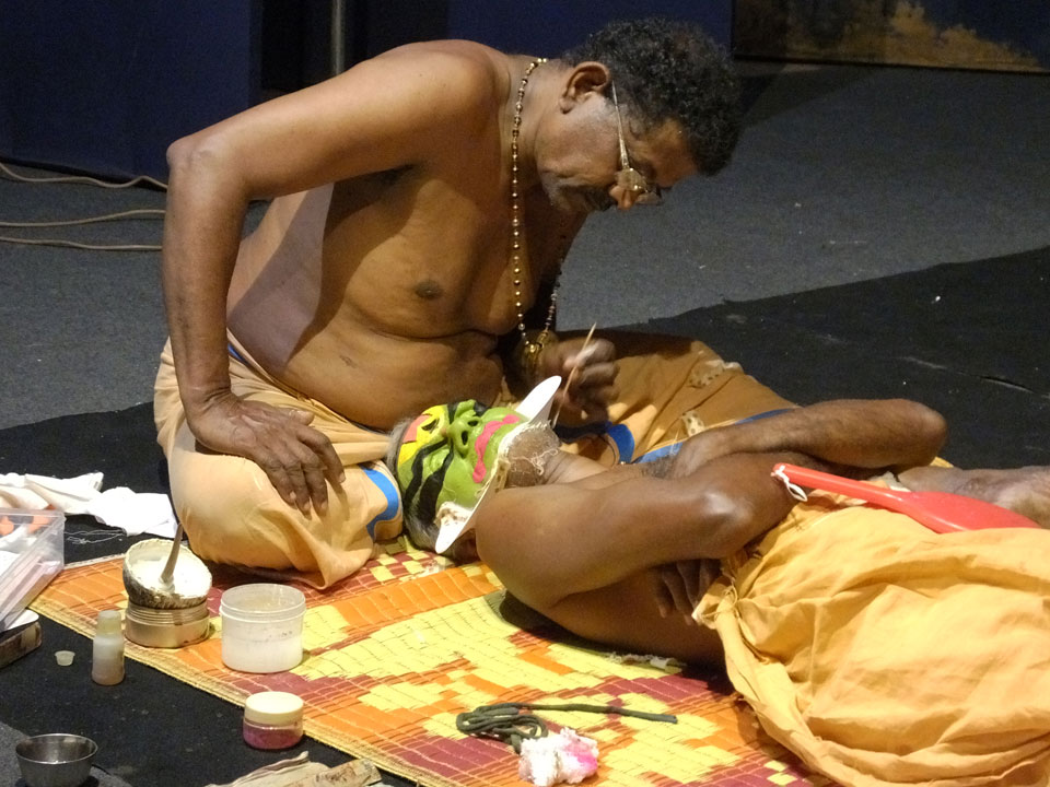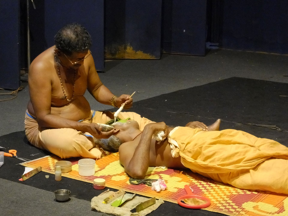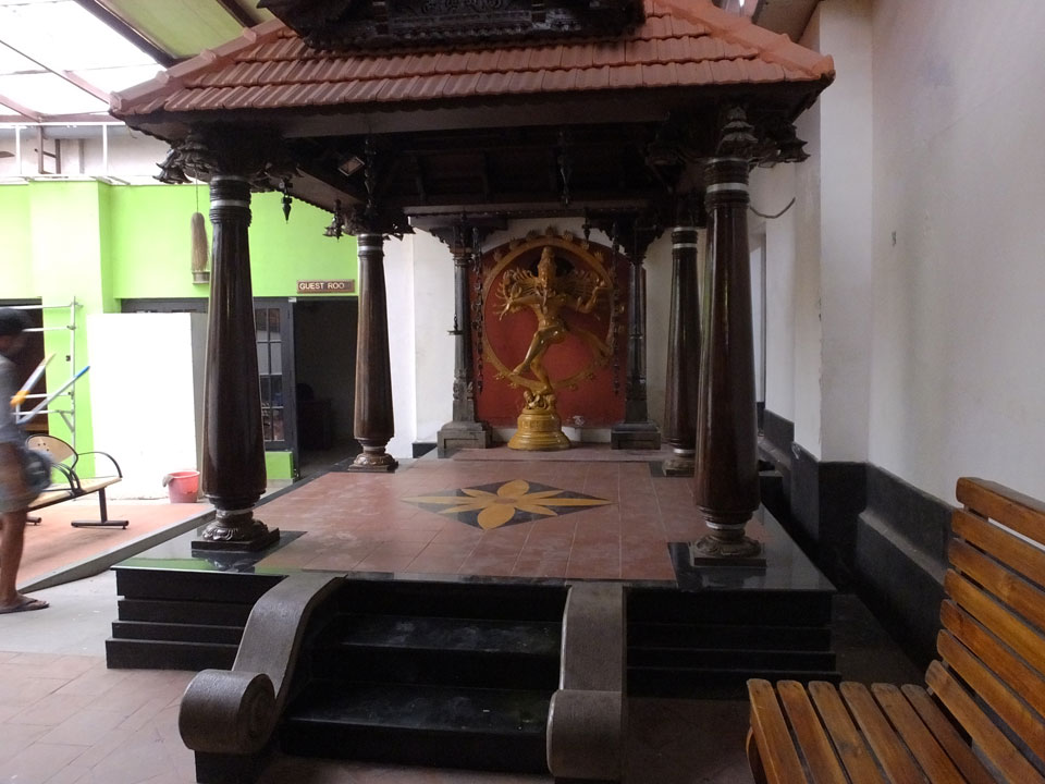 Das Greenix Village ist ene Art touristisches Kulturzentrum. Da gab’s ein italienisches Restaurant sowie diverse Räume, wie auch den für die Theater-Veranstaltung. Ich kaufte mein Ticket. Auch hier kein Wechselngeld auf 2000, dafür aber ein VISA-Kartengerät. Die Photo-Erlaubnis schlug mit weiteren 50 Rupees zu Buche, sodass 400 (5,50 EUR) von meinem Vermögen abgezogen wurden.