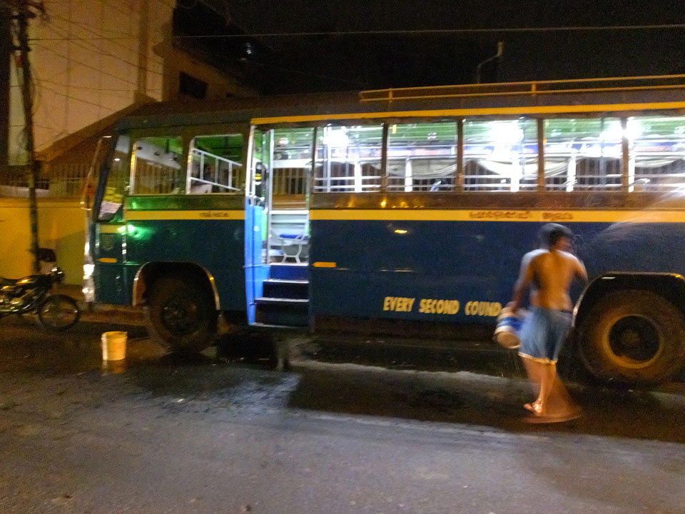 Schlafen ging wieder schwer wegen Mücken. Ich bin nun reif, dass es weiter geht. Bus morgen 23:00 – 1400 Ruppees (€19,50) für 8-9h nach Mysore.