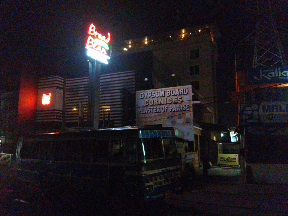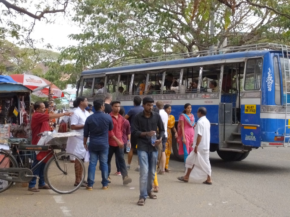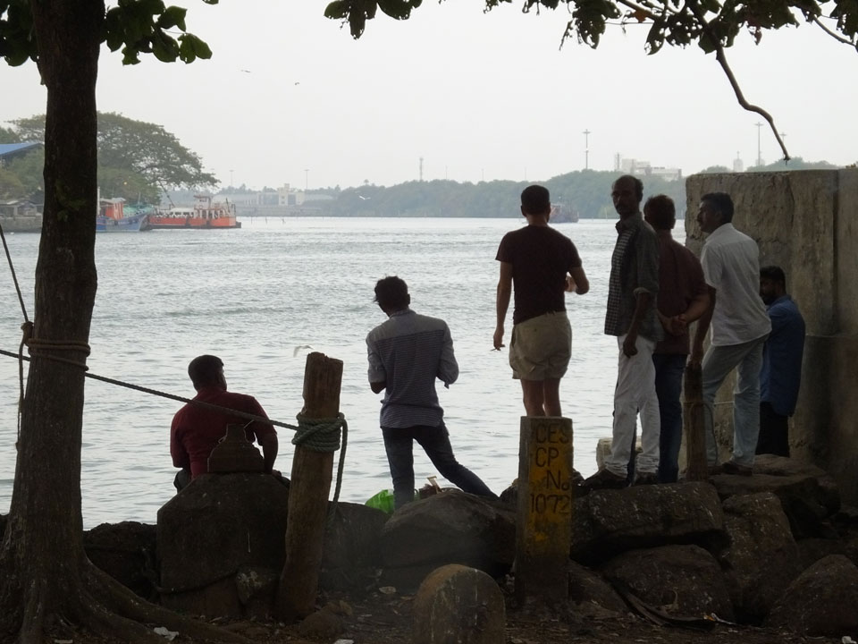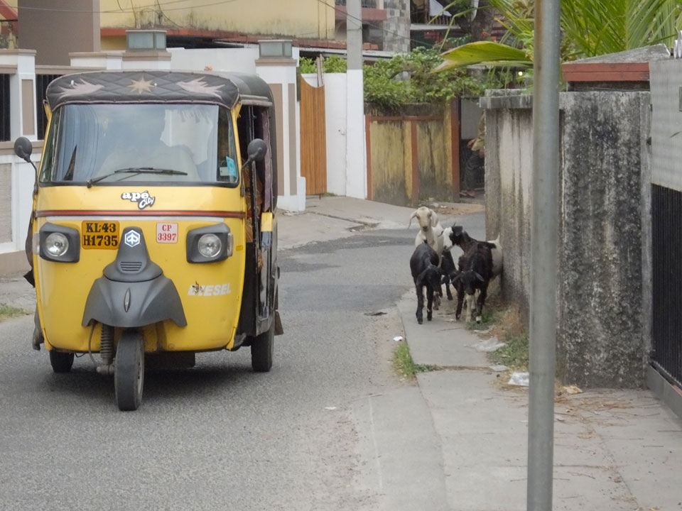 Es ging eine ganze Weile nach Süden noch ’ne Insel zurück in den Osten. Ich hatte per GPS den Punkt notiert, wo in etwa der Kalada Bus halten sollte. Der Fahrer musste da nochmal zurück fahren, sprach Null Englisch. Der Taxameter zeigte am Ende ca. 170 Ruppees. Ich habe dem Fahrer also auch die Rückfahrt gezahlt, was Sinn macht um diese Zeit. Da stand ich nun am Straßenrand, ein indisches Pärchen stand auch da. Bestätigung, dass dies hier der Einstiegspunkt sei.