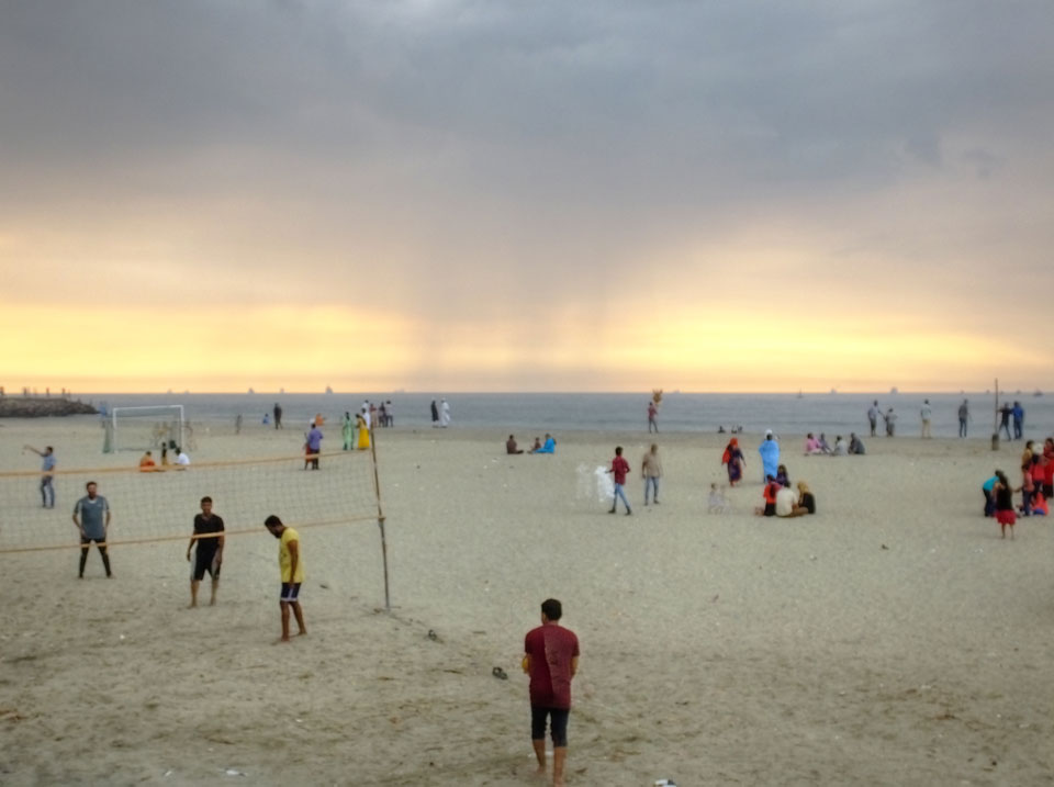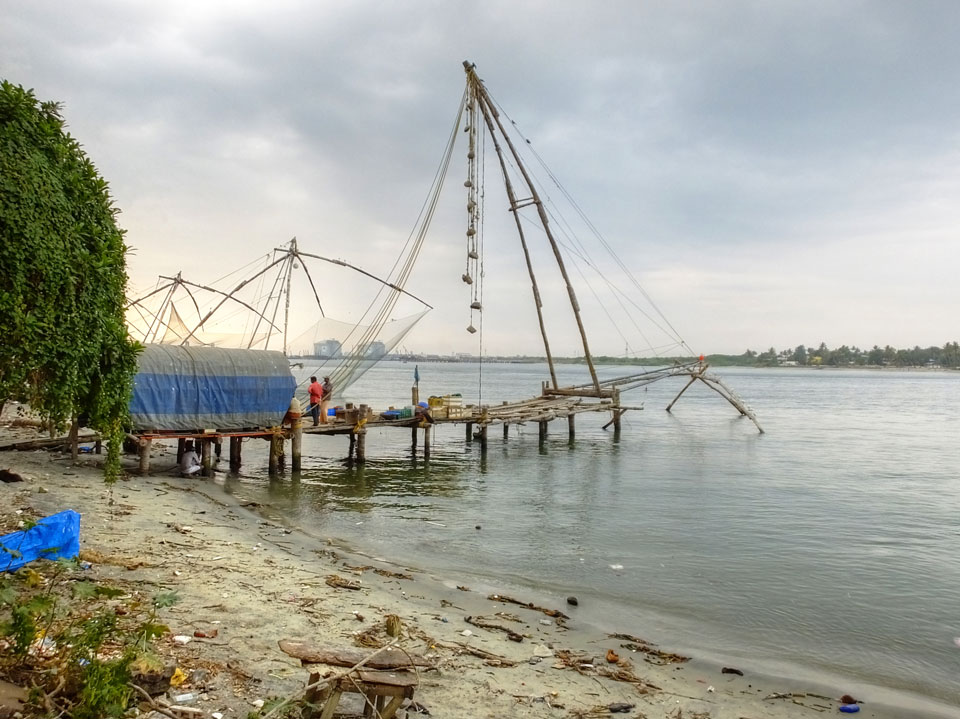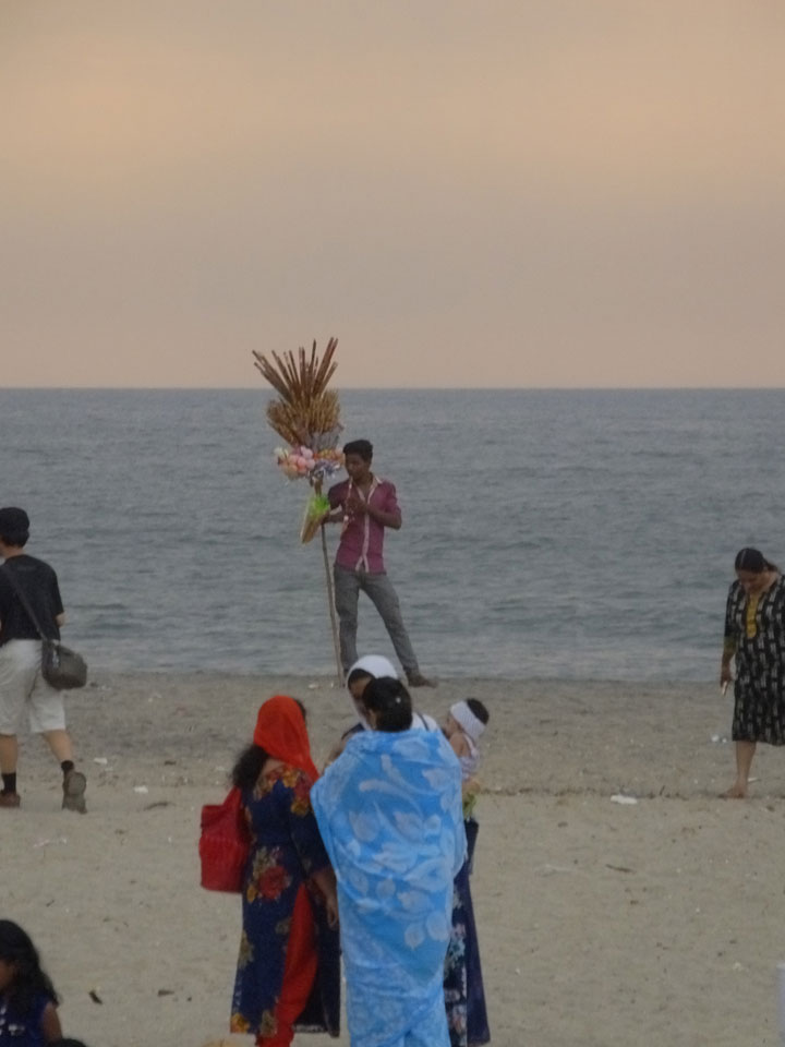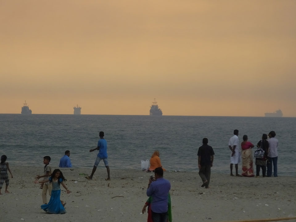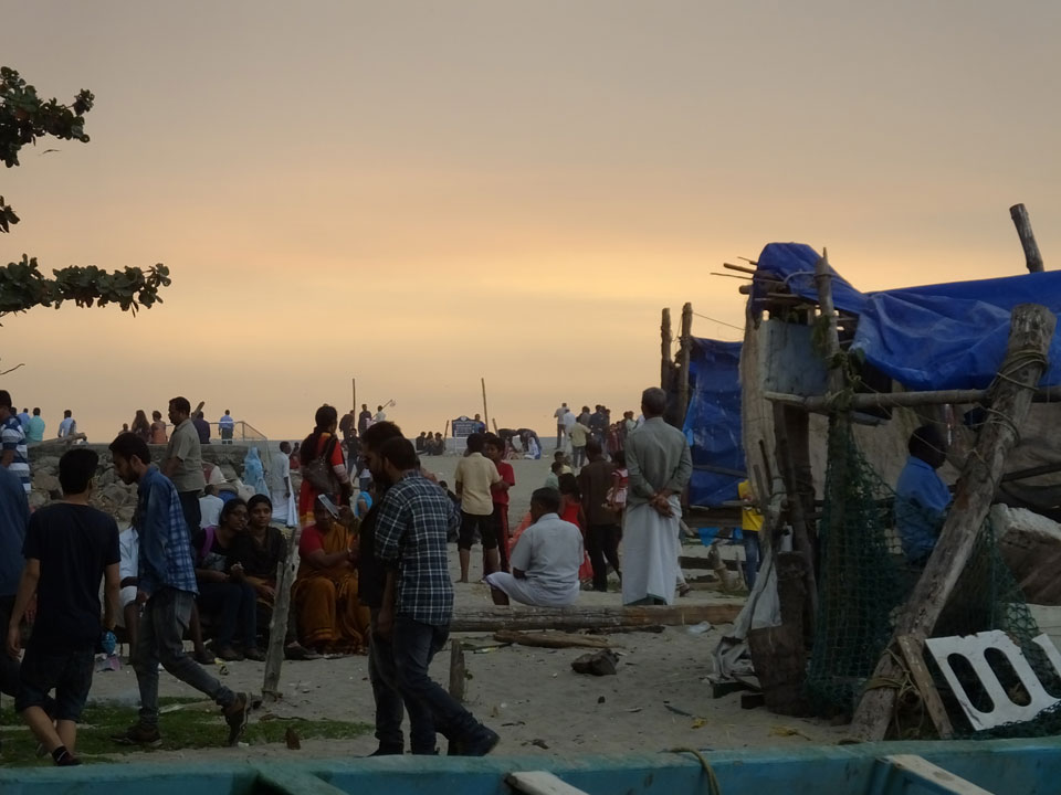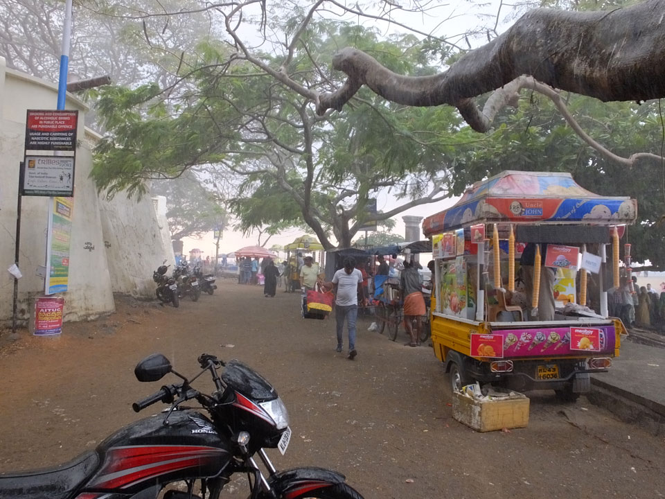 Als ich dann am Strand stand wurde der Nieselregen zu einem heftigen Schauer. Selbst Monsoon-erprobte Inder flüchteten und alles, was man als Dach gebrauchen kann. Ich stand unter einem dicken Baumast, hatte am meisten Sorgen um die Fuji.